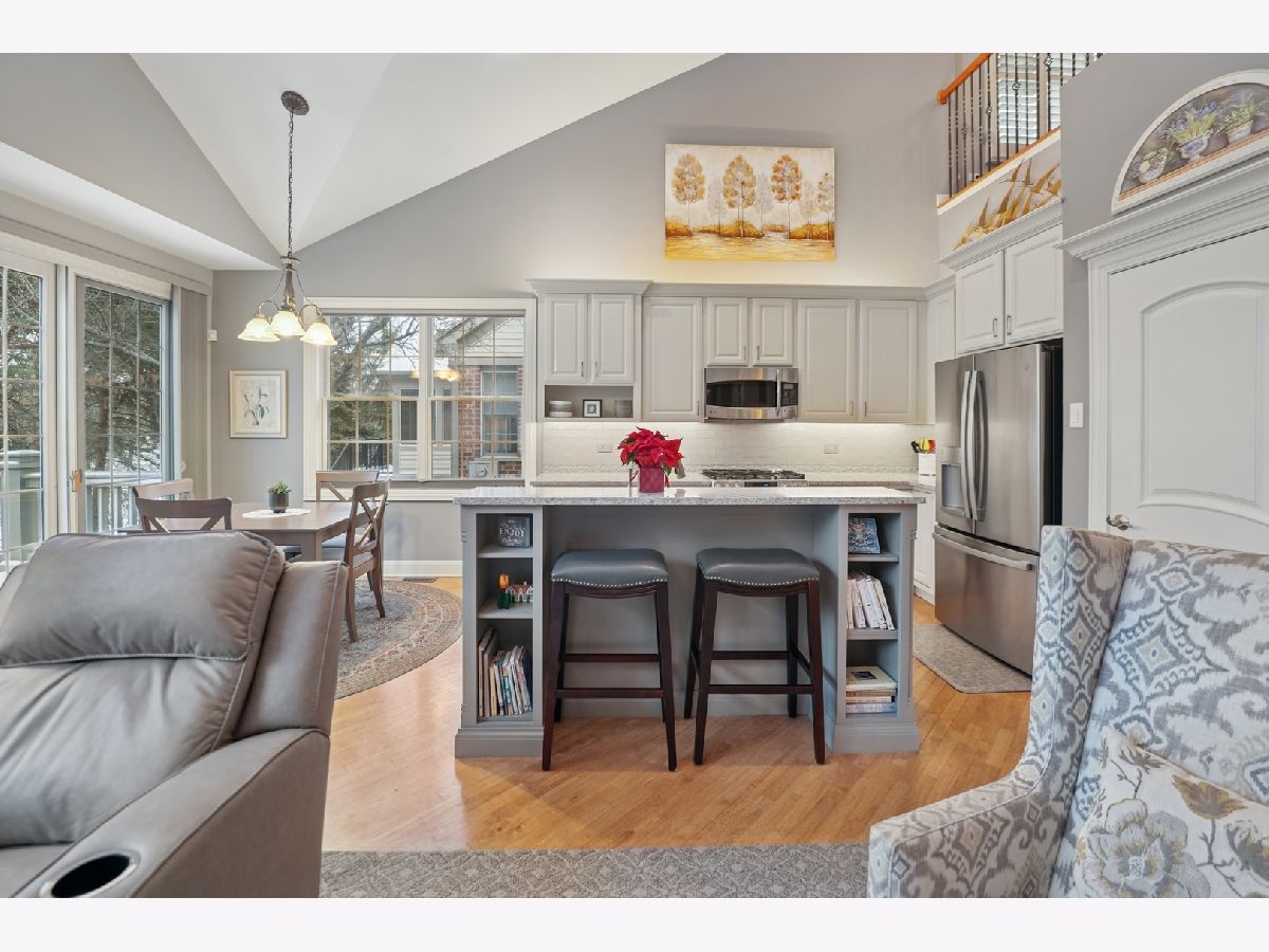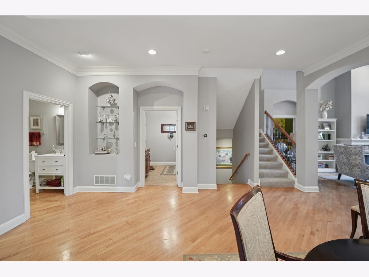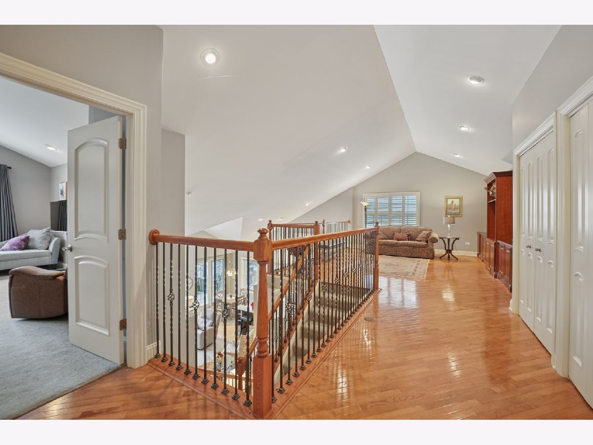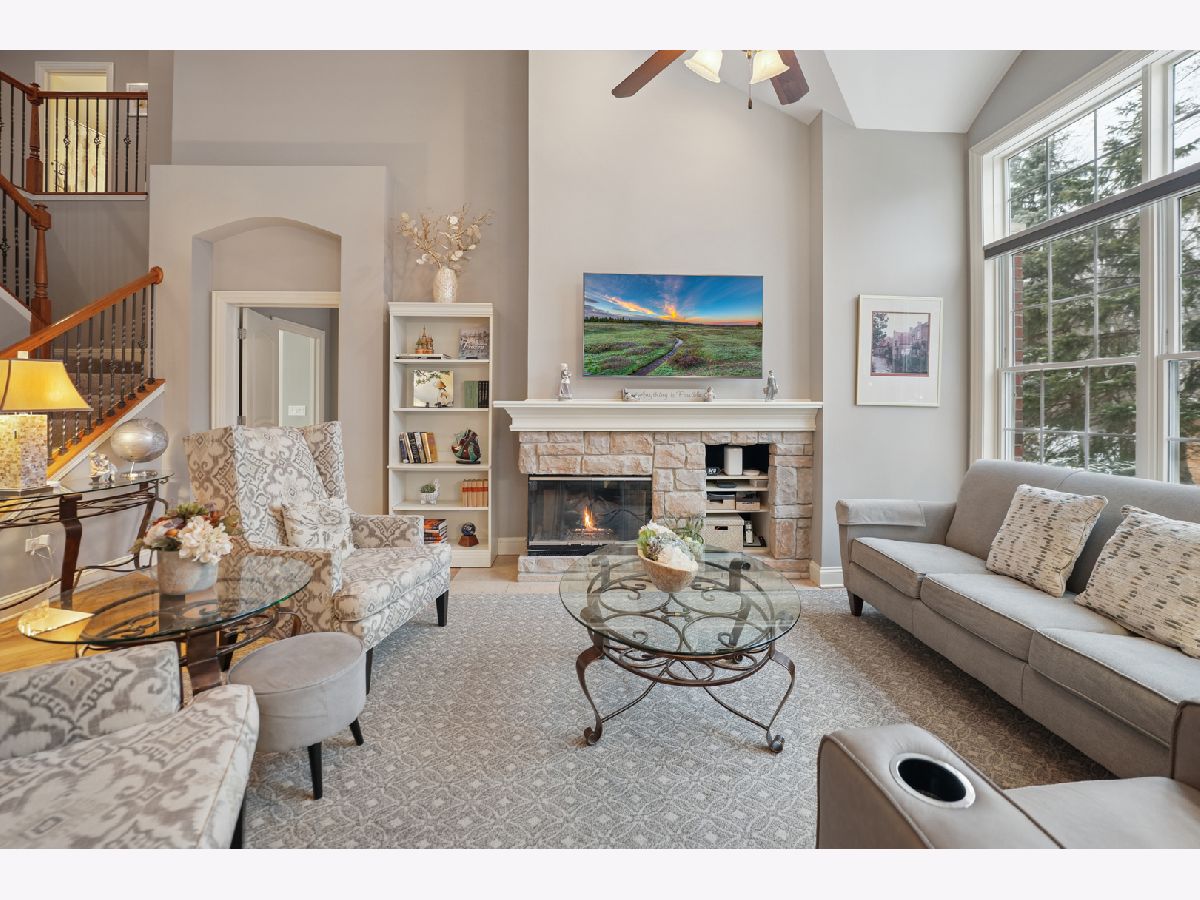 Beautiful, light-filled 2700+ square foot home in a sought-after 55+ community, offering comfort, convenience, and low-maintenance living. Ideally situated in a quiet interior location with tranquil open views behind the home, yet just minutes to shopping, dining, and I-355. A welcoming entry highlights the home's tall ceilings and architecturally pleasing details, including graceful arched doorways, rounded transitions, and decorative wall niches that add character and visual interest. The open, airy floor plan creates a light and bright atmosphere throughout. The thoughtfully designed main level features a first-floor den with a closet, perfect as a home office, guest room, or additional bedroom. The living and dining room combination is ideal for entertaining, while the cozy family room with a built-in fireplace flows seamlessly into the remodeled kitchen with white cabinetry. The first-floor primary suite offers the ease of one-level living and includes a tray ceiling, spacious walk-in closet with custom shelving by Closets by Design, and an updated bath with a walk-in shower. The second level provides additional flexible living space with a large loft overlooking the family room, enhanced by built-in cabinetry. A generous secondary bedroom features a vaulted ceiling, a walk-in closet, and private access to a full bath, ideal for guests or extended stays. The finished basement expands the living space with an additional bedroom, half bath, and plenty of storage, perfect for hobbies, fitness, or visiting family. Originally the builder's model, this home reflects thoughtful design and quality throughout. Recent updates include primary bath remodel (2019), furnace (2024), central air (2023), roof approximately 6 years old, and professionally updated landscaping (2025). Enjoy peaceful surroundings, architectural charm, and convenient access to major roadways in this well-established 55+ community, designed for comfortable, spacious living with room to relax and entertain.