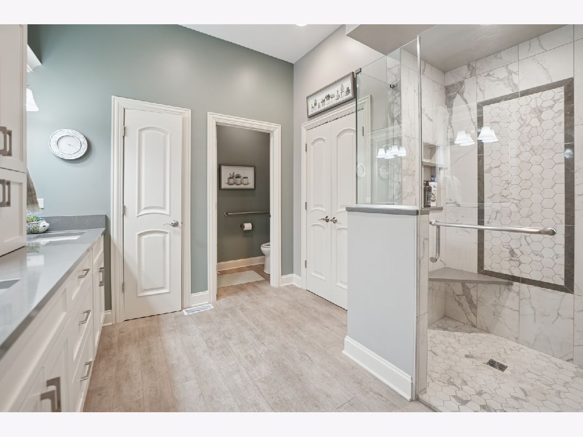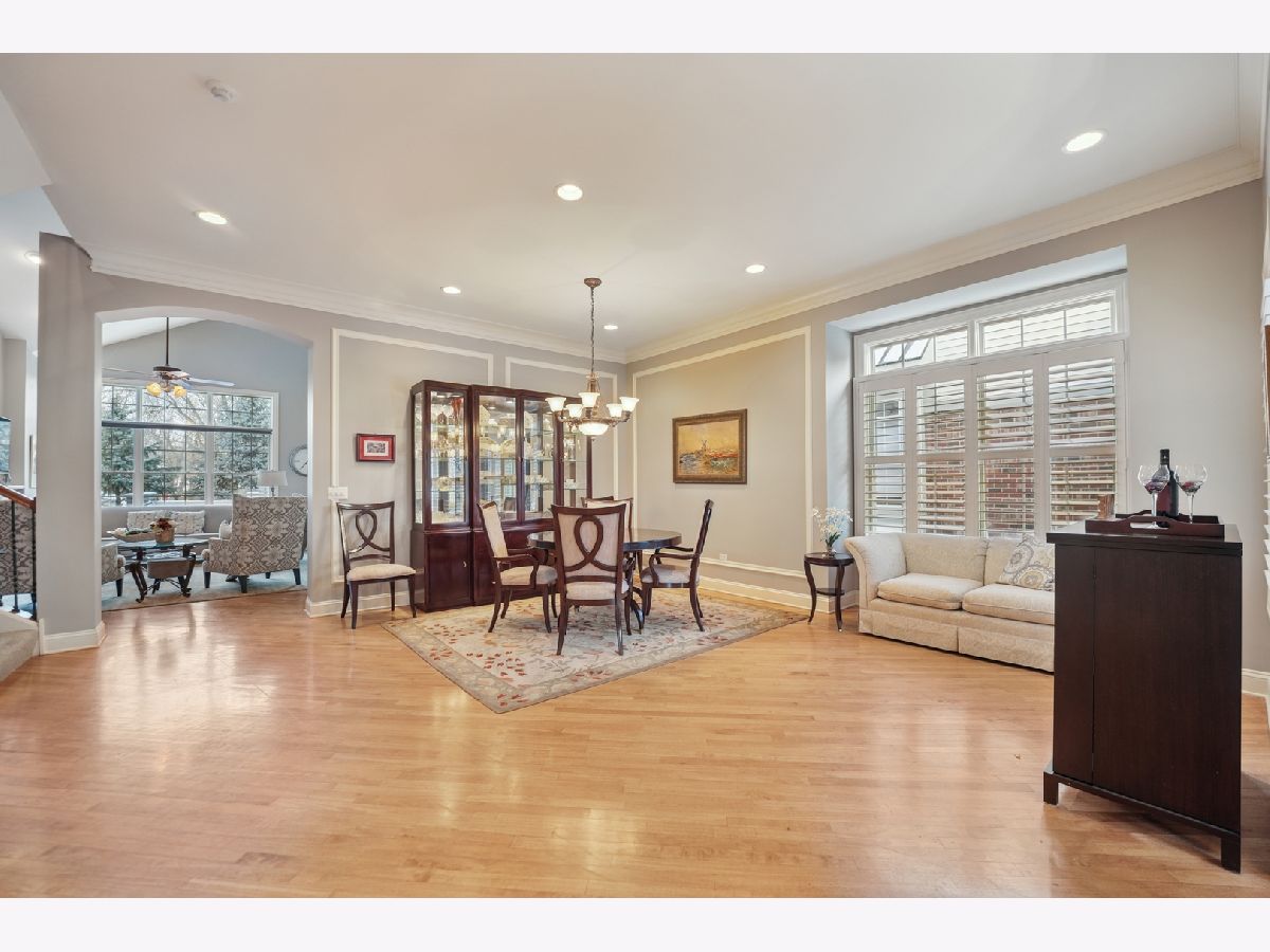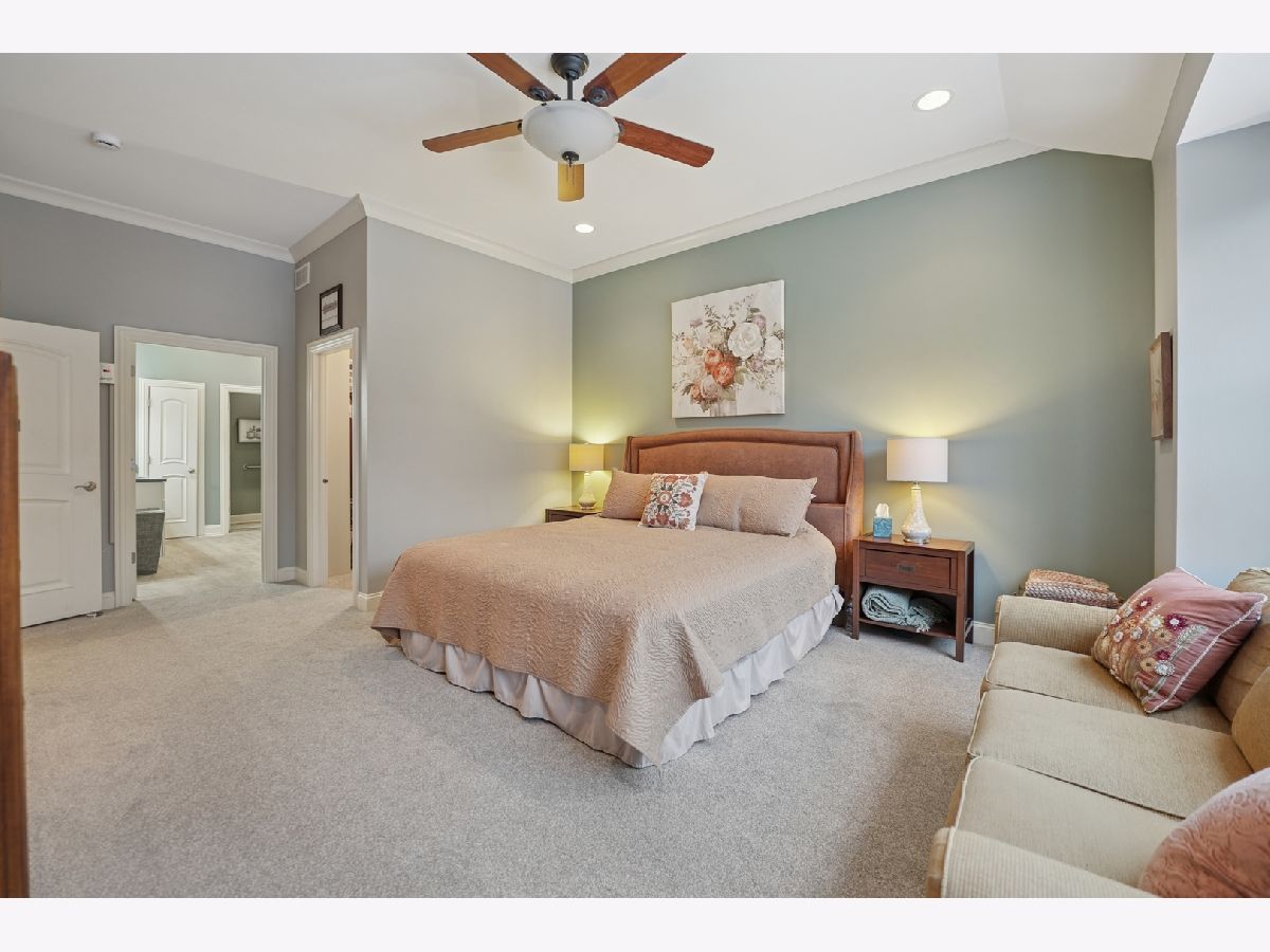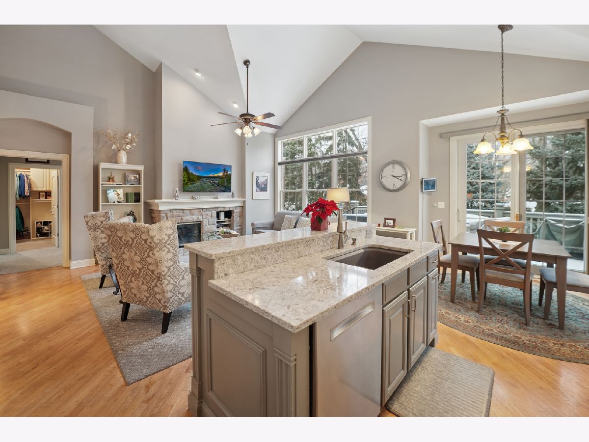 Beautiful, light-filled 2700+ square foot home in a sought-after 55+ community, offering comfort, convenience, and low-maintenance living. Ideally situated in a quiet interior location with tranquil open views behind the home, yet just minutes to shopping, dining, and I-355. A welcoming entry highlights the home's tall ceilings and architecturally pleasing details, including graceful arched doorways, rounded transitions, and decorative wall niches that add character and visual interest. The open, airy floor plan creates a light and bright atmosphere throughout. The thoughtfully designed main level features a first-floor den with a closet, perfect as a home office, guest room, or additional bedroom. The living and dining room combination is ideal for entertaining, while the cozy family room with a built-in fireplace flows seamlessly into the remodeled kitchen with white cabinetry. The first-floor primary suite offers the ease of one-level living and includes a tray ceiling, spacious walk-in closet with custom shelving by Closets by Design, and an updated bath with a walk-in shower. The second level provides additional flexible living space with a large loft overlooking the family room, enhanced by built-in cabinetry. A generous secondary bedroom features a vaulted ceiling, a walk-in closet, and private access to a full bath, ideal for guests or extended stays. The finished basement expands the living space with an additional bedroom, half bath, and plenty of storage, perfect for hobbies, fitness, or visiting family. Originally the builder's model, this home reflects thoughtful design and quality throughout. Recent updates include primary bath remodel (2019), furnace (2024), central air (2023), roof approximately 6 years old, and professionally updated landscaping (2025). Enjoy peaceful surroundings, architectural charm, and convenient access to major roadways in this well-established 55+ community, designed for comfortable, spacious living with room to relax and entertain.