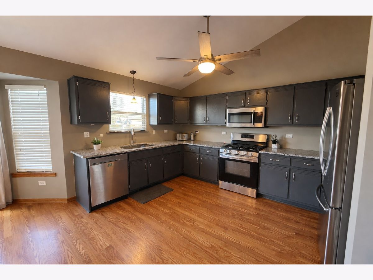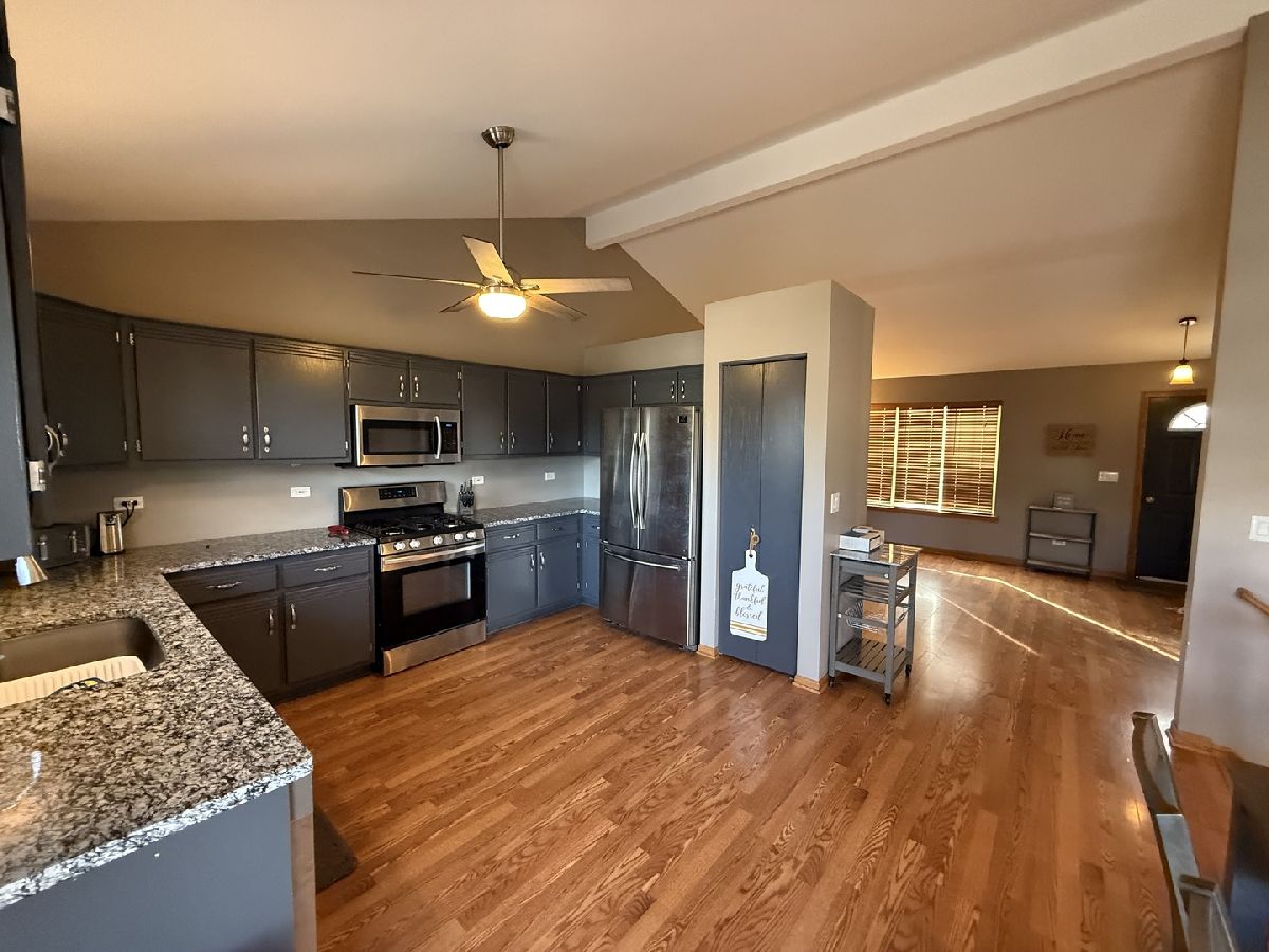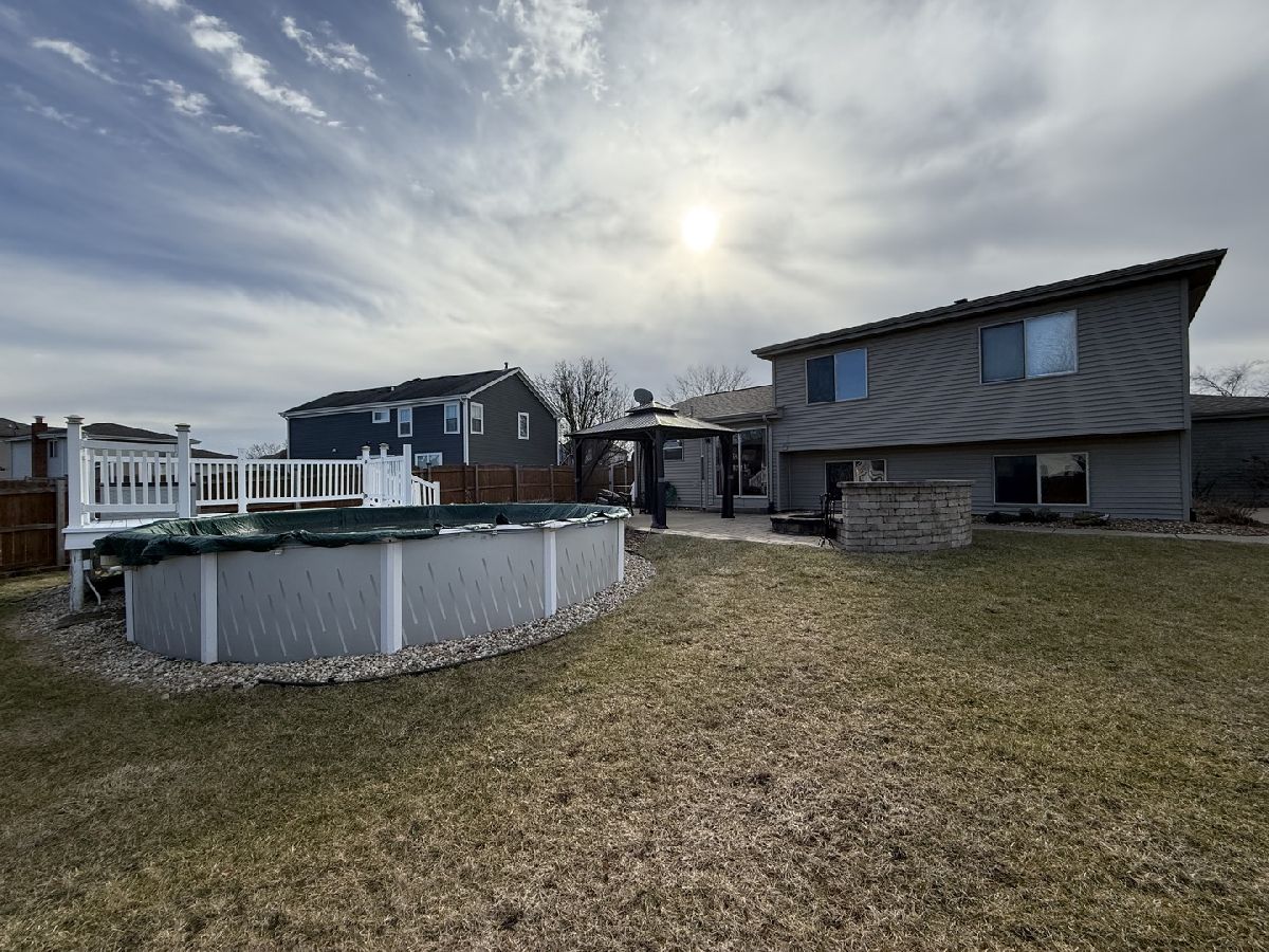 Experience this beautiful quad-level home nestled in Liberty Square, New Lenox! Enjoy the amenities of a wonderful subdivision featuring a scenic park with pond, walking trail, playground, and basketball courts. This prime location is just minutes from shopping, dining, New Lenox Commons, the Metra station, and interstate access. Situated on an oversized lot, the exterior boasts a 3-car garage, a fenced-in yard, an above ground pool, Outdoor Shed, a maintenance-free deck around the pool, a spacious paver patio with Gazabo, and a built-in firepit-perfect for entertaining or relaxing outdoors. Inside, discover an open layout with vaulted ceilings, wood laminate flooring. The main level offers a formal living room, a large family room and a stylish kitchen featuring granite countertops, gray cabinetry, and stainless steel appliances. This home includes four bedrooms and two full bathrooms, including a master suite with a walk-in closet. The finished sub-basement provides a recreation room and a dedicated storage and laundry room. This fantastic home is move-in ready. Don't miss your chance to make it yours-schedule a tour before it's gone!