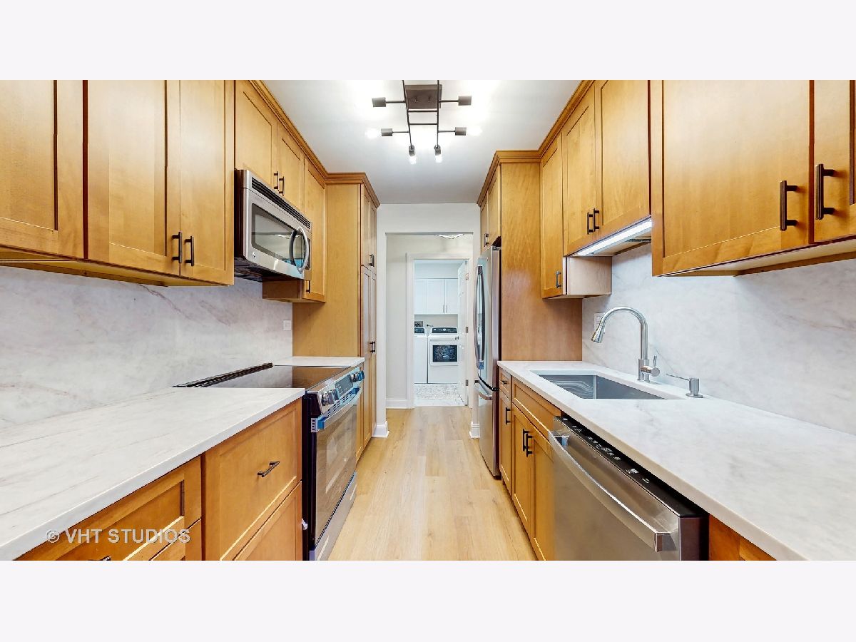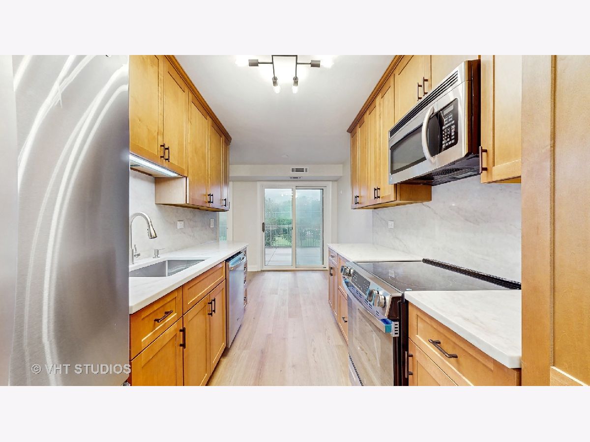 Finally !!! A 3-bedroom/2.5 Bath/1st Floor with huge deck is available. Completely updated, this residence is open and bright, as you enter you'll note the gleaming floors throughout the living spaces. The inviting foyer flows into a huge open floor plan featuring the living room with a gas fireplace and sliders to the huge deck, as well as the large dining area for entertaining. The kitchen is updated with neutral cabinets, new quartz counters, and new stainless GE appliances. The eat-in area has sliders to the deck and is open to the main living area. Across the hall is a generous laundry room with side-by-side new GE washer/dryer. The primary suite is spacious with a huge sized walk-in closet and an large wall closets used for linens/storage. The primary bath is updated with a double vanity and shower. The second bedroom is very large, has its own walk in closet, and has a slider to the deck. The third bedroom doubles as an office with a newer bath across the hall. Plus there is a half bath with closet off the main living area. The unit is very close to the front entrance, and the 2 tandem parking spaces #85/86 are also close to the elevators. Two new HVAC units and updated electical panel are included. The building offers a wonderful lobby, sun deck terrace, library, and party room as well as dedicated storage for your unit. Additional amenities include a 24-hour guard house; on site management; community room for meetings, family get togethers or cards; a recently updated exercise room with the newest of equipment and a separate yoga area as well as a pool & just completed updated pool house. There are tennis and pickleball courts on premises as well as a playground plus additional courts and playground at the newly renovated public park across the street. Conveniently located next to Northbrook Court, next to the 94 & 294 expressways, shopping, restaurants, health care, schools, parks and so much more. Welcome to your new maintenance free home and community!
