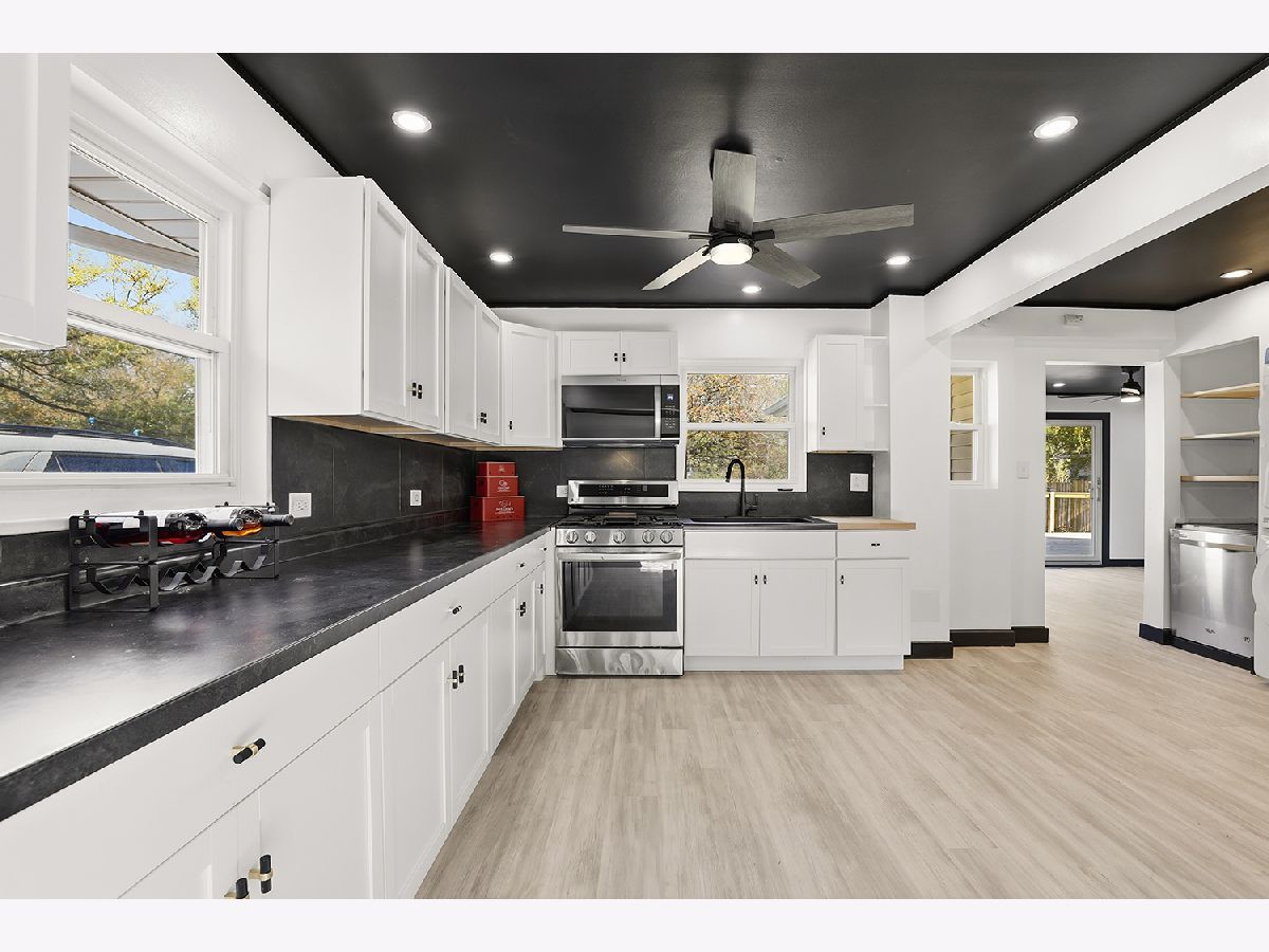 Nestled on a generous lot, this beautifully full-gut renovated ranch offers modern living at its finest. Enjoy a detached 1.5-car garage with a side door and brand-new opener, plus a fully fenced yard featuring a separate dog run along the perimeter-perfect for pets and play. Relax or entertain on the brand-new 20' x 22' deck, ideal for gatherings or peaceful evenings outdoors. Every major system is updated for peace of mind, including a Trane HVAC, water heater, roof, and windows (all new in 2025). Inside, you'll find luxury vinyl plank flooring throughout, a bright front living room, and a spacious family room at the back. The large kitchen boasts abundant cabinet space, stone backsplash, and all-new stainless steel appliances. With three generously sized bedrooms, two full bathrooms, and a brand-new washer and dryer, this home truly has it all-style, comfort, and move-in-ready quality. Schedule your private showing today; this one won't last long!