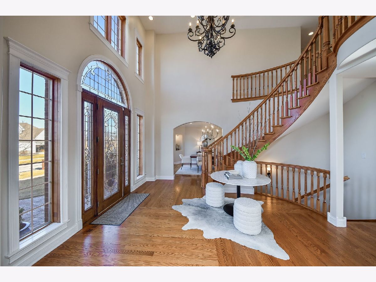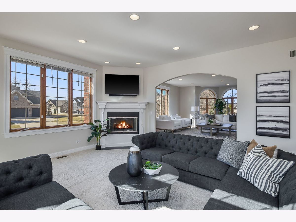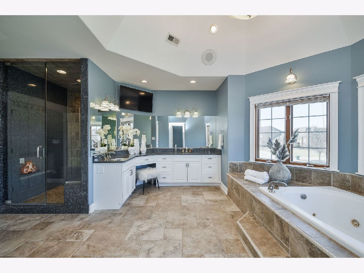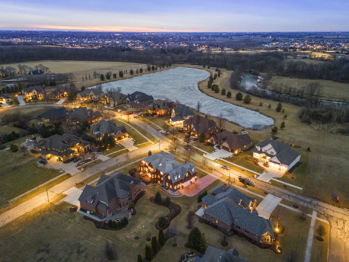Fabulous luxury estate offering over 7800 SF of finished living space, perfectly designed for EXTENDED FAMILY LIVING and entertaining. With FIVE TRUE BEDROOMS (two ensuites & Jack & Jill) and four full baths on the second floor, there is ample room to accommodate a crowd. Ideally located near the historic downtown area, just minutes from Rt. 59, I-55, and two easily accessible Metra stations, entitled to Plainfield Community Services. A grand brick-paver walkway welcomes you to this stunning, east-west-facing, all-brick home within the highly acclaimed Plainfield North High School 202 SD boundary. Impeccably maintained, it showcases SUPERIOR CONSTRUCTION and elegant appointments, with architectural details that set it apart: soaring 9'-21' ceilings, two turrets, multiple balconies and porches, arched entries, curved staircases, and FIVE FIREPLACES. Thoughtfully placed custom windows bathe the interior in natural light, flowing through the cut-glass front door into the two-story foyer, formal living room, and dining room, which features a new chandelier and exhibit lighting. The spectacular chef's kitchen is fully outfitted with VIKING PROFESSIONAL APPLIANCES custom cabinetry, a walk-in pantry, and a large island with an eat-in nook that opens seamlessly to the family room. A spacious MAIN FLOOR OFFICE WITH PRIVATE ENTRANCE provides added convenience. The three-car garage, with 13-foot ceilings, connects to an expansive, textured driveway, ideal for outdoor play or guest parking. Upstairs, the LUXURIOUS PRIMARY RETREAT, complete with a spa-like bath, a two-sided fireplace, and a PRIVATE BALCONY, perfect for enjoying morning coffee. The second-floor laundry room provides ample storage and versatile space for school projects or personal hobbies. Two staircases lead to the fully finished walk-out basement, an entertainer's dream featuring a kitchenette, media room, gym, full bath and recreation area. Outdoor living is equally impressive on the .36-acre lot, with a custom brick-paver walkway connecting terraces, a patio, and a composite deck, all designed for minimal maintenance. This home could not be built today at this price with its size, features, and finishes. A must-see home that exceeds expectations! NEW ROOF, NEW FURNACE.