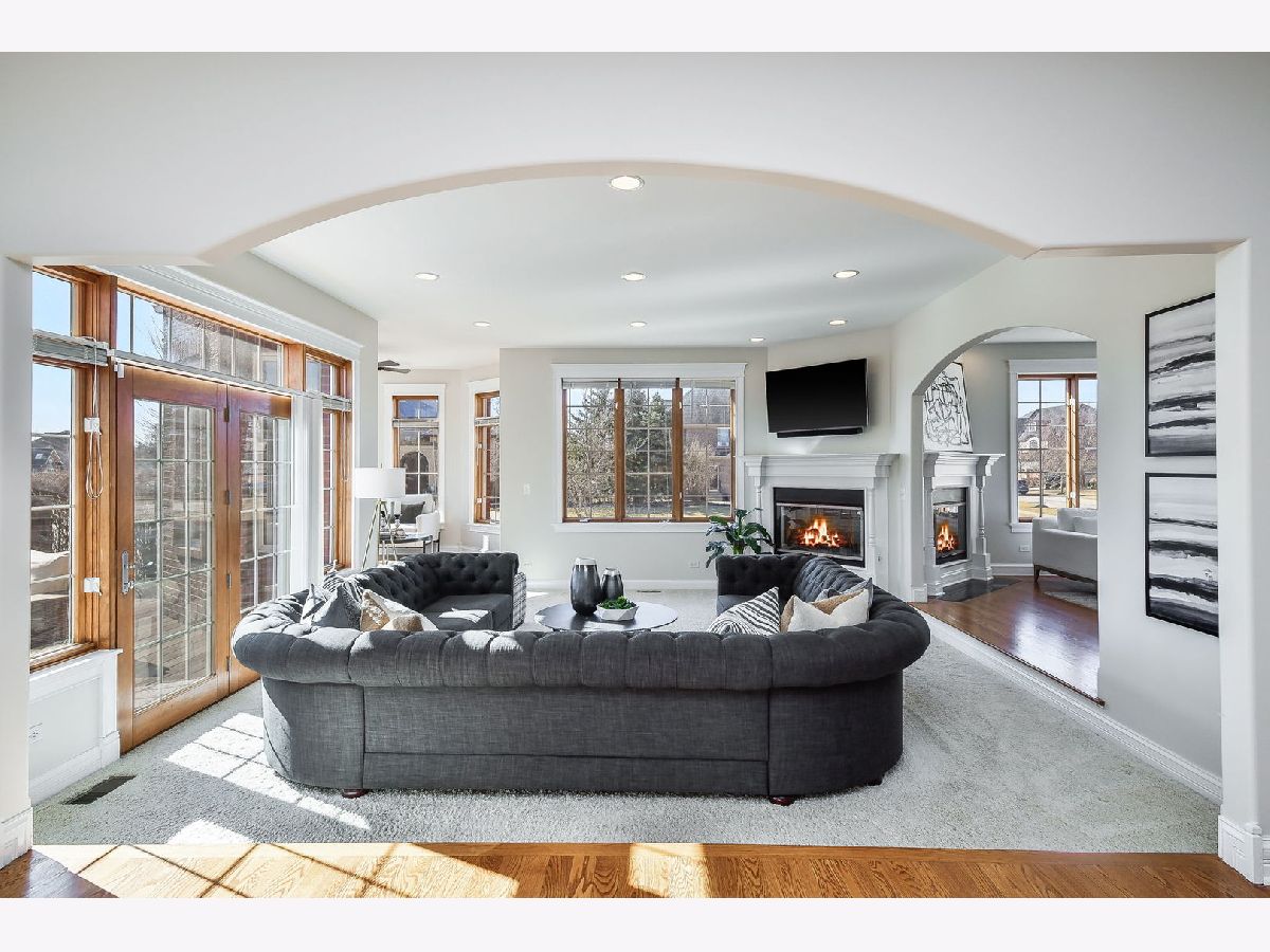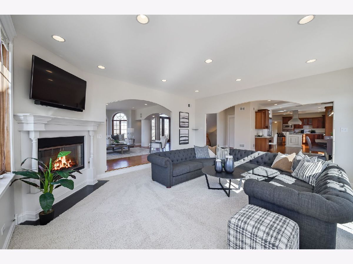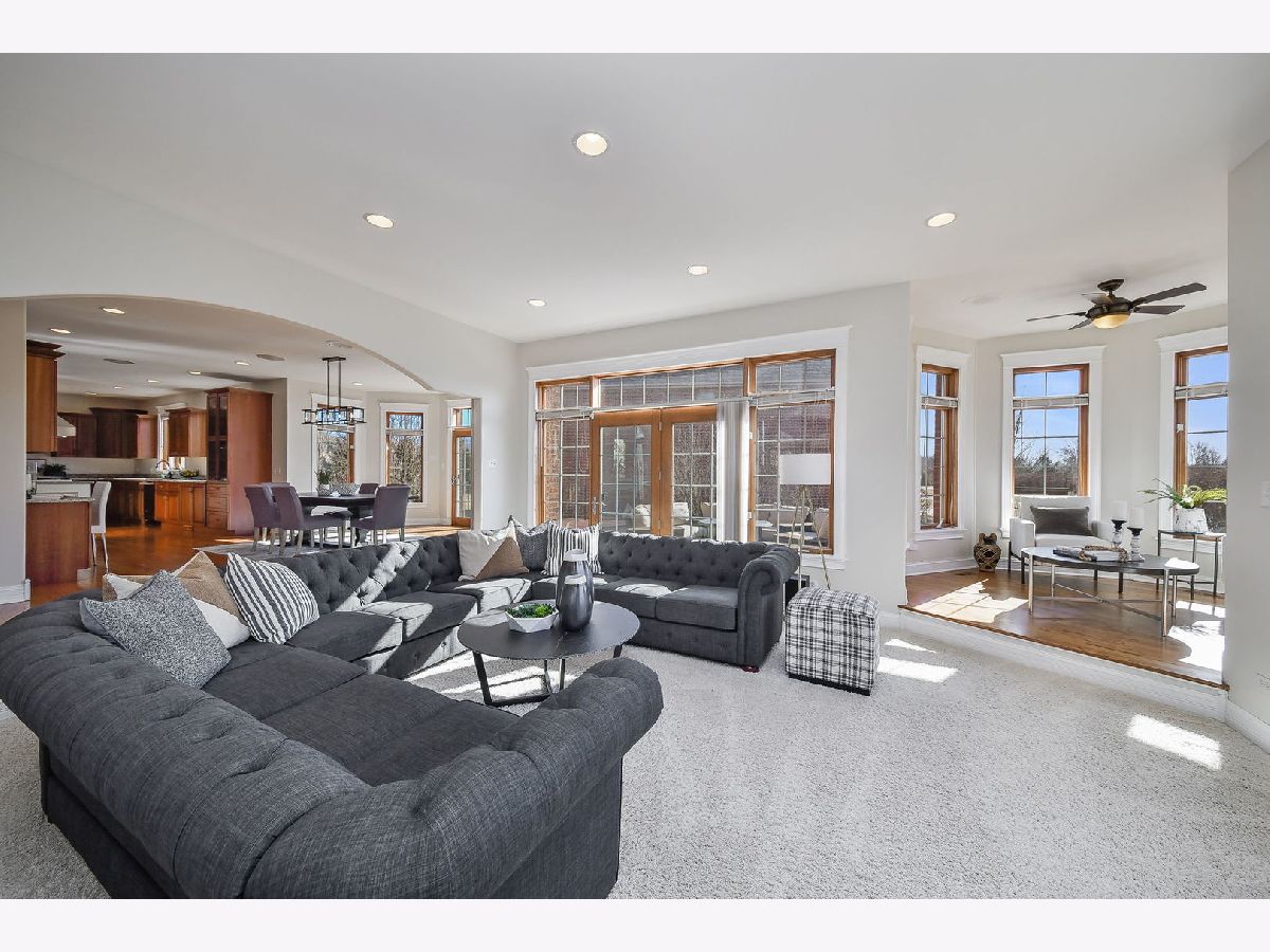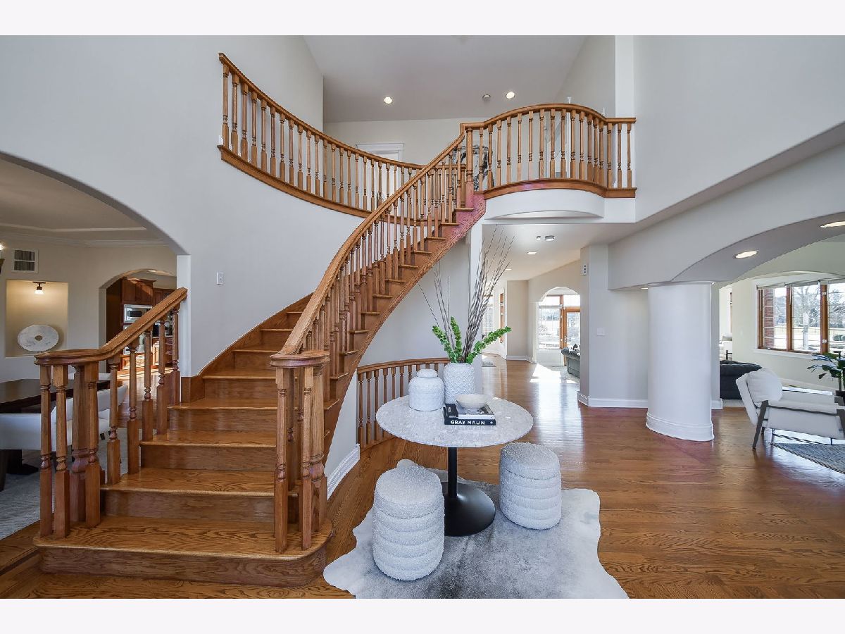Fabulous luxury estate offering over 7800 SF of finished living space, perfectly designed for EXTENDED FAMILY LIVING and entertaining. With FIVE TRUE BEDROOMS (two ensuites & Jack & Jill) and four full baths on the second floor, there is ample room to accommodate a crowd. Ideally located near the historic downtown area, just minutes from Rt. 59, I-55, and two easily accessible Metra stations, entitled to Plainfield Community Services. A grand brick-paver walkway welcomes you to this stunning, east-west-facing, all-brick home within the highly acclaimed Plainfield North High School 202 SD boundary. Impeccably maintained, it showcases SUPERIOR CONSTRUCTION and elegant appointments, with architectural details that set it apart: soaring 9'-21' ceilings, two turrets, multiple balconies and porches, arched entries, curved staircases, and FIVE FIREPLACES. Thoughtfully placed custom windows bathe the interior in natural light, flowing through the cut-glass front door into the two-story foyer, formal living room, and dining room, which features a new chandelier and exhibit lighting. The spectacular chef's kitchen is fully outfitted with VIKING PROFESSIONAL APPLIANCES custom cabinetry, a walk-in pantry, and a large island with an eat-in nook that opens seamlessly to the family room. A spacious MAIN FLOOR OFFICE WITH PRIVATE ENTRANCE provides added convenience. The three-car garage, with 13-foot ceilings, connects to an expansive, textured driveway, ideal for outdoor play or guest parking. Upstairs, the LUXURIOUS PRIMARY RETREAT, complete with a spa-like bath, a two-sided fireplace, and a PRIVATE BALCONY, perfect for enjoying morning coffee. The second-floor laundry room provides ample storage and versatile space for school projects or personal hobbies. Two staircases lead to the fully finished walk-out basement, an entertainer's dream featuring a kitchenette, media room, gym, full bath and recreation area. Outdoor living is equally impressive on the .36-acre lot, with a custom brick-paver walkway connecting terraces, a patio, and a composite deck, all designed for minimal maintenance. This home could not be built today at this price with its size, features, and finishes. A must-see home that exceeds expectations! NEW ROOF, NEW FURNACE.