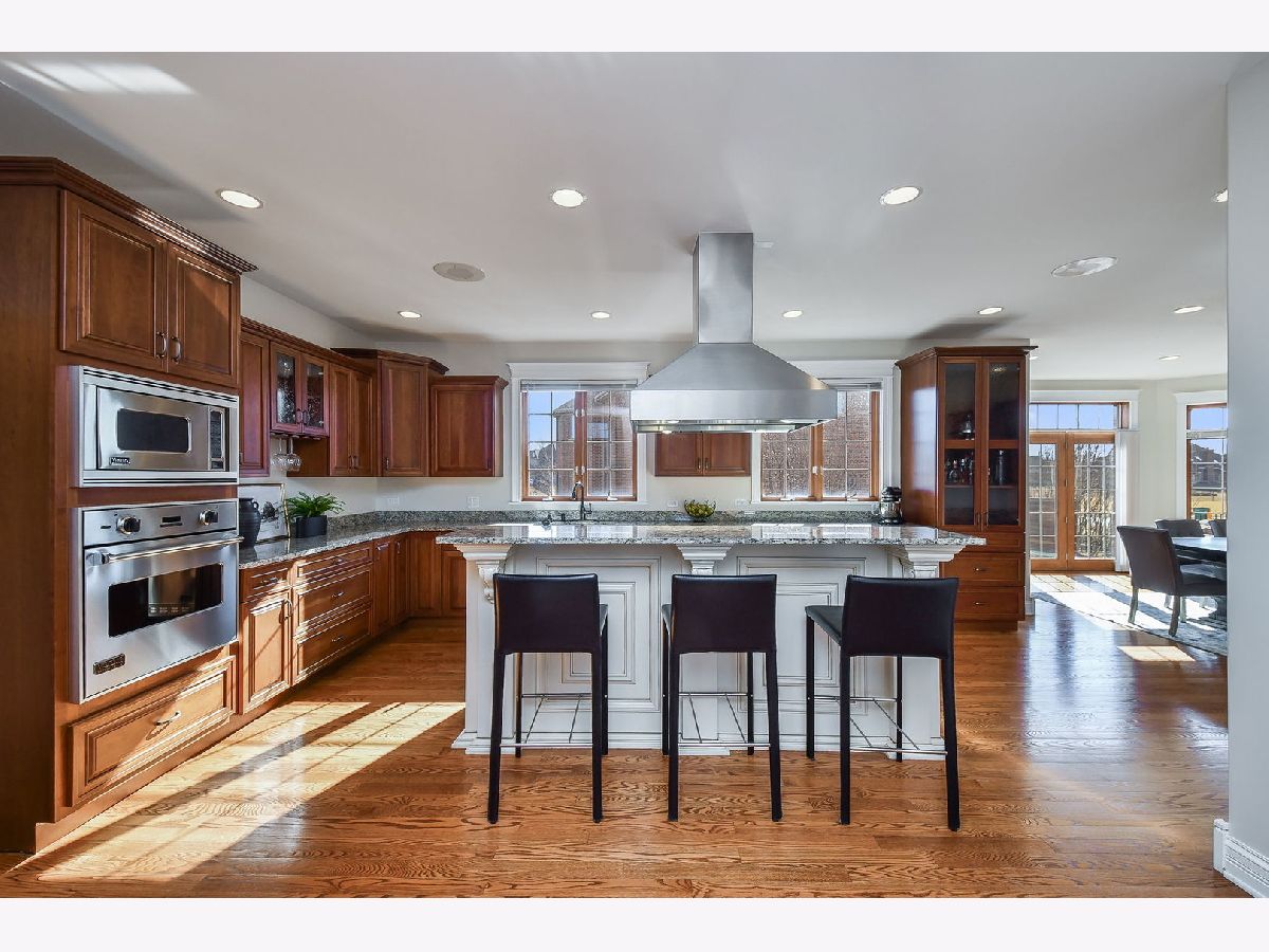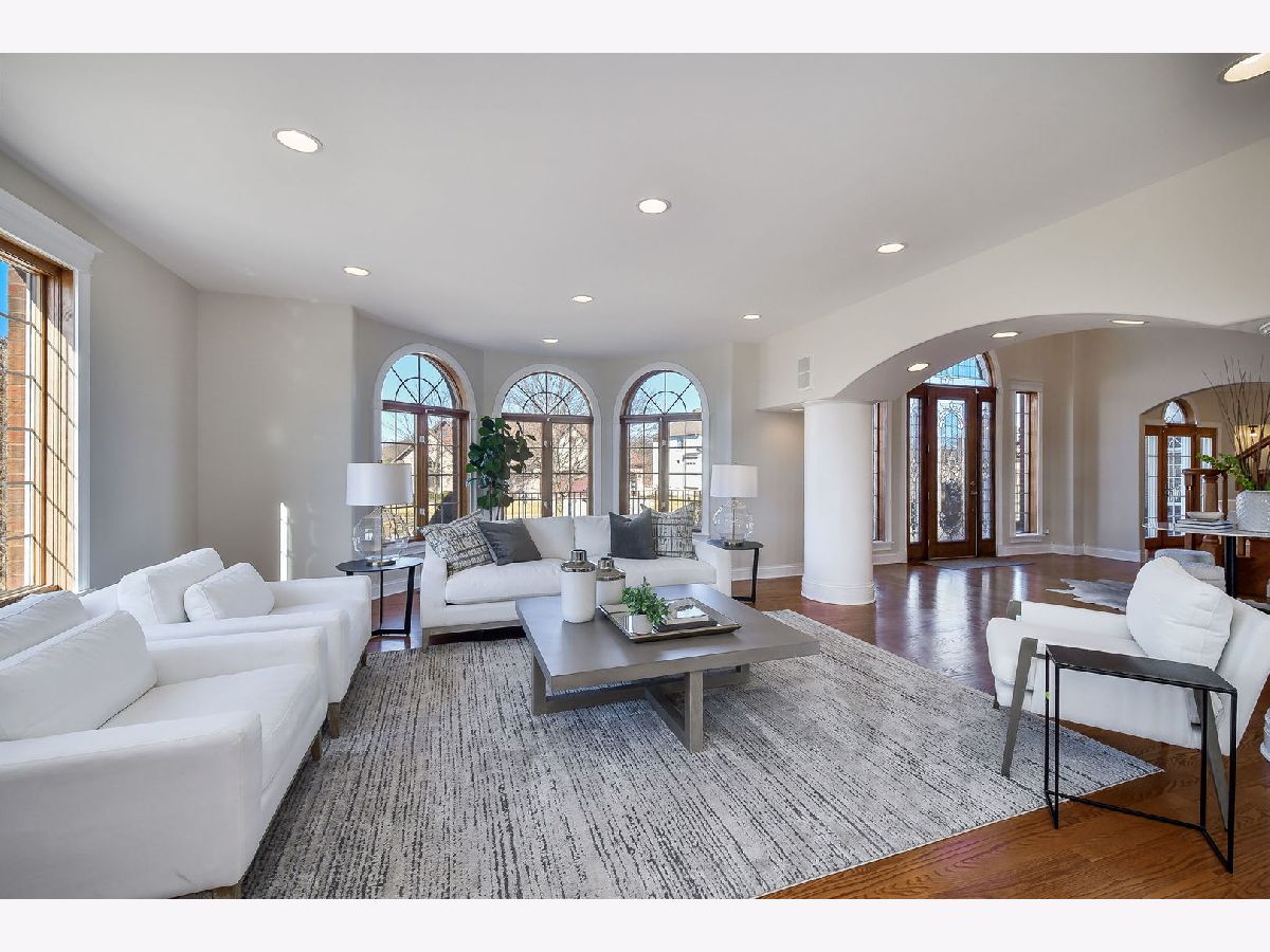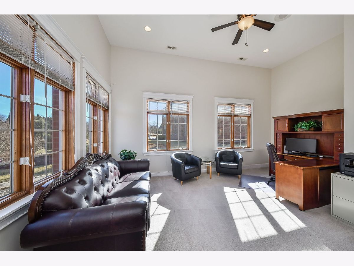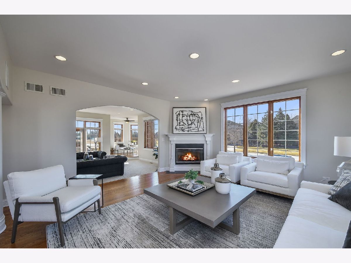 Fabulous luxury estate offering over 7800 SF of finished living space, perfectly designed for EXTENDED FAMILY LIVING and entertaining. With FIVE TRUE BEDROOMS (two ensuites & Jack & Jill) and four full baths on the second floor, there is ample room to accommodate a crowd. Ideally located near the historic downtown area, just minutes from Rt. 59, I-55, and two easily accessible Metra stations, entitled to Plainfield Community Services. A grand brick-paver walkway welcomes you to this stunning, east-west-facing, all-brick home within the highly acclaimed Plainfield North High School 202 SD boundary. Impeccably maintained, it showcases SUPERIOR CONSTRUCTION and elegant appointments, with architectural details that set it apart: soaring 9'-21' ceilings, two turrets, multiple balconies and porches, arched entries, curved staircases, and FIVE FIREPLACES. Thoughtfully placed custom windows bathe the interior in natural light, flowing through the cut-glass front door into the two-story foyer, formal living room, and dining room, which features a new chandelier and exhibit lighting. The spectacular chef's kitchen is fully outfitted with VIKING PROFESSIONAL APPLIANCES custom cabinetry, a walk-in pantry, and a large island with an eat-in nook that opens seamlessly to the family room. A spacious MAIN FLOOR OFFICE WITH PRIVATE ENTRANCE provides added convenience. The three-car garage, with 13-foot ceilings, connects to an expansive, textured driveway, ideal for outdoor play or guest parking. Upstairs, the LUXURIOUS PRIMARY RETREAT, complete with a spa-like bath, a two-sided fireplace, and a PRIVATE BALCONY, perfect for enjoying morning coffee. The second-floor laundry room provides ample storage and versatile space for school projects or personal hobbies. Two staircases lead to the fully finished walk-out basement, an entertainer's dream featuring a kitchenette, media room, gym, full bath and recreation area. Outdoor living is equally impressive on the .36-acre lot, with a custom brick-paver walkway connecting terraces, a patio, and a composite deck, all designed for minimal maintenance. This home could not be built today at this price with its size, features, and finishes. A must-see home that exceeds expectations! NEW ROOF, NEW FURNACE.