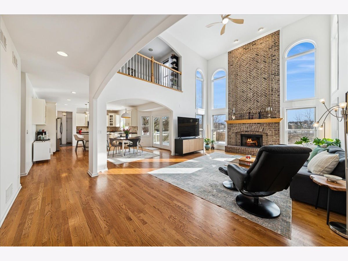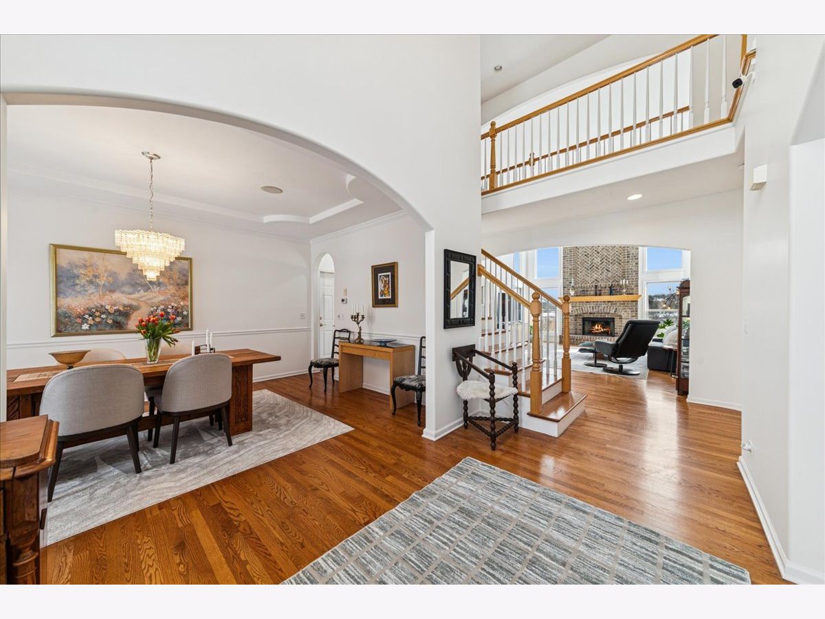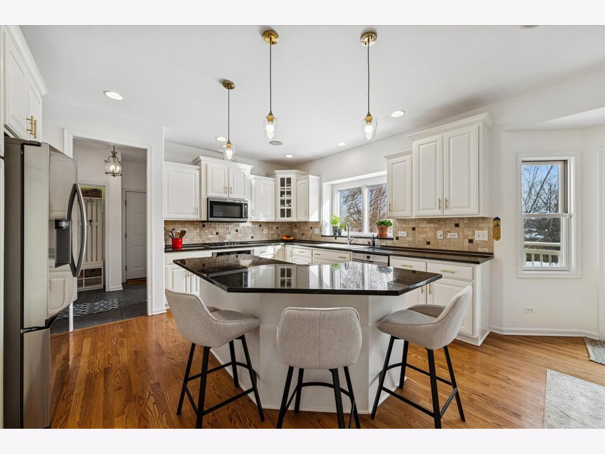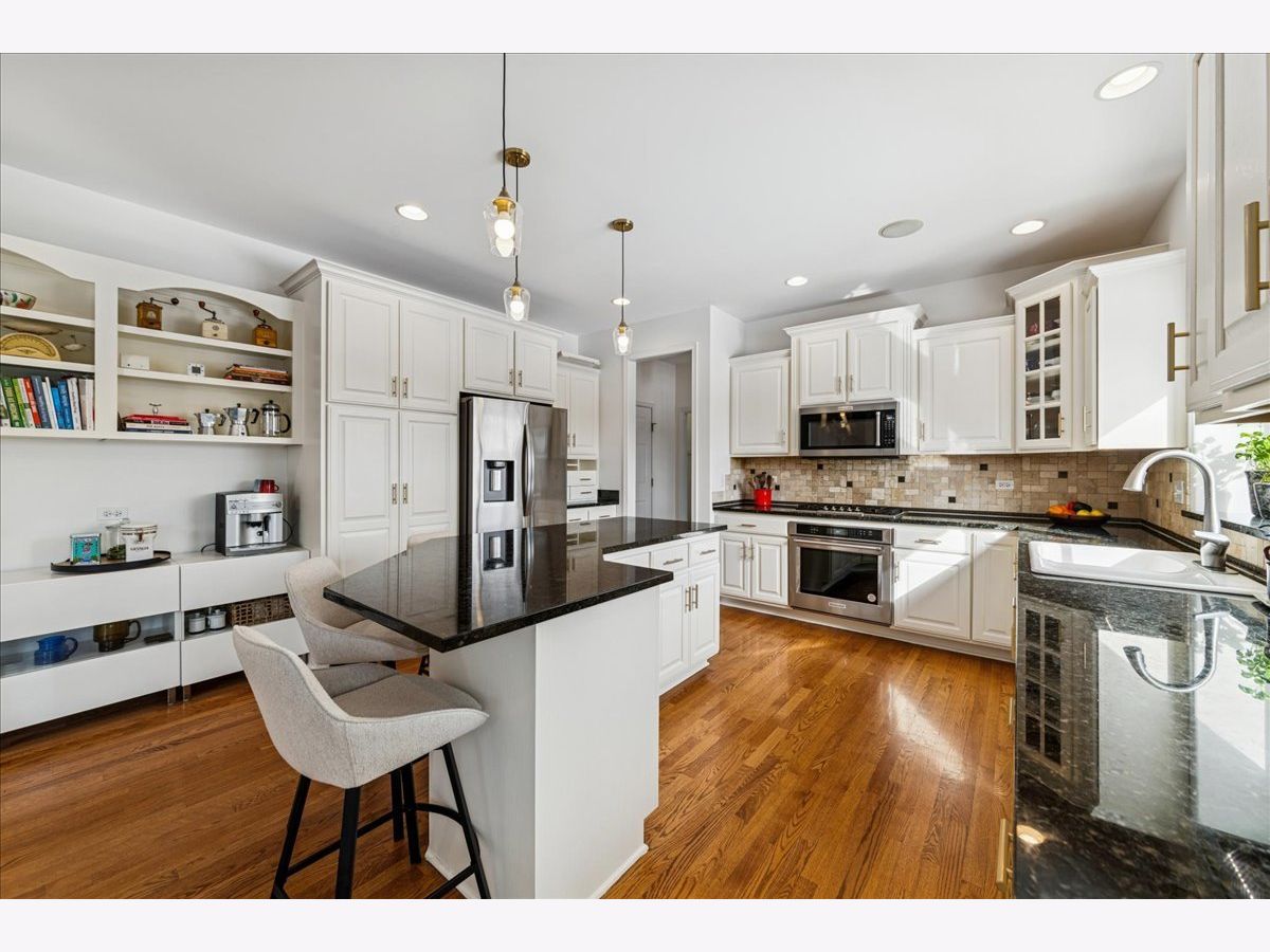 Situated on a quiet cul-de-sac with scenic wetland views, this quality-built Kings Court home offers 3,588 sq ft above grade plus an additional 1,100 sq ft finished lookout basement. Freshly painted throughout with updated bathrooms, new light fixtures and ceiling fans, this home is truly move-in ready. Enjoy abundant natural light with southern exposure flooding the island kitchen, featuring top-line stainless steel appliances and a new refrigerator, updated cabinet hardware, along with a sunny breakfast area and dramatic two-story family room anchored by a floor-to-ceiling masonry fireplace. The main level includes formal living and dining rooms, a grand two-story foyer, private first-floor library, and hardwood floors throughout. The spacious finished basement adds incredible versatility with a full bath, second kitchen, bar, additional fireplace, and a new basement refrigerator-perfect for extended living or entertaining. Retreat to the spa-like updated primary bath showcasing today's most sought-after finishes, including a freestanding soaking tub, oversized walk-in glass shower with designer tile surround and built-in niche, and a striking double vanity with quartz countertops, modern cabinetry, upgraded fixtures, hardware and stylish lighting-bright, luxurious, and timeless. The master suite offers a tray ceiling, impressive 32x7 walk-in closet, whirlpool tub, and separate shower. A private guest suite features a cathedral ceiling and en-suite bath, while the second-floor reading nook provides a cozy reading space. Additional highlights include a built-in sound system, whole-house air purification with two-zone high-efficiency HVAC, two water heaters, a 3.5-car garage, underground sprinklers, and two decks for outdoor enjoyment. Located in the desirable Thornwood community with access to The Sports Core clubhouse, fitness center, pool, tennis courts, and an on-site elementary school. Minutes to shopping, dining, and everyday conveniences. A truly exceptional place to call home.