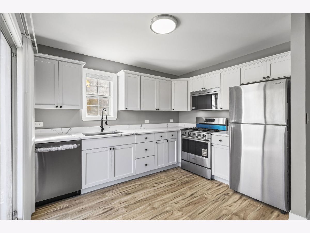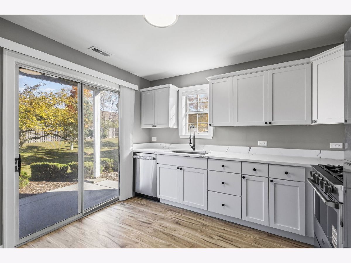 Look no further! Spacious fully updated two bed, two full bath ground level coach house in move-in condition. UPGRADES:new kitchen cabinets, quartz countertops, SS appliances, Kraus sink and disposal, modern light fixtures. Bathrooms feature large-format tiles, new vanities and trending finishes. Bedrooms are generously sized with new flooring and trim and walking closets. All interior doors, casing and locks replaced with contemporary styles. Private utility/laundry room with washer/dryer and extra space. Garage plus extra parking in driveway plus storage room inside garage. Brand new concrete patio for your outdoor enjoinment. HOA includes:water, scavenger, snow removal, landscaping, common insurance. Pet friendly. Fantastic location near shops, restaurants, parks and expressways. Come check it out today!