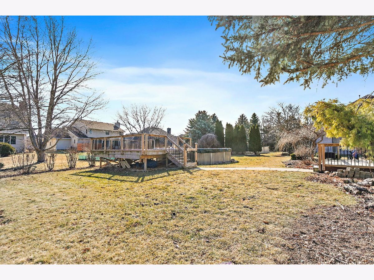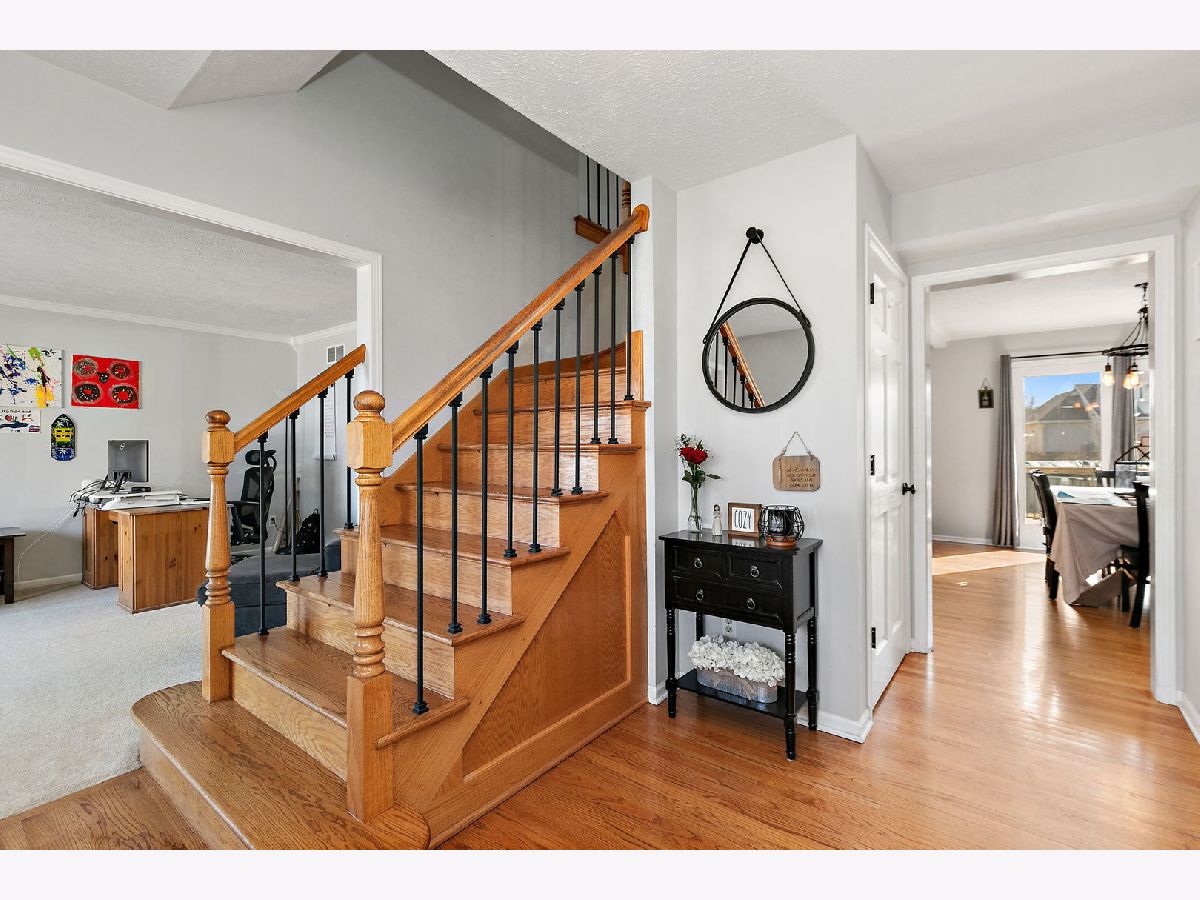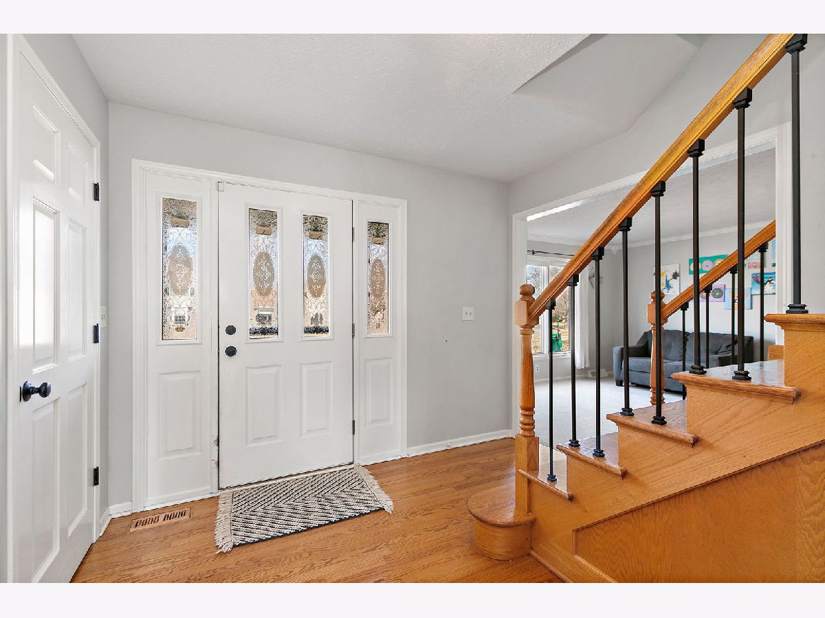 Beautifully situated in the desirable Foxpointe Subdivision, this charming 4-bedroom, 2.1-bath home offers a wonderful blend of comfort, style, and outdoor enjoyment. The backyard retreat features a newer deck and an above-ground pool, perfect for those who love to relax or entertain outdoors. Step inside through the welcoming foyer and onto the main level, where refinished hardwood floors set a warm tone throughout much of the space. The formal dining room provides an elegant setting for gatherings, while the carpeted living room offers a quiet spot for reading or a potential home office. The kitchen is both stylish and functional, showcasing quartz countertops, white cabinetry, updated light fixtures, an island/bar, and stainless steel appliances. It opens to the inviting family room, highlighted by a floor-to-ceiling brick wood-burning fireplace and a beautiful mantle, an ideal space for cozy movie nights. Conveniently located near the garage entry, the mud/laundry room includes a sink, cabinets, and a closet, offering plenty of space for coats, shoes, and everyday essentials. A half bath is also located nearby for added convenience. Upstairs, the lovely oak staircase leads to a landing with matching oak flooring. The vaulted primary suite features hardwood floors and a private ensuite complete with a soaker tub, separate shower, and double vanity-perfect for those who enjoy spa-like relaxation. Three additional bedrooms are generously sized, each with spacious closets. The basement includes a semi-finished rec room, additional space ready for your finishing touches, and abundant storage. The attached true 2.5-car garage provides even more room for tools, toys, and equipment. This home has been thoughtfully updated, including: Neutral paint throughout most rooms (2019); Light fixtures in the eating area and dining room (2020); Roof, refinished floors and balusters, front screen door, and kitchen sink (2021); Above-ground pool and deck (2022); HVAC system (2023). Close to schools, shopping, restaurants, medical and recreational facilities, and with easy interstate access, this home offers convenience and comfort in a fantastic location. A wonderful place to call HOME!