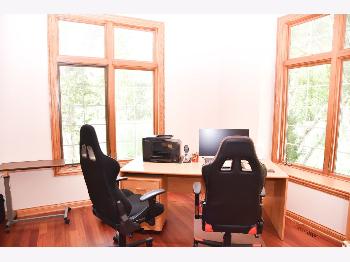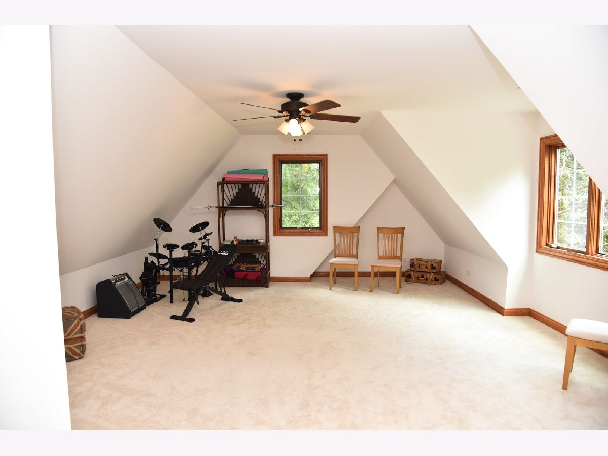 This gorgeous custom built 3600 sq ft French Country-style home on a 1.26-acre wooded lot is set on a dead-end street in an exclusive subdivision and provides the perfect retreat for serene country living. The home offers 3 spacious bedrooms, each with an attached full bath, as well as a large bonus room, perfect for a workout- or playroom, or a guest suite. A cozy loft, together with a private balcony that provides an opportunity to watch the local wildlife, completes the second level. On the main level, the comfortable family room with a gas and wood-burning fireplace provides warmth and immediately makes you feel at home. A full-wall built-in wooden shelf, designed and installed by HGTV celebrity Tiffany Brooks, offers ample room for a TV, books and artwork. The sunroom boasts a two-story ceiling and loads of natural light. The kitchen has a beautiful breakfast nook with a picturesque view of the backyard. A bright and spacious home office with high-speed internet access via fiber optic cable is perfect for working remotely. Every window in the house offers beautiful views of the surrounding woods. Multiple closets throughout the hallways offer plenty of storage space. The property features attached two- and one-car garages and a freshly resealed driveway. The two-car garage has a direct entry to the basement. The 9 ft partial English basement is unfinished but has plumbing for a bathroom. This home has been exceptionally well maintained with major updates already done for you: new high-efficiency water heater installed in 2025, two high-efficiency furnaces and humidifiers replaced in 2024, new induction cooktop installed in 2024, air conditioners exchanged in 2023, dishwasher renewed in 2020, roof and gutters replaced in 2019 (50-year transferable warranty). Energy-efficient windows and a modern security system add to the comfort and peace of mind, making this home move-in ready for its new owners. The property is just minutes away from the Van Patten Woods forest preserve, which offers plenty of outdoor recreational activities. ***Click on each picture in the virtual tour and move around to see the full room.**** Invisible Dog Fence*****