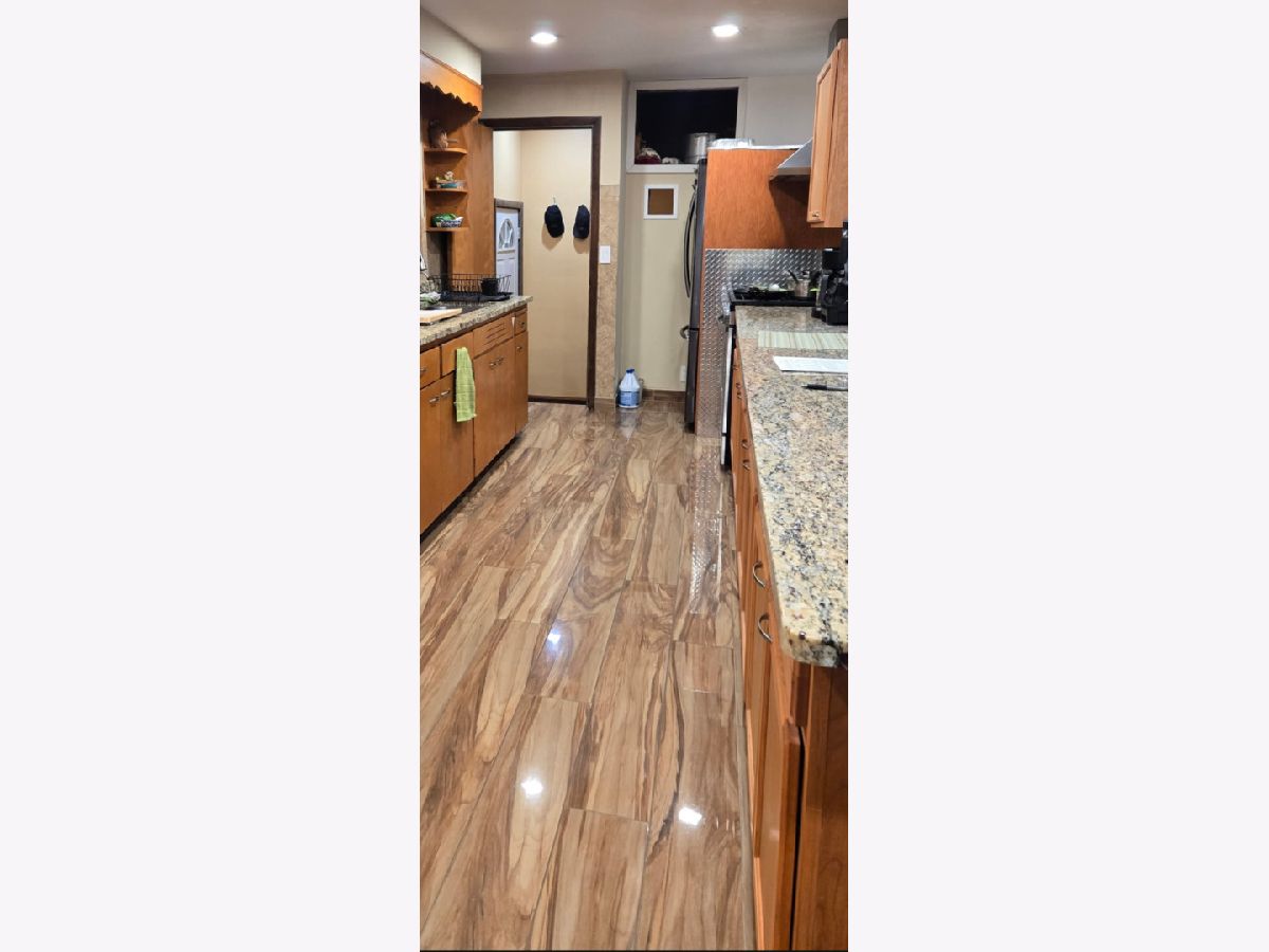 SOLD BEFORE PROCESSING Waukegan HILLSIDE Ranch, 3 bedrooms, one bedoom has been converted to dining room/sewing room, home features granite countertops, hardwood floors throughout except in kitchen which has premium laminate flooring, canister lighting in house and basement, full finished basement has large rec room, full bath with jetted jacuzzi tub, laundry and utility room, the basement has a walkout to the lower level patio (40 X 20 appox) and the first floor has a walkout to the Deck over the patio also approx 38 x 18. 4 CAR GARAGE, not heated but insulated and drywalled and all set up with electricity, outlets and EGDO.