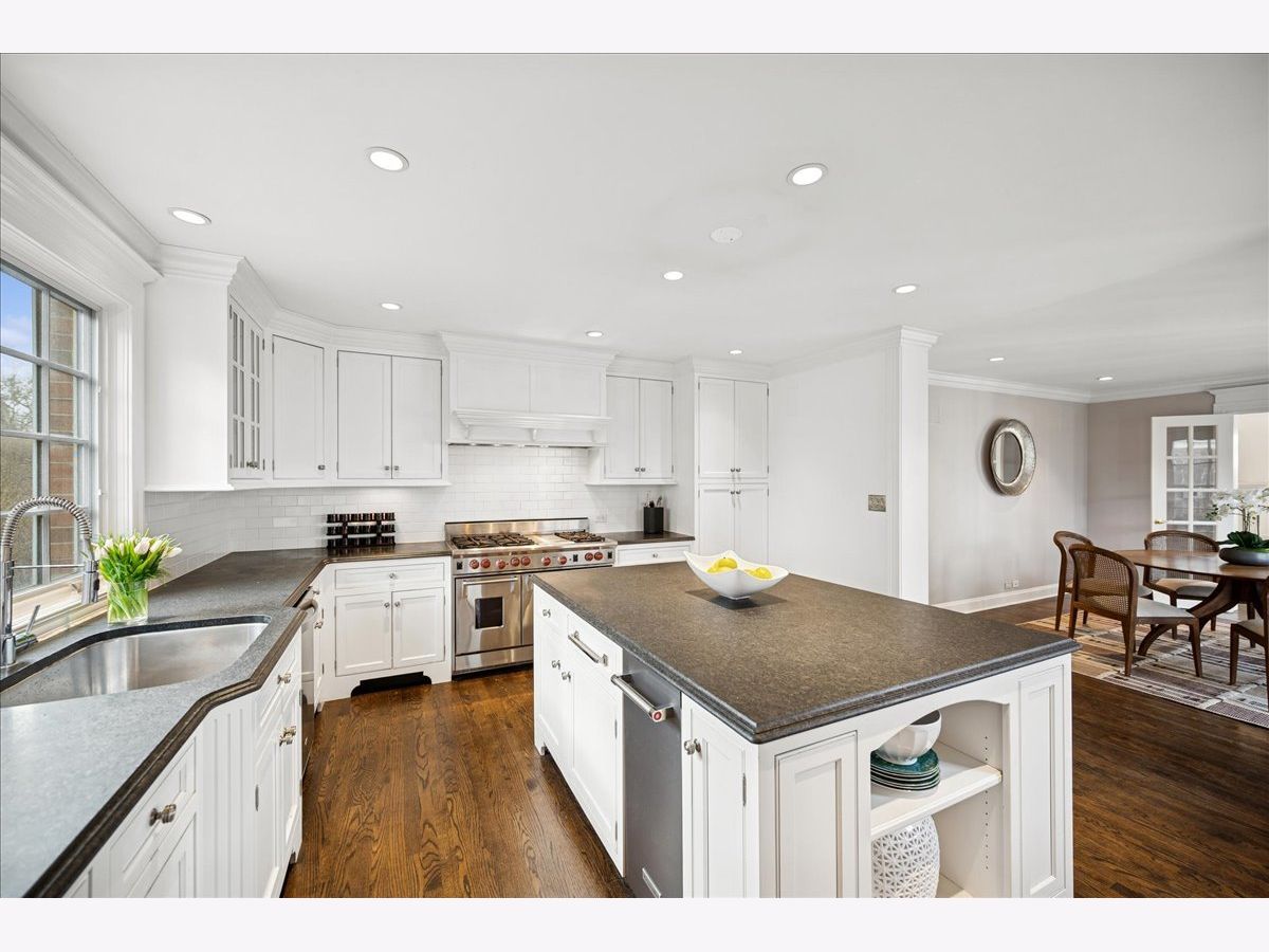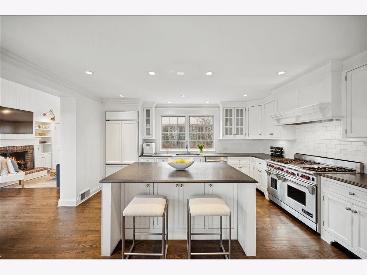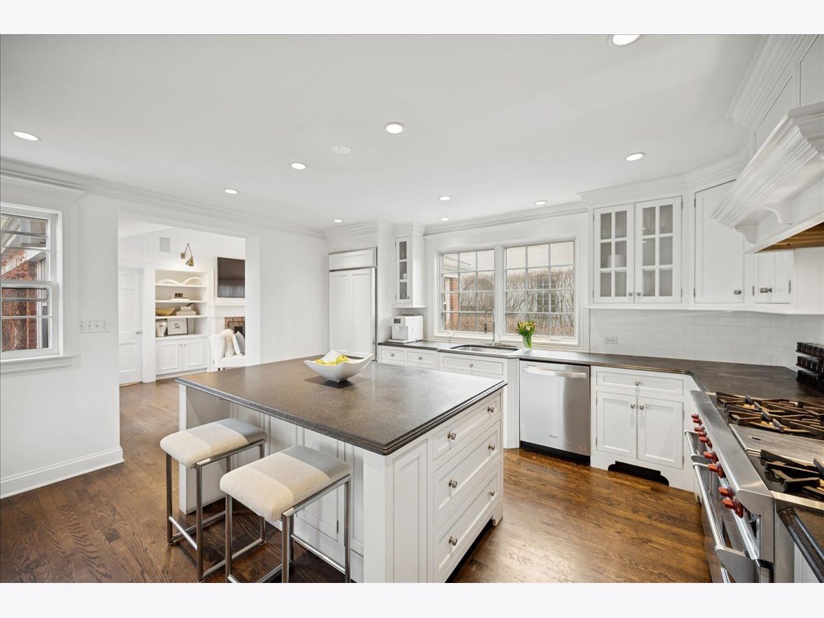 Set on a beautiful, oversized lot in Wilmette's sought-after Indian Hill Estates neighborhood, this classic red brick Georgian offers timeless charm paired with thoughtful updates for today's living. Built in 1951, this move-in ready home has a terrific floor plan with generous living spaces, and an attached two-car garage. Hardwood floors, crown moulding and traditional details create a warm, inviting feel throughout. The living room features a wood-burning fireplace and French doors that open to a happy and inviting sunroom, while a first-floor office provides a perfect work-from-home retreat. At the heart of the home is a beautifully renovated kitchen with high-end appliances (GE Monogram/ Wolf), custom inset cabinetry, and a large island ideal for everyday living and entertaining. The kitchen opens to a spacious dining room with direct access to a charming paver/ pea-gravel patio and fountain, and flows into a bright family room with built-ins and a gas fireplace, perfect for gathering. Upstairs, you'll find three spacious bedrooms, three full baths, and the convenience of upstairs laundry. The primary suite is a true retreat with vaulted ceilings, french doors to a private deck overlooking the backyard, and a spa-like bath with soaking tub, dual sinks, and ample storage. A sun-filled landing with soaring ceilings and skylights adds to the light and airy feel of the second floor. Seller has made many notable updates including all new mechanicals (new AC/Furnace/Water Heater), installed new attic insulation and water-proofed the basement. Extra bells and whistles include a sprinkler system and built-in speakers throughout. Located in the highly regarded D39 (Harper, Highcrest, Wilmette Junior High), and New Trier High school districts, this beautifully maintained home offers classic style and comfort in a terrific Wilmette locale! Don't miss it!