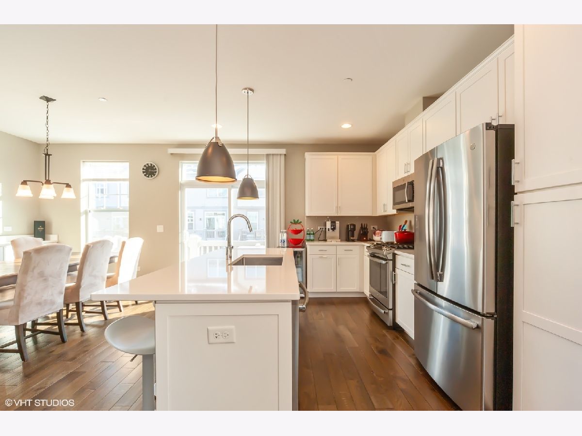 Welcome to 10 E Heritage-a breathtaking designer home by Lexington Homes, where luxury meets convenience! Step inside and be greeted by an expansive open floor plan bathed in natural light. Wide-plank hardwood flooring flows seamlessly across both the main and bedroom levels, complemented by two elegant solid oak staircases. A 9' stone fireplace serves as the focal point of the great room, adding warmth and contemporary charm. The kitchen features sleek stainless steel appliances, modern custom cabinetry, and premium quartz countertops. The open great room design is further enhanced by the end-unit location, offering additional windows and a beautiful bay feature that fills the space with even more light. The massive primary bedroom boasts soaring vaulted ceilings and an updated en-suite bathroom with a dual vanity and a walk-in shower. The two additional bedrooms have been thoughtfully expanded for extra square footage, ensuring ample space for comfort and versatility. This home offers an oversized two car garage, a finished basement, two full baths and two half baths, perfectly balancing style and functionality. Ideally located just moments from top-rated schools, shopping, dining, the train, and easy access to 90/94/53, this rare gem won't last long. Don't miss your chance-make it yours today!