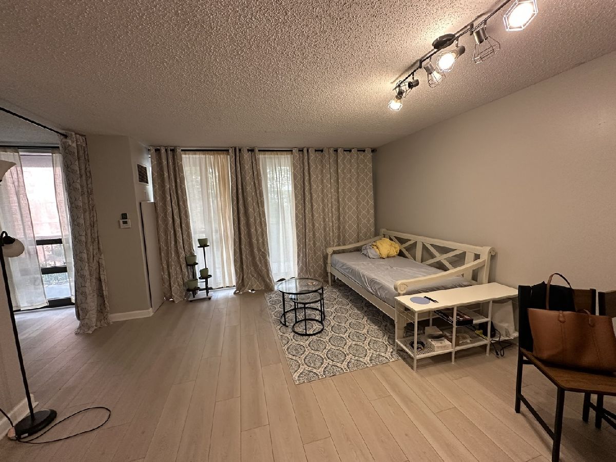 Welcome to this junior 1 bedroom in the heart of River North! This unit has East facing windows and oversized balcony, has tons of natural light. Recent updates includes new flooring throughout, new barn door, and newer refrigerator. Rent includes AC, heat, water, trash. Tenant pays electric and internet. Amenities on 7th floor include hot tub, pool, gym, business center, party room, patio, management office, and 27th-floor laundry facility with panoramic views. 24/7 door staff. Walking distance to train stops, bus stops, grocery & shopping. Pets are allowed. one year lease minimum.