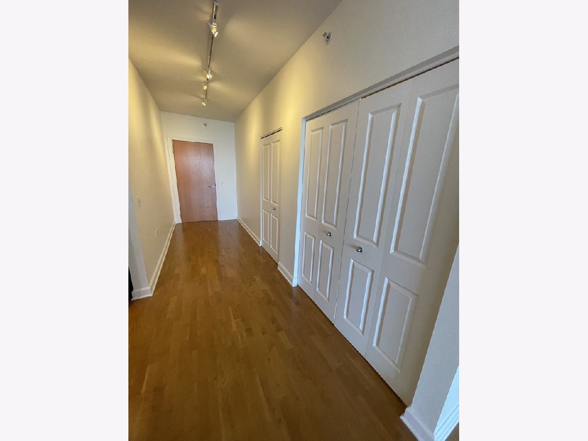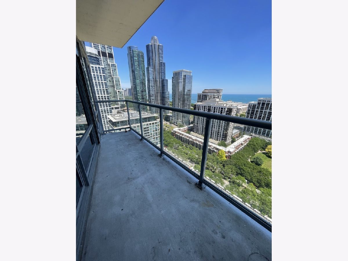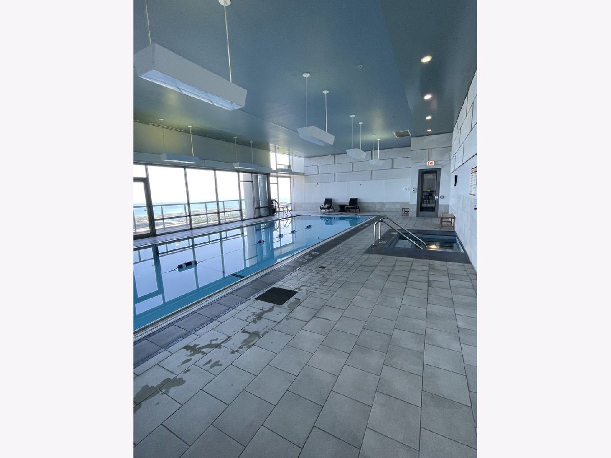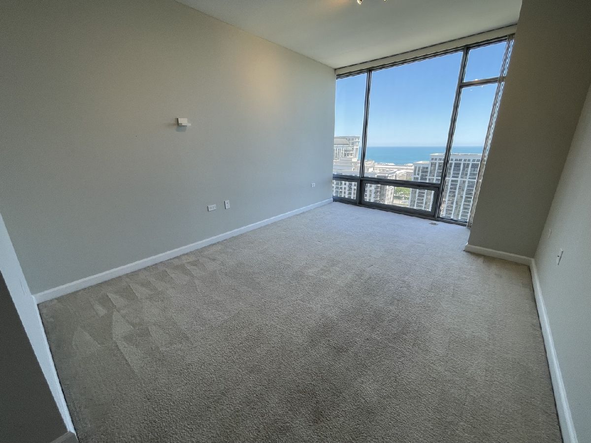 Stunning 25th floor East Facing Lake Views in a 2 bed 2 bath South Loop Condo. Hardwood Floors throughout the large open concept Living/Dining space. Inviting and wide entry way features the In Unit Washer/Dryer as well as a large front closet. The updated open kitchen is equipped with stainless steel appliances, including Dishwasher, Fridge, Double sided sink, Microwave and Oven Range. Ample Granite countertops offer plenty of space for food prep and room for table top appliances, as well as plenty of cabinet storage both above and below. Kitchen also features a long breakfast bar. Bright and Spacious Living/Dining room provides abundant space for a multitude of comfortable arrangements. The floor to ceiling windows look out onto a gorgeous view of the lake and Soldier Field, with a large balcony perfect for a grill and outdoor furniture to enjoy the gorgeous Chicago Summer. The first queen sized bedroom features floor to ceiling windows, overhead lighting and a large closet. Directly across from this bedroom is the first Full Bath, featuring a large vanity sink with counter space and undersink storage as well as tile flooring and tile surround shower/tub combo. Primary bedroom can fit a complete king sized bedroom set and is equipped with a massive walk in closet. The ensuite bathroom features a large dual vanity with a huge mirror and a spacious glass walk in shower. Additional den space provides the perfect spot for a work from home set up. Garage parking spot available for $200/month. Building features, Indoor Pool, Gym, Party Room and, 24 hour door staff. Don't miss out, come see this home today!