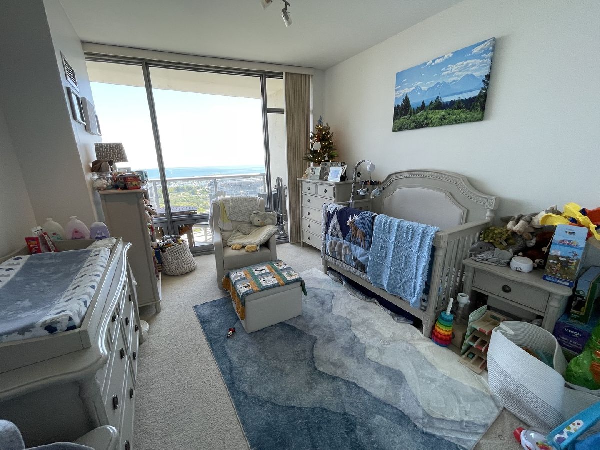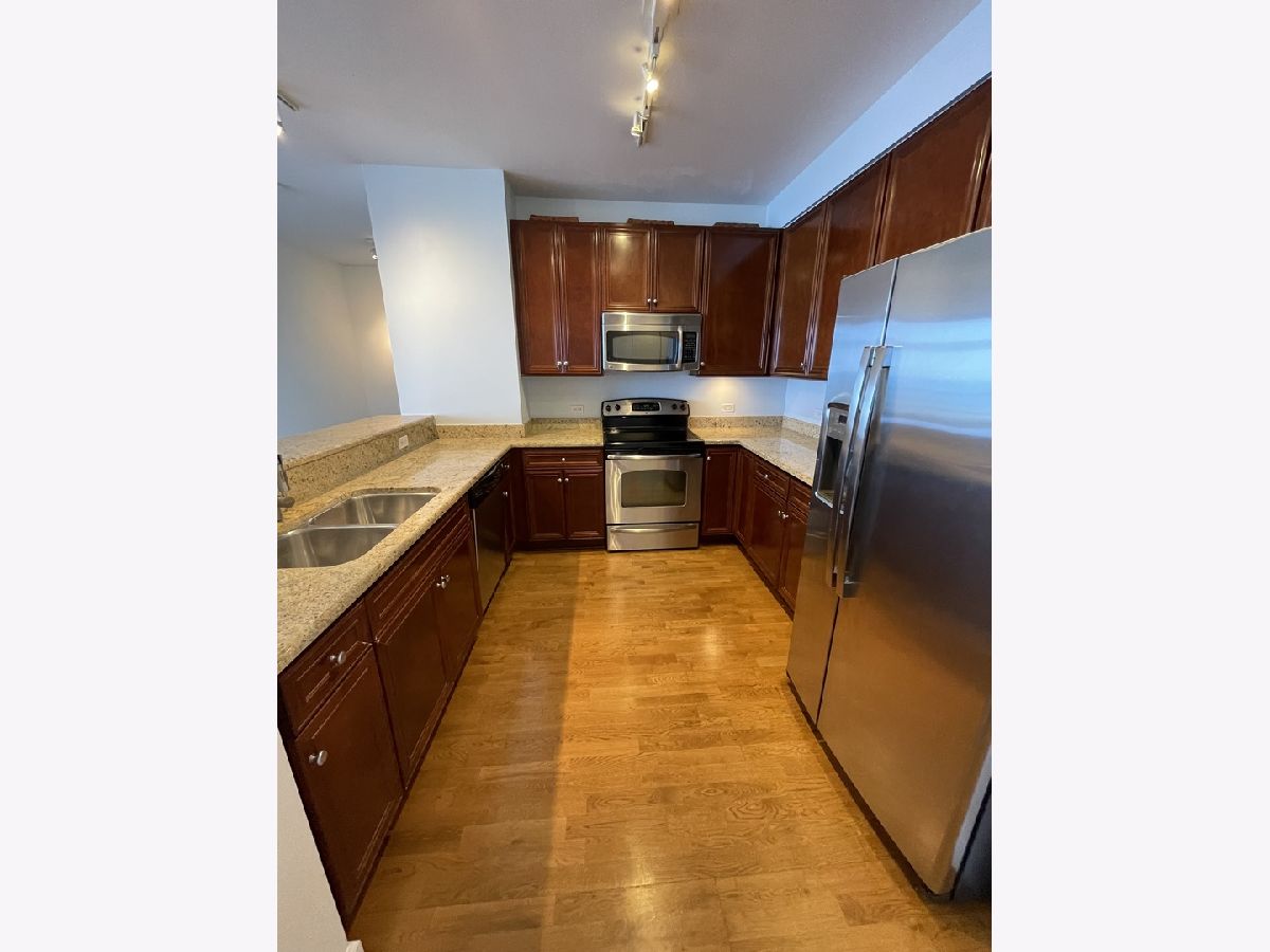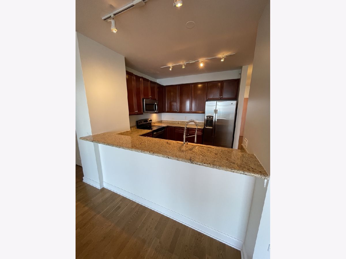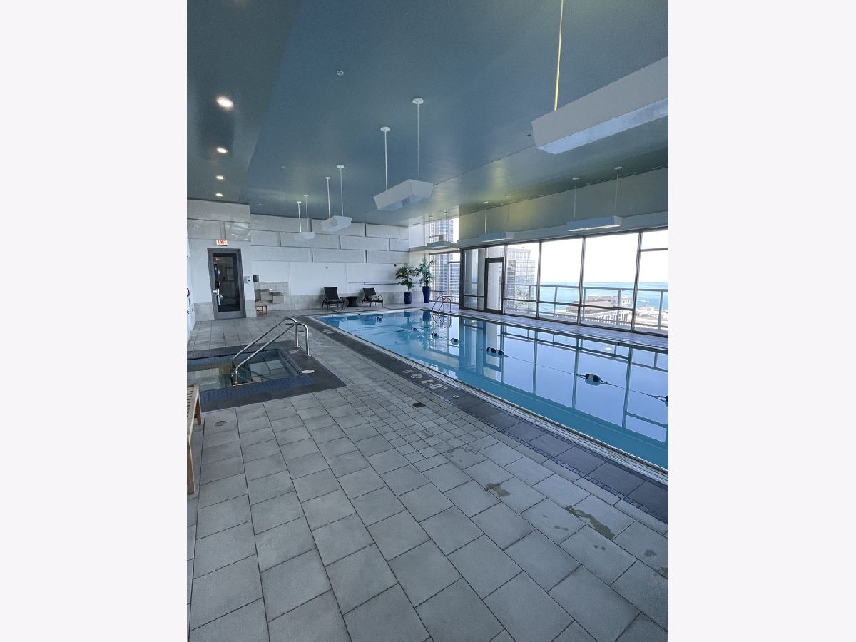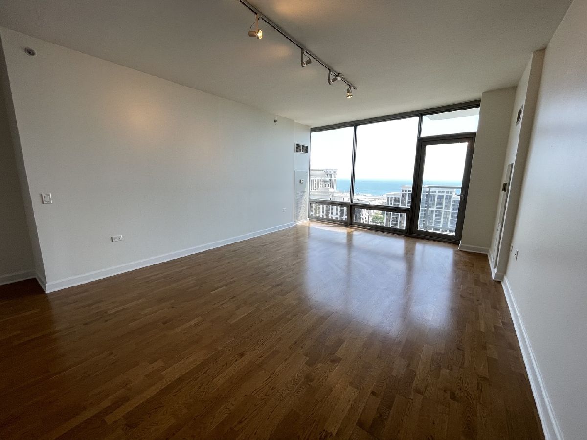 Stunning 25th floor East Facing Lake Views in a 2 bed 2 bath South Loop Condo. Hardwood Floors throughout the large open concept Living/Dining space. Inviting and wide entry way features the In Unit Washer/Dryer as well as a large front closet. The updated open kitchen is equipped with stainless steel appliances, including Dishwasher, Fridge, Double sided sink, Microwave and Oven Range. Ample Granite countertops offer plenty of space for food prep and room for table top appliances, as well as plenty of cabinet storage both above and below. Kitchen also features a long breakfast bar. Bright and Spacious Living/Dining room provides abundant space for a multitude of comfortable arrangements. The floor to ceiling windows look out onto a gorgeous view of the lake and Soldier Field, with a large balcony perfect for a grill and outdoor furniture to enjoy the gorgeous Chicago Summer. The first queen sized bedroom features floor to ceiling windows, overhead lighting and a large closet. Directly across from this bedroom is the first Full Bath, featuring a large vanity sink with counter space and undersink storage as well as tile flooring and tile surround shower/tub combo. Primary bedroom can fit a complete king sized bedroom set and is equipped with a massive walk in closet. The ensuite bathroom features a large dual vanity with a huge mirror and a spacious glass walk in shower. Additional den space provides the perfect spot for a work from home set up. Garage parking spot available for $200/month. Building features, Indoor Pool, Gym, Party Room and, 24 hour door staff. Don't miss out, come see this home today!