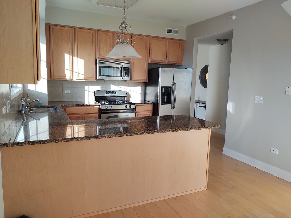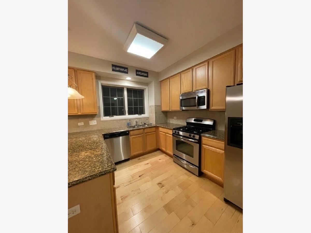 This absolutely gorgeous condo comes with not one, but TWO outdoor living spaces. You'll enjoy the balcony overlooking the shops and restaurants to the south and you'll love the HUGE TERRACE space with a panoramic western view that's great for watching sunsets . . . and a perfect place for outdoor gatherings. The indoor living space of this home is just as impressive as the outdoor space. The wood floors, spacious room sizes, ample natural light and kitchen with 42' cabinets, granite tops and stainless steel appliances are both functional and beautiful. The home features in-unit laundry, indoor parking and a fantastic location. You'll be just steps away from an ever growing number of bars and restaurants, the Metra station, library and a grocery store that's coming soon. There's even a small park right across the street and you'll literally be at ground zero for numerous festivals, concerts, Oktoberfest, car shows and lots of other great social and community events! Strong credit is preferred. No pets, please.