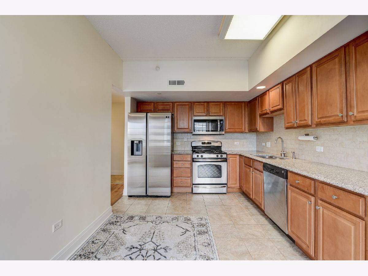 Gorgeous condo in prime Mount Prospect location. This 2 bedroom, 1.5 bath 2 level condo features new LV flooring, new washer/dryer, new refrigerator and new microwave. Large eat-in kitchen with stainless appliances and granite counter-tops. The living room has direct access to the oversized terrace and has plenty of windows/patio door for loads of light. 2 spacious bedrooms upstairs along with in-unit laundry and shared bathroom with double sinks. Heated garage parking and additional storage. Ideal location, across the street from Metra. Starbucks, Le Peep, Canla Napoli and more on street level! Welcome Home.