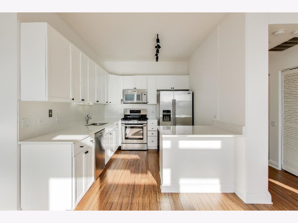 Luxury penthouse living in the heart of the West Loop. This beautifully updated 2-bedroom, 2-bath residence features soaring 11-foot ceilings and a highly sought-after split floor plan, with both bedrooms fully enclosed and offering true windows-ideal for privacy and functionality. The expansive living area is filled with natural light and showcases hardwood floors throughout, a gas fireplace, and floor-to-ceiling windows that open to a private balcony. The chef-inspired kitchen has been tastefully updated with stainless steel appliances, quartz countertops, a modern backsplash, and custom cabinetry-perfect for both everyday living and entertaining. The king-sized primary suite offers generous closet space and a spa-like en-suite bath with a dual-vanity and walk-in shower. Residents enjoy building amenities including a fitness center and sundeck. Unbeatable location just steps from Randolph Street's Restaurant Row, Fulton Market, boutique shopping, and some of Chicago's best dining, nightlife, and coffee spots. Easy access to public transit, the Loop, and major highways makes this an ideal home for the urban professional seeking both convenience and elevated city living.