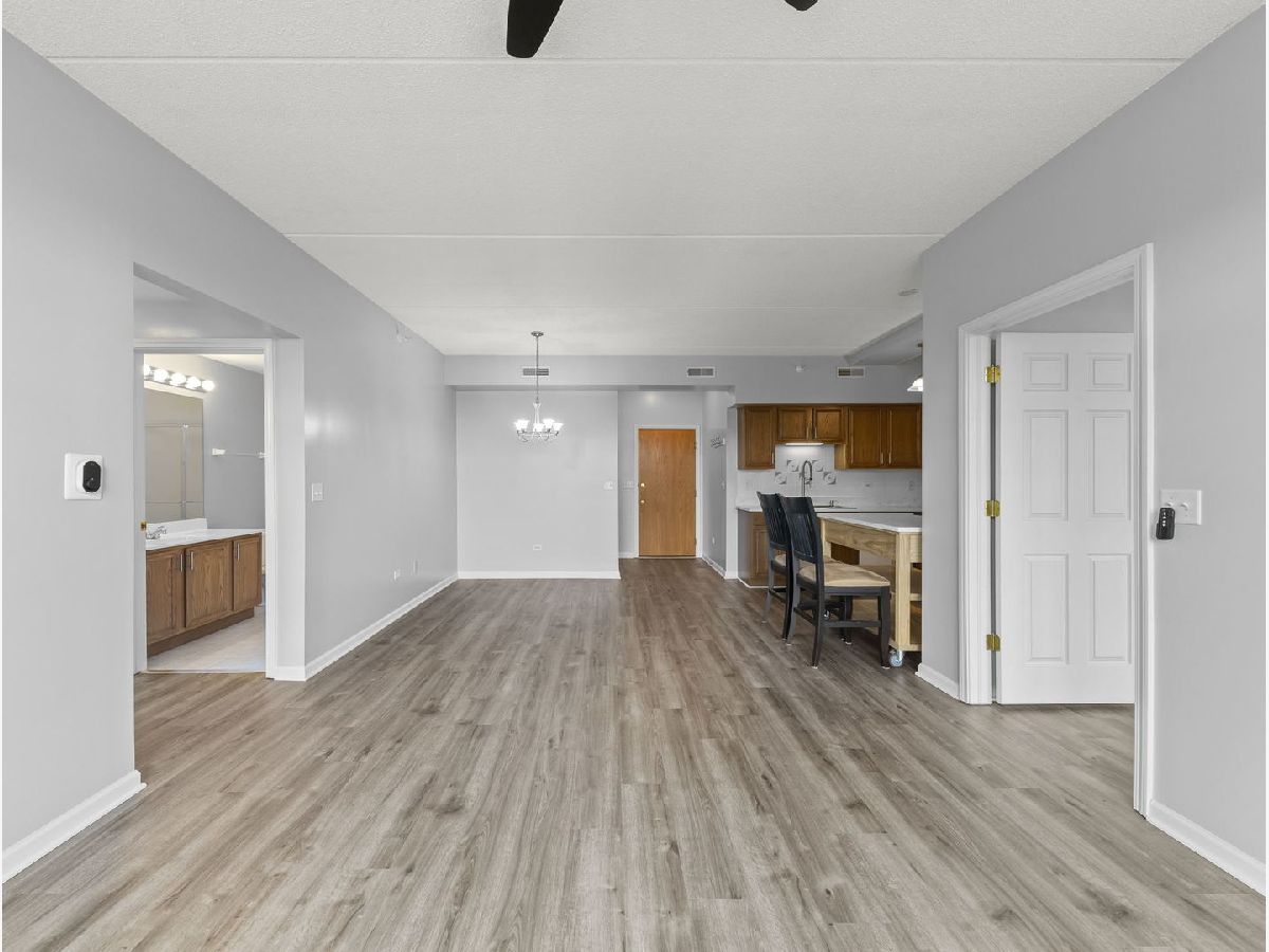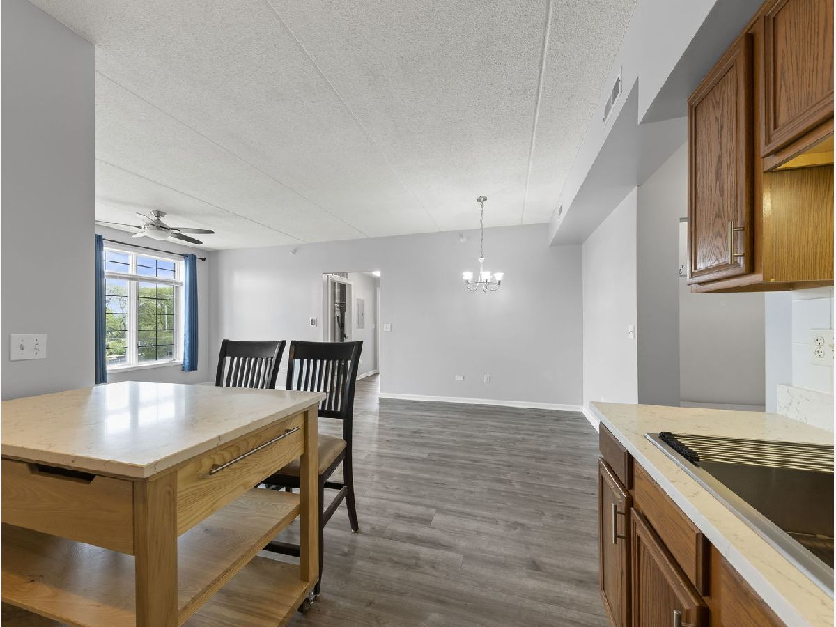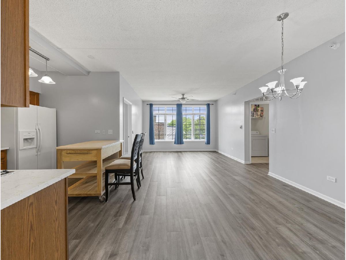 COMMUTER'S DREAM!!...steps away from the train and all the amenities offered in downtown Lombard. This non-smoking building offers a spacious floor plan with 9ft ceilings and new on trend vinyl floors. Enjoy perfect for entertaining in the sunny living room/dining room with easy access to the open kitchen and mobile island. Kitchen features newer appliances and high end quartz countertops. Separate bedrooms are perfect for visitors or private office. The large, bright primary bedroom features an en-suite bathroom with separate shower and soaker tub. In-unit laundry with full-size washer/dryer. Tons of closet space and even window treatments with blackout blinds. This elevator building also has an additional storage unit in the basement. Enjoy a PRIVATE one car garage plus one outside space. Enjoy all the parks, shopping, and restaurants that Lombard has to offer. City living in the suburbs!