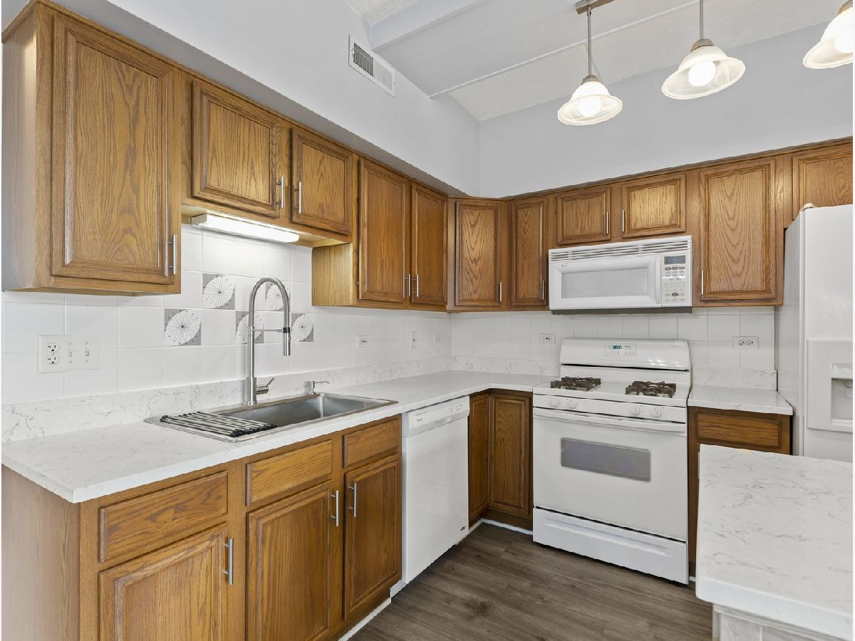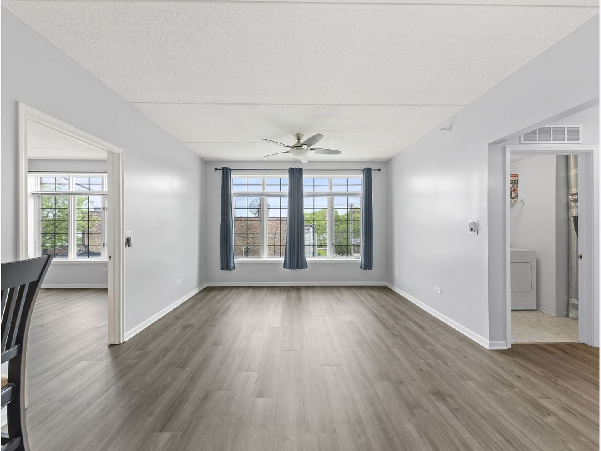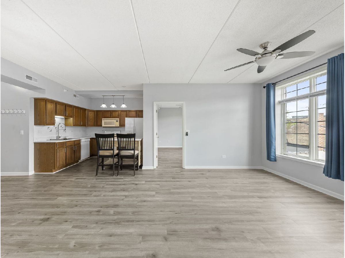 COMMUTER'S DREAM!!...steps away from the train and all the amenities offered in downtown Lombard. This non-smoking building offers a spacious floor plan with 9ft ceilings and new on trend vinyl floors. Enjoy perfect for entertaining in the sunny living room/dining room with easy access to the open kitchen and mobile island. Kitchen features newer appliances and high end quartz countertops. Separate bedrooms are perfect for visitors or private office. The large, bright primary bedroom features an en-suite bathroom with separate shower and soaker tub. In-unit laundry with full-size washer/dryer. Tons of closet space and even window treatments with blackout blinds. This elevator building also has an additional storage unit in the basement. Enjoy a PRIVATE one car garage plus one outside space. Enjoy all the parks, shopping, and restaurants that Lombard has to offer. City living in the suburbs!