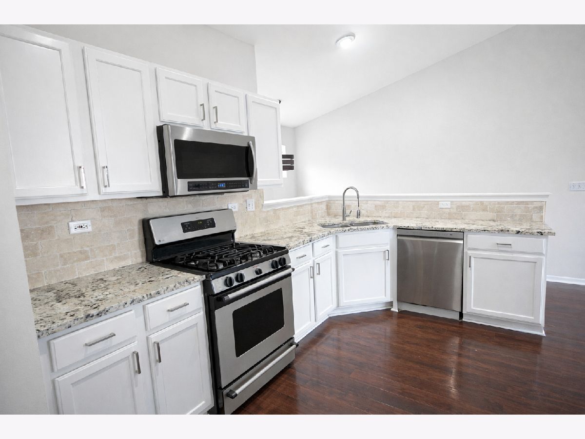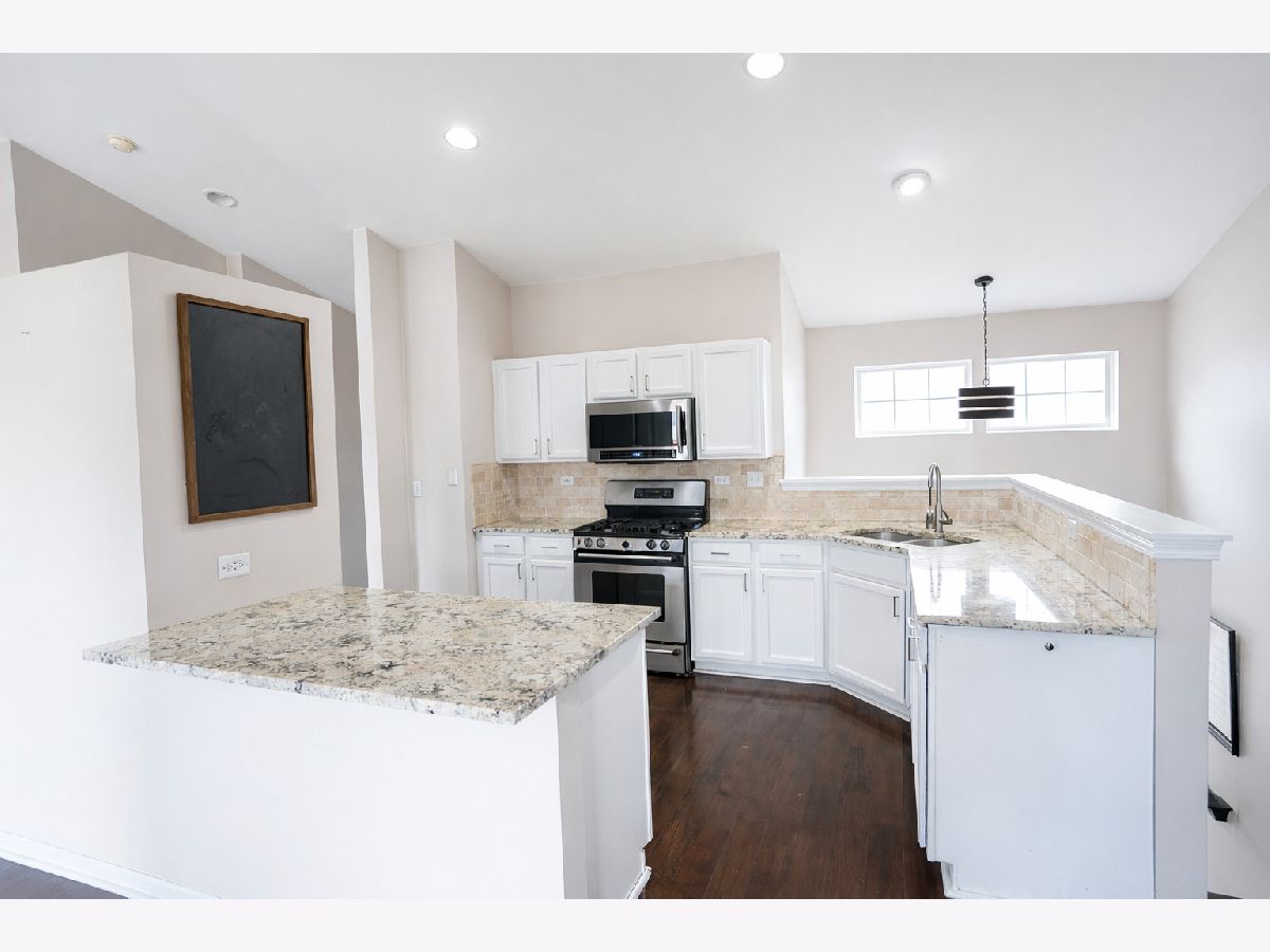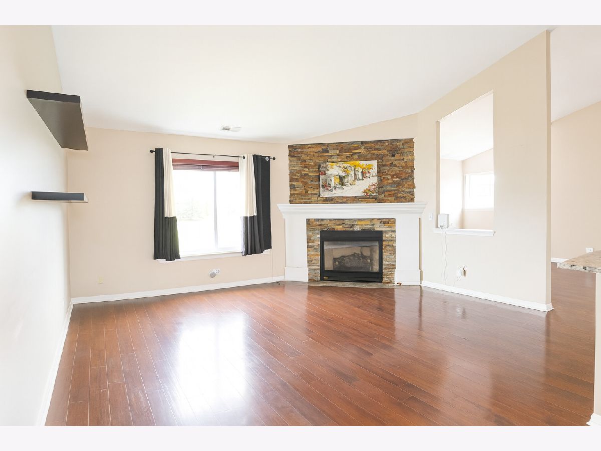Move-in ready 3-bedroom, 2-bath second-floor unit featuring extensive upgrades and an open, airy layout. The spectacular kitchen is the heart of the home, showcasing a large center island with bar seating, high-end granite countertops, elegant travertine backsplash, white cabinetry, and rich dark plank flooring-perfect for both everyday living and entertaining. This popular open-concept model offers impressive architectural character with a peaked ceiling and angled walls, creating a bright and spacious atmosphere. The kitchen flows seamlessly into the family room, where a beautiful stone fireplace serves as a striking focal point and enhances the home's contemporary design. The spacious primary suite features two closets and a spa-like private bath, providing a comfortable retreat. Step outside to the private balcony and enjoy expansive views of breathtaking sunset skies. Located within the highly sought-after District 204 school district, this home is just minutes from the Metra station, major expressways, shopping, dining, and everyday conveniences. Residents enjoy excellent community amenities including a clubhouse, swimming pool, tennis courts, basketball court, and playground. A fantastic opportunity to enjoy space, location, and modern living-all in one place.