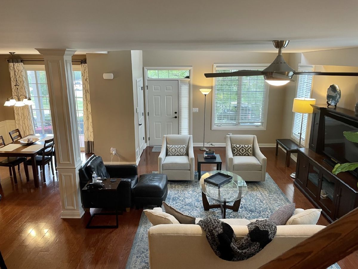 A COMMUTER'S DREAM LOCATION!!! Beautiful modern 3 bedroom, 2.5 bath townhouse in amazing condition in lovely Colette Highlands of Orland Park. Steps away from the Orland Metra stop, playground, and Centennial Park. The Conor model has an open floor plan and modern finishes with close to 2200 sq. ft. Huge kitchen with stainless and granite and massive island. 3 great size bedrooms and awesome closet space. Master bedroom, bath and huge closets. Additional loft space upstairs for office. Beautifully situated with porch and driveway for guests lead to 2 Car attached garage with extra storage above. Maintenance free living. Can be rented furnished for additional fee and can be rented short term for $3000/month. Available Oct 1st.