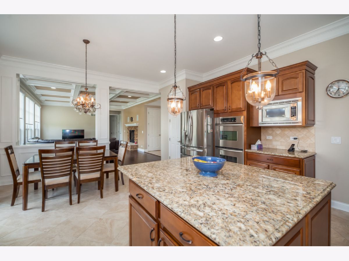 The home is in a maintenance-free gated community in the highly-rated Barrington school district. The home is situated on one of the largest, walkout basement lots that back to open space. Features include a timeless exterior brick front, oversized concrete driveway for ample parking, custom deck with Trex composite deck flooring, and curved paver patio. The home has been well maintained and significantly updated. The family room features a stunning coffered ceiling and a stone fireplace. The main level has newly installed hardwood flooring. There is extensive millwork throughout including crown molding and wainscoting. The kitchen includes a 36" commercial-style gas cooktop and vent hood, a custom cabinet layout with a travertine backsplash, and an oversized island. A RO system was recently installed. The entire house has been recently painted with modern color choices and carpets replaced in the entire house including the basement. The water heater was just replaced. The Master bedroom has a tray ceiling, with separate his and her closets, and a master bath with an oversized soaking tub and a separate shower. The 3 additional bedrooms feature attached baths and crown molding. The finished walkout basement also includes an exercise room and a bedroom with a full bath.