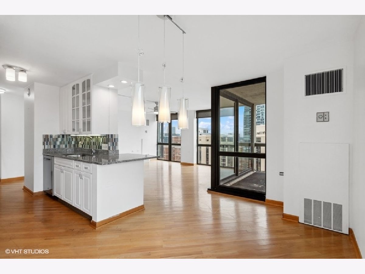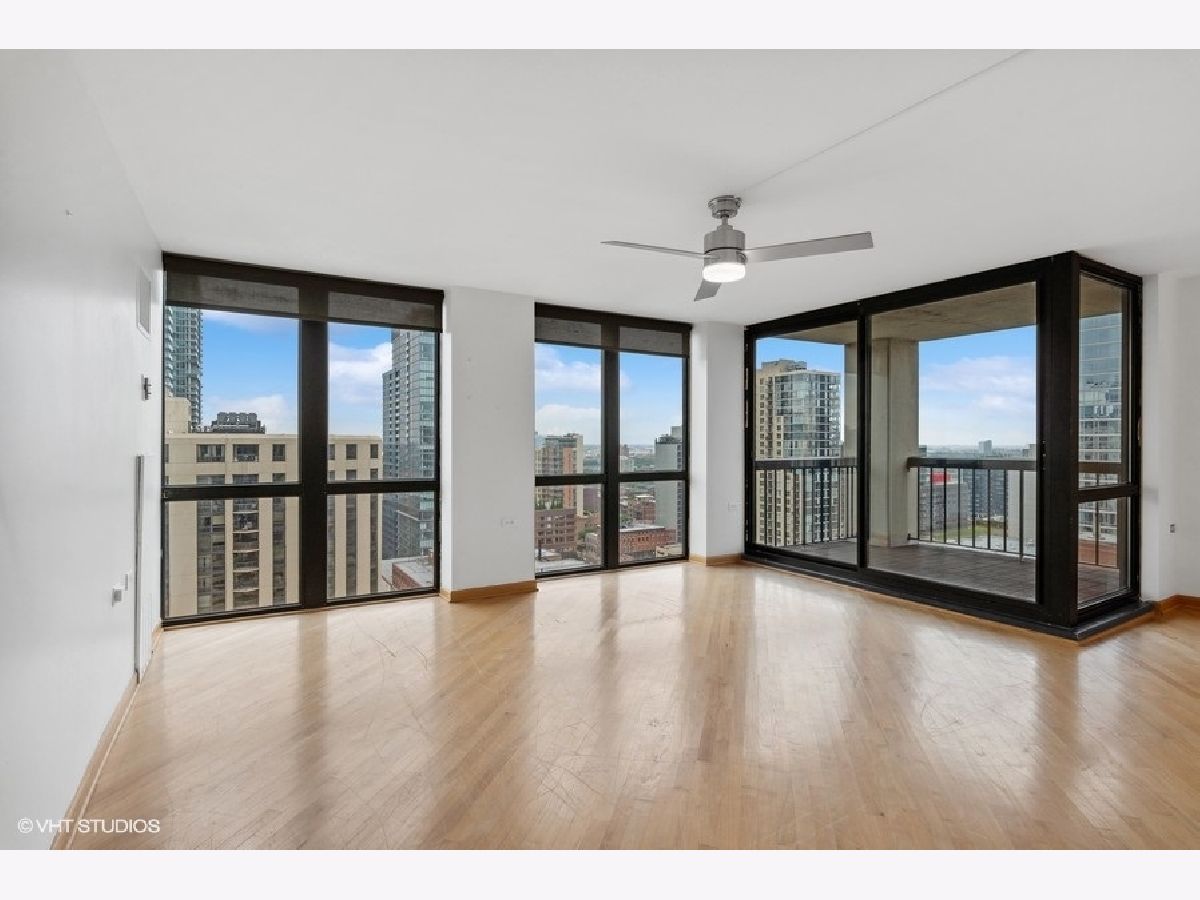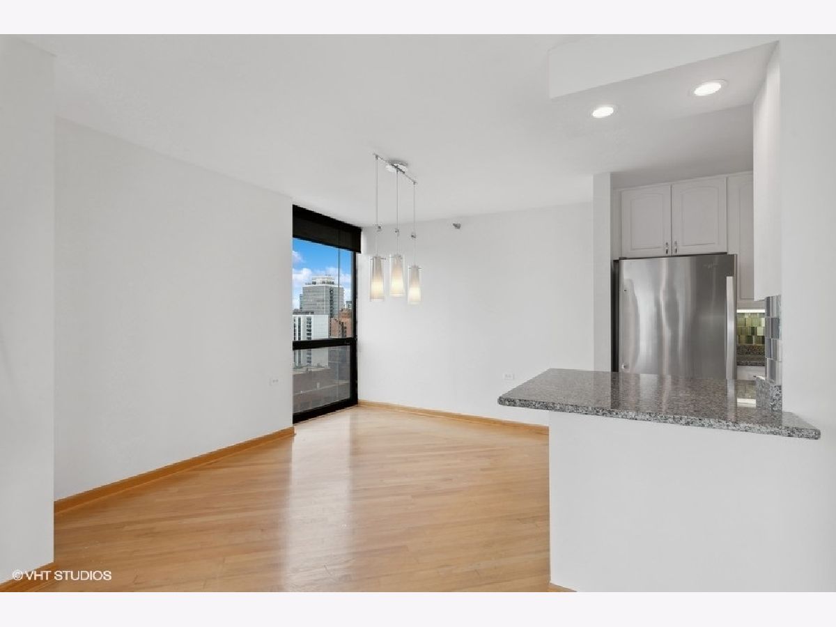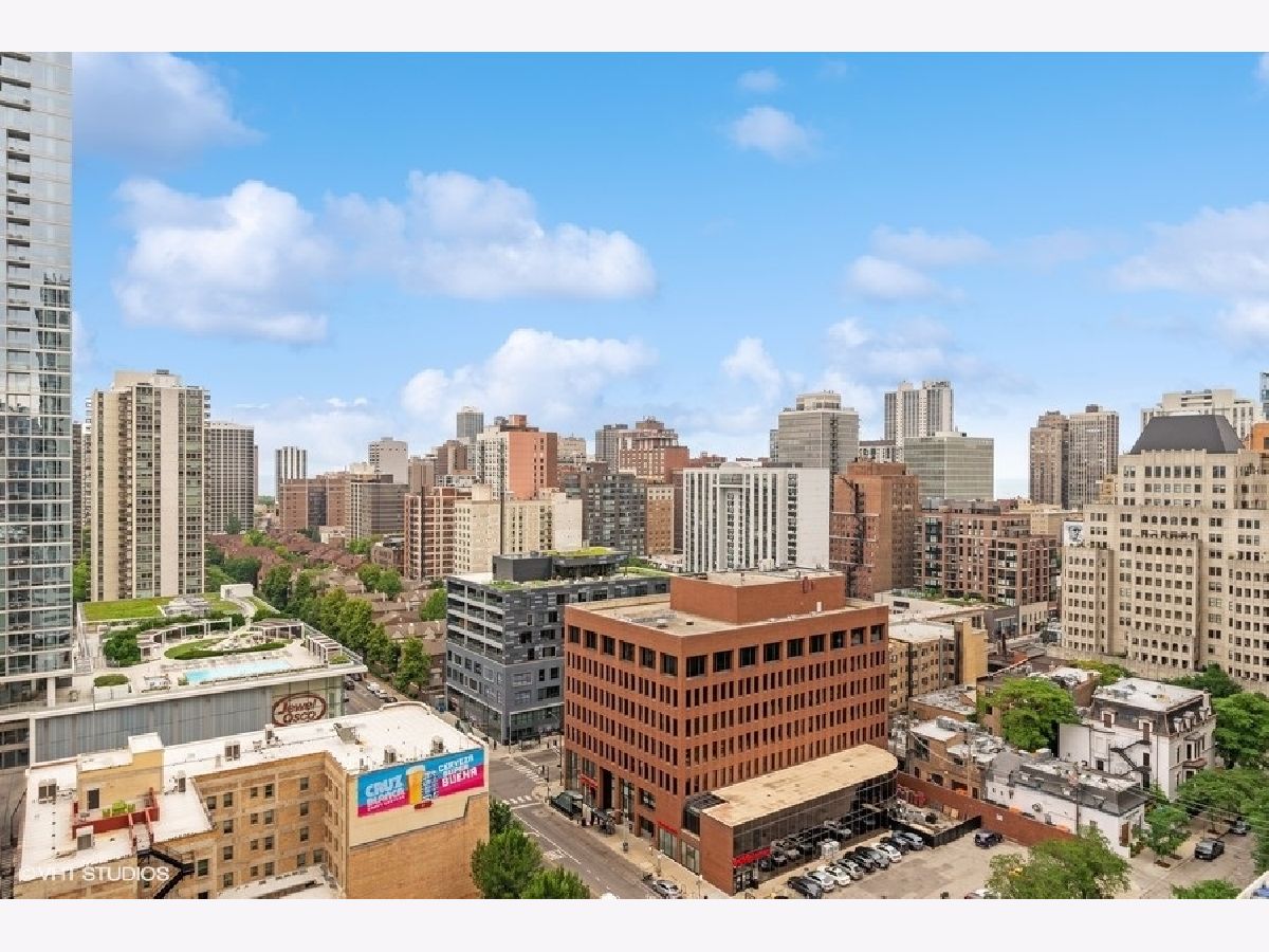 High floor 2 bedroom, 2 bathroom corner home with beautiful views and updates in a perfect location and option of parking. Enjoy stunning north and west city and lake views from every room. The large living space opens out to a balcony and is lined with windows, while a separate area off the kitchen allows for dining room table. The white kitchen is updated with granite counters and stainless appliances, offering excellent cooking and storage space. Both bedrooms are very well proportioned and both bathrooms have been updated as well. The primary suite includes a walk-in closet, and the second bedroom has a wall of closets. Hardwood floors are throughout the main living areas. Excellent building with 24-hour door staff, outdoor pool, sundeck, fitness room and laundry. Garage parking additional $200/mth. So perfectly located with the Red Line El, Jewel, Old Town, River North, the lakefront, and everything else just outside your door! No smoking and no pets. Available immediately.