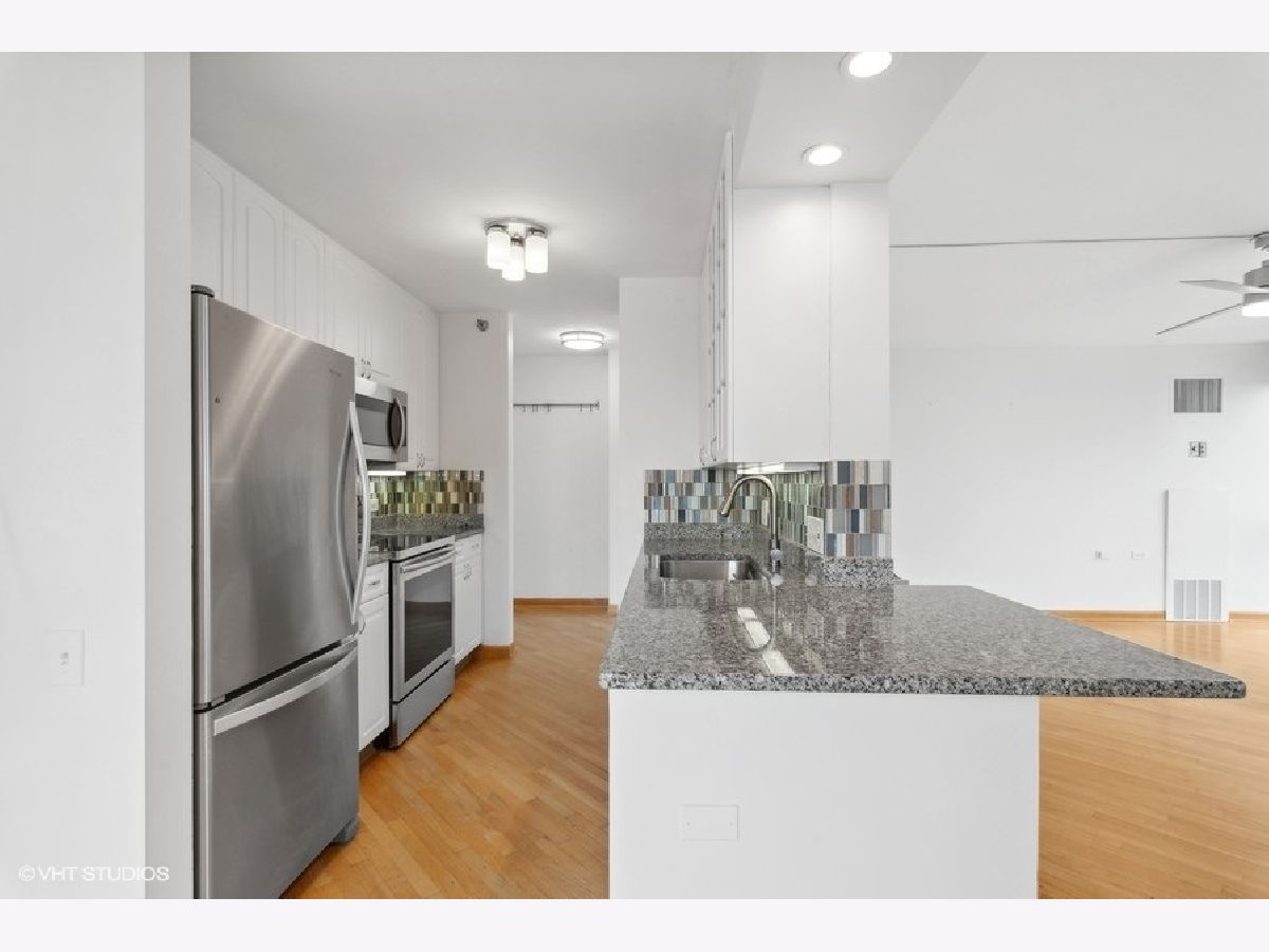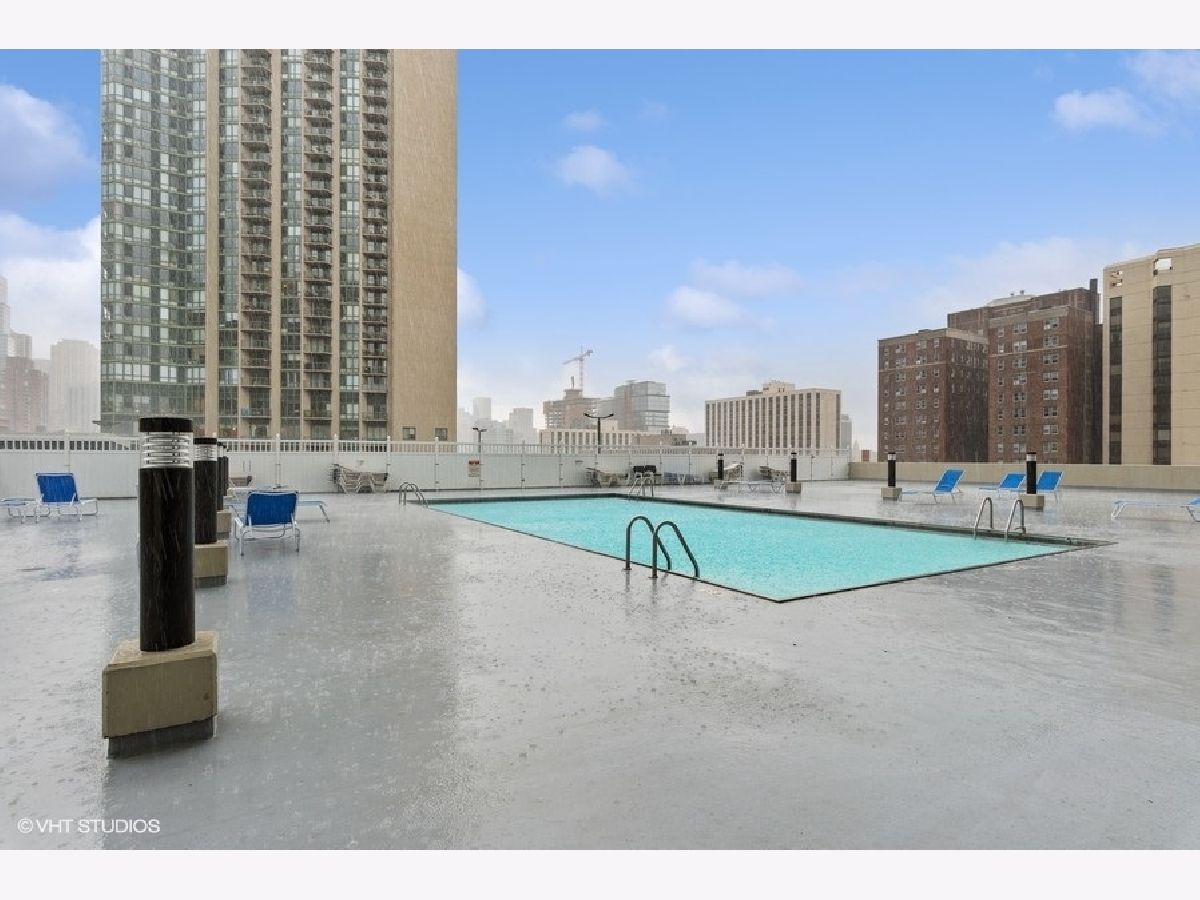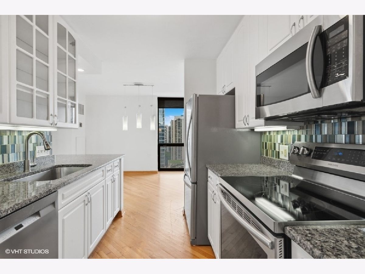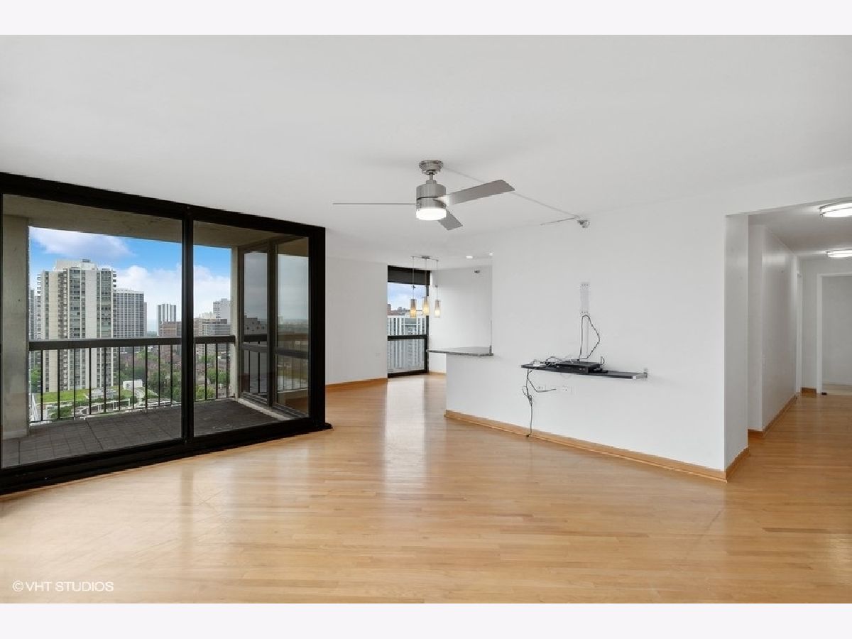 High floor 2 bedroom, 2 bathroom corner home with beautiful views and updates in a perfect location and option of parking. Enjoy stunning north and west city and lake views from every room. The large living space opens out to a balcony and is lined with windows, while a separate area off the kitchen allows for dining room table. The white kitchen is updated with granite counters and stainless appliances, offering excellent cooking and storage space. Both bedrooms are very well proportioned and both bathrooms have been updated as well. The primary suite includes a walk-in closet, and the second bedroom has a wall of closets. Hardwood floors are throughout the main living areas. Excellent building with 24-hour door staff, outdoor pool, sundeck, fitness room and laundry. Garage parking additional $200/mth. So perfectly located with the Red Line El, Jewel, Old Town, River North, the lakefront, and everything else just outside your door! No smoking and no pets. Available immediately.