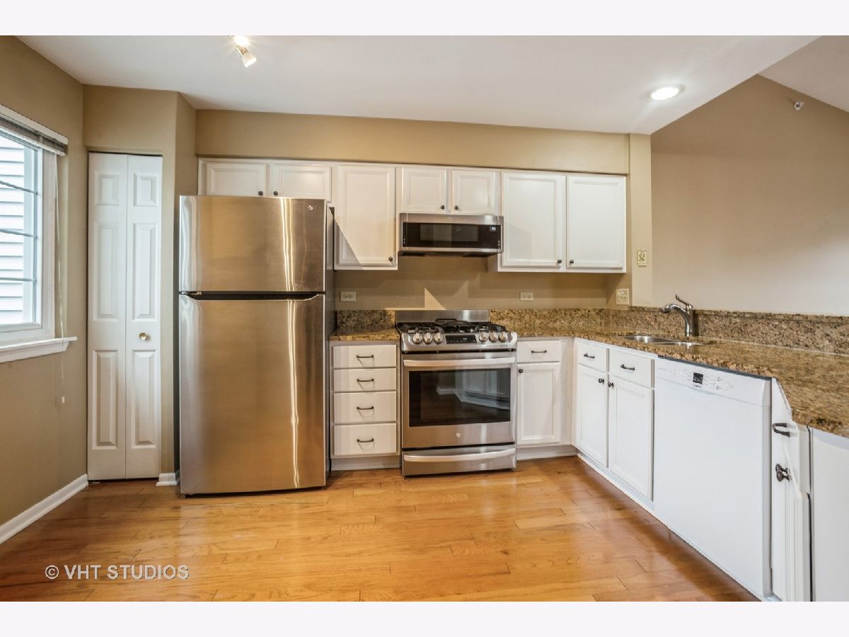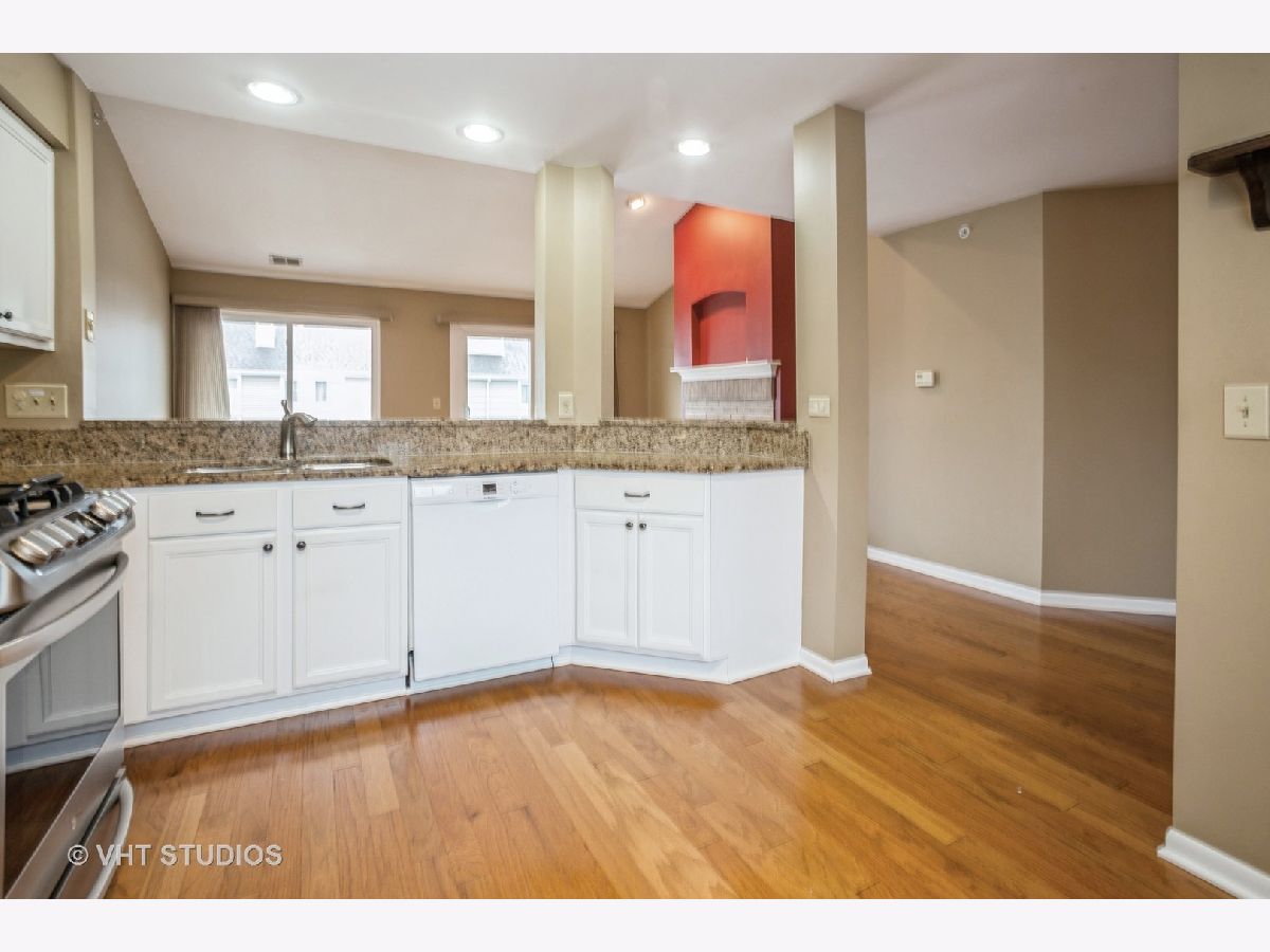 Rarely available 3 bedroom one floor unit in Cambria, Lombard. move-in Move in ready and updated throughout. Open floor plan, vaulted ceilings hardwood flooring. Large sunlit living room with balcony and patio doors to balcony, beautiful gas fireplace, open to the updated kitchen with granite countertops, breakfast bar, eating area, pantry closet and newer stainless steel appliances (LG refrigerator 2023, LG oven range 2020, Bosch dishwasher 2018). The living room and kitchen are open to the formal dining room. The primary bedroom has vaulted ceiling, spacious walk-in closet and full bath with separate vanity area. Windows, roof, siding, garage door opener all new 2019, washer and dryer 2016. No pets.