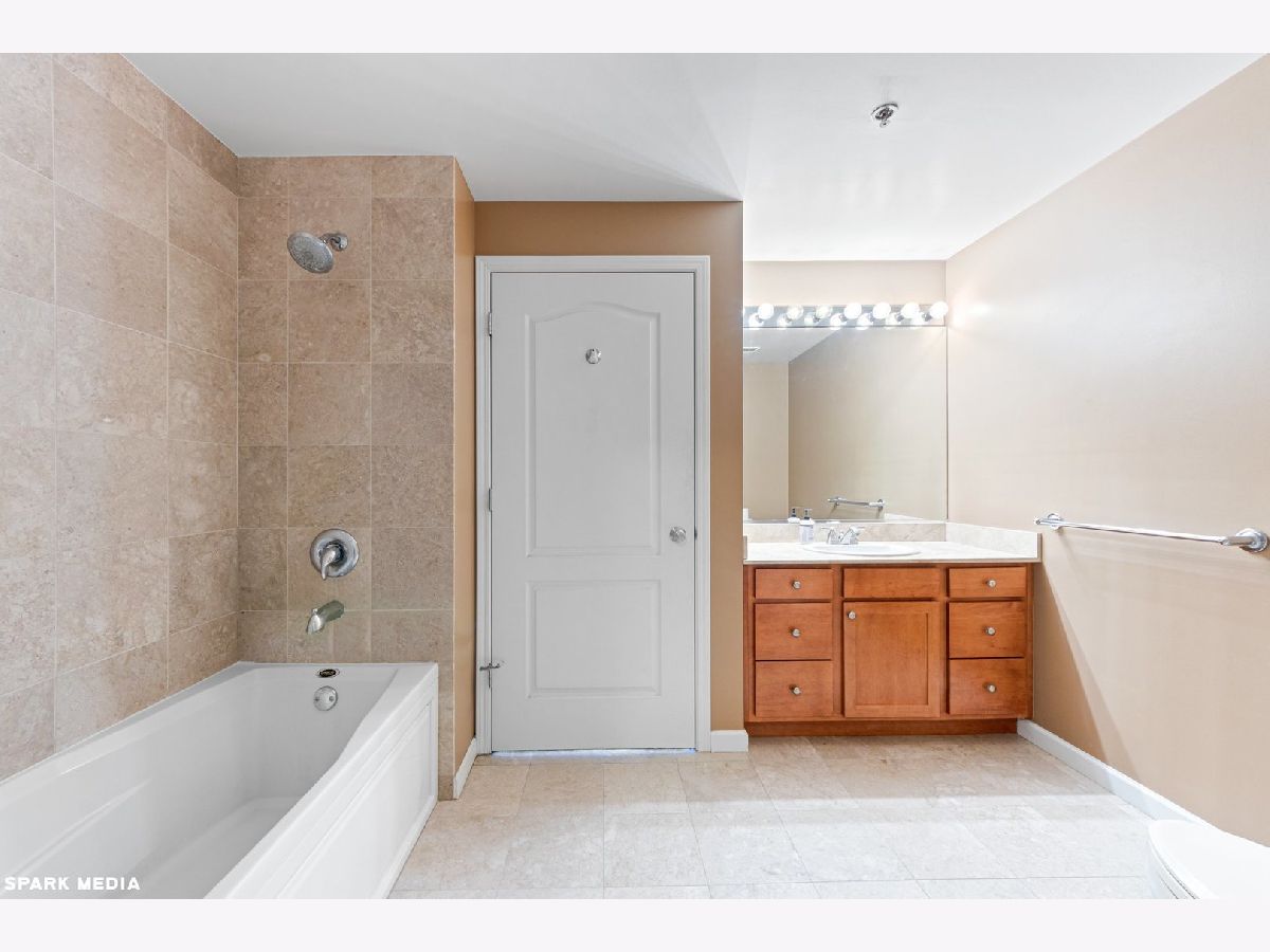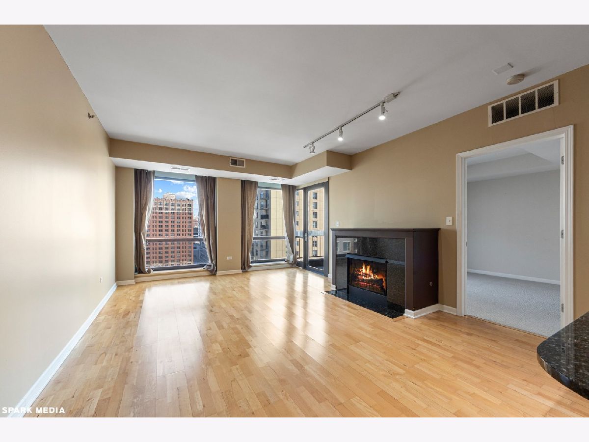 Large 1 Bed + Den. Garage parking additional $200. Excellent location in the heart of Old Town on coveted & historic Wells Street sits this beautiful, rarely available, spacious 1 Bed + Den, 1 Bath east facing condo! On a higher floor, this premier condo is flooded with natural light. Open kitchen with large breakfast bar, granite counters and new stainless steel appliances. It opens to a spacious living room / dining room combo with a gas fireplace. Large bedroom offers generous closets and a sliding door onto the balcony. Master bath features marble tile & soaking tub. The den makes an ideal office or space for guests. In unit washer & dryer, good storage. Full amenity building provides fitness room, tennis court, outdoor basketball hoop, new sundeck, and 24hour doorman. Best location with shops, nightlife, parks, beaches & transportation right outside your door!