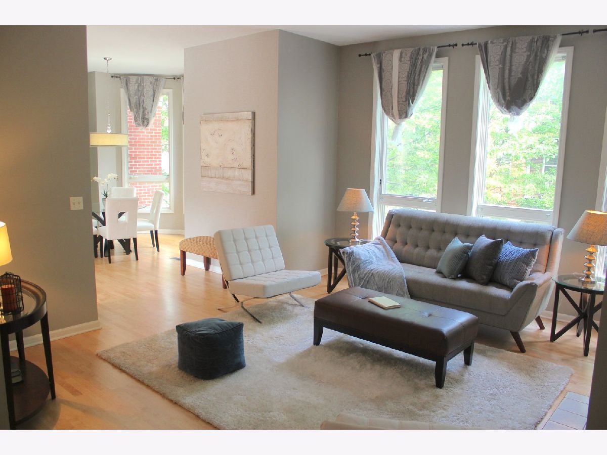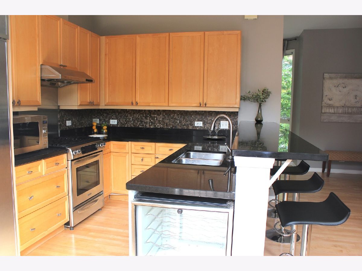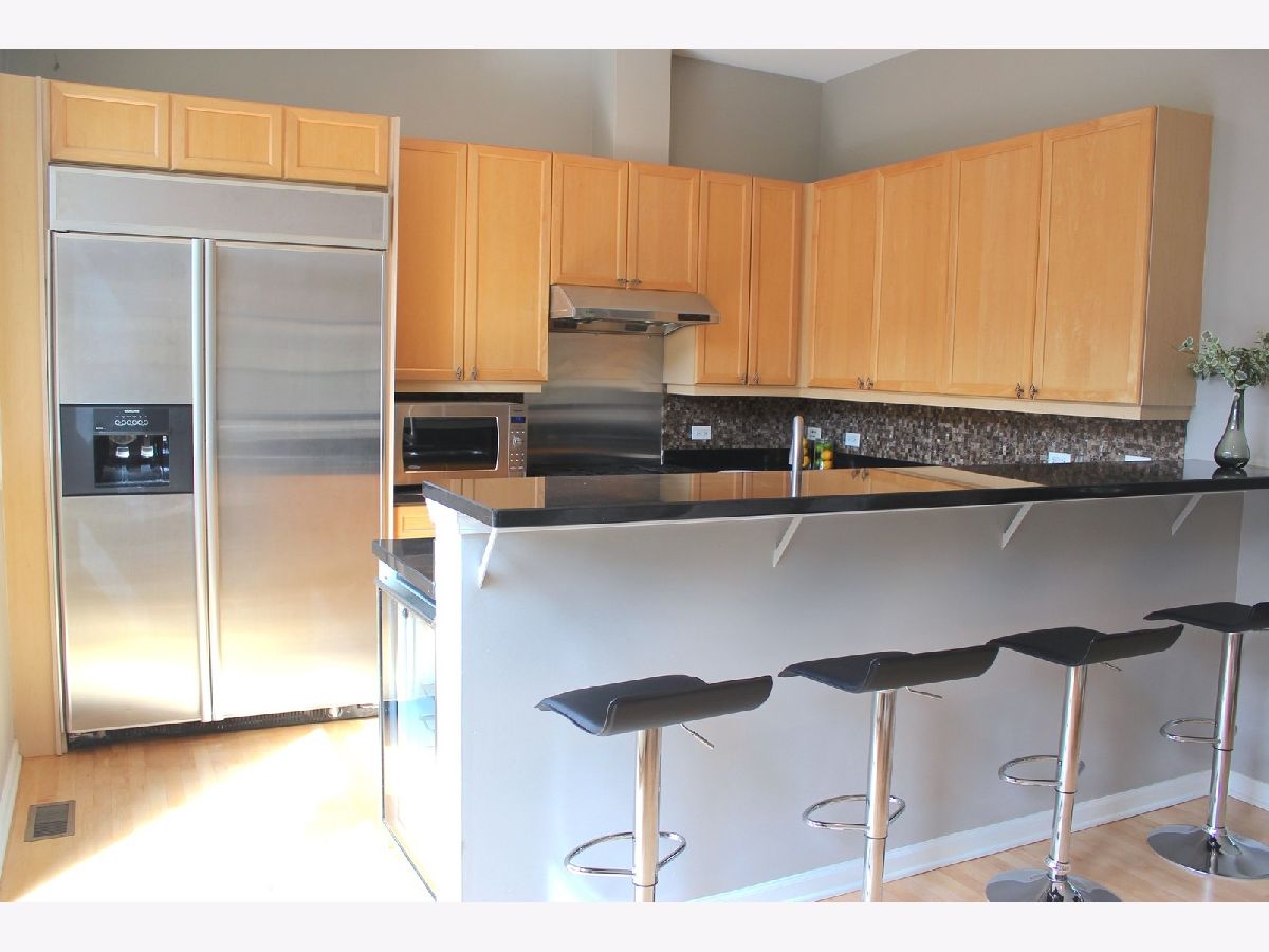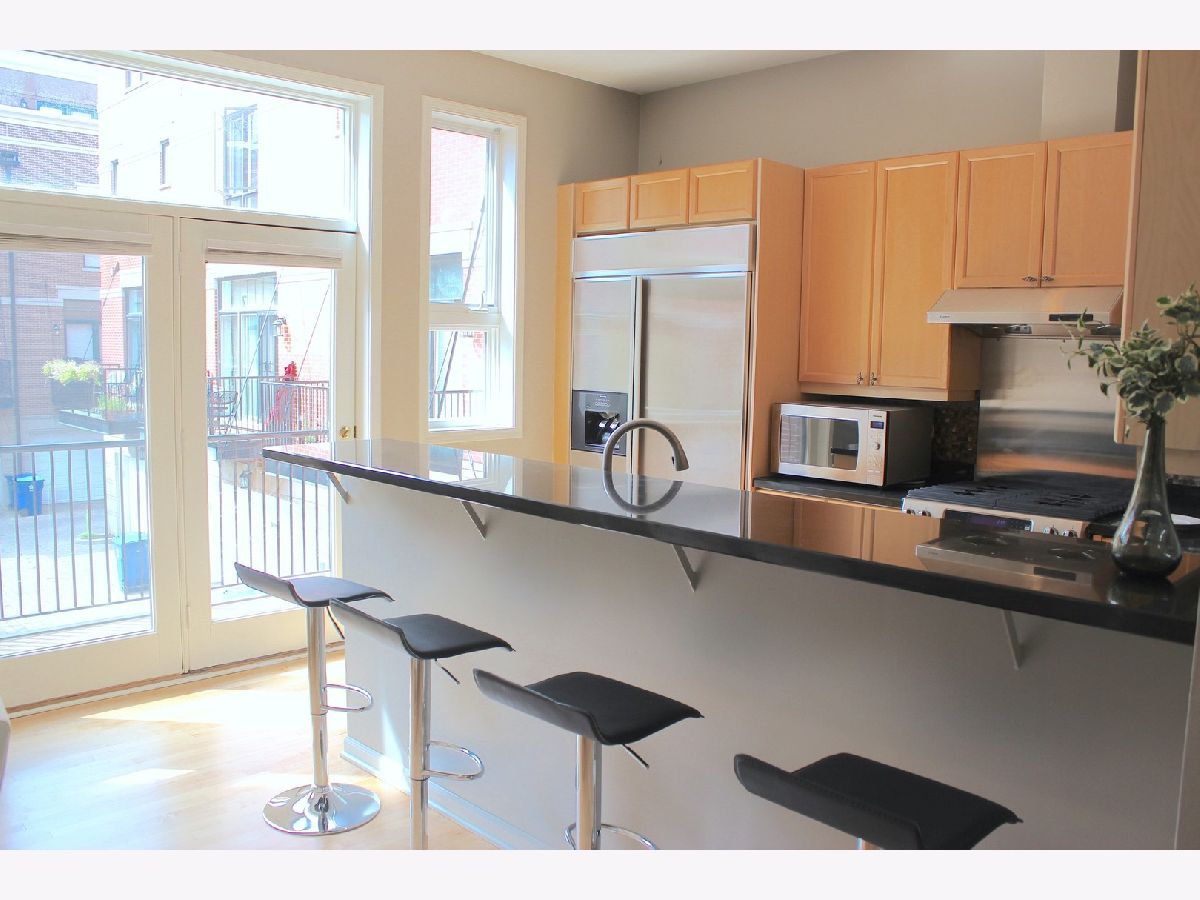 Amazing all brick Old Town 3,100 square foot four level townhome just a few blocks off Wells street! This sunny home features a wide open floor plan on the second floor. Recently refinished maple hardwood floors are tantalizing. Professional stainless appliances, granite kitchen with breakfast bar overhang for multiple chairs. Eat in dining area. Master bedroom with large walk in closet and large master bath with double bowl vanity, shower and separate tub. Second bedroom with ensuite bath. Top floor has huge rec area/tv room, 3rd bedroom, walk in, and full bath. Two large balconies- one off kitchen for grilling overlooking cozy courtyard , and one off rec room on top floor with fantastic city views. 10 star location in townhome complex steps from the best restaurants, shops, and transportation. Strip center 100 steps away features Jewel, Panera and Target 3 blocks too. Oversized attached 2 car garage is perfect for cars and storage. Seconds to train lines. No showings til 5/1.