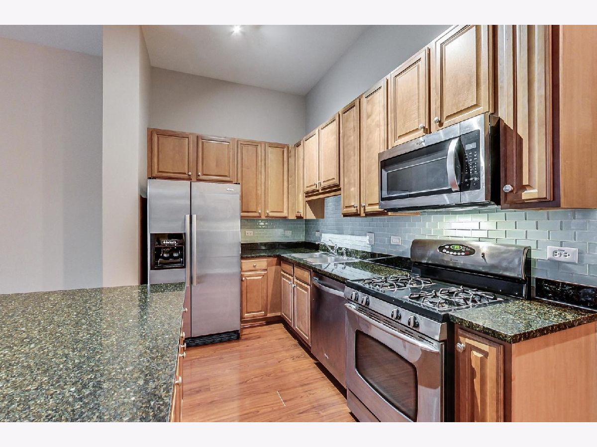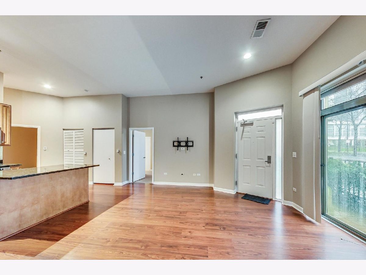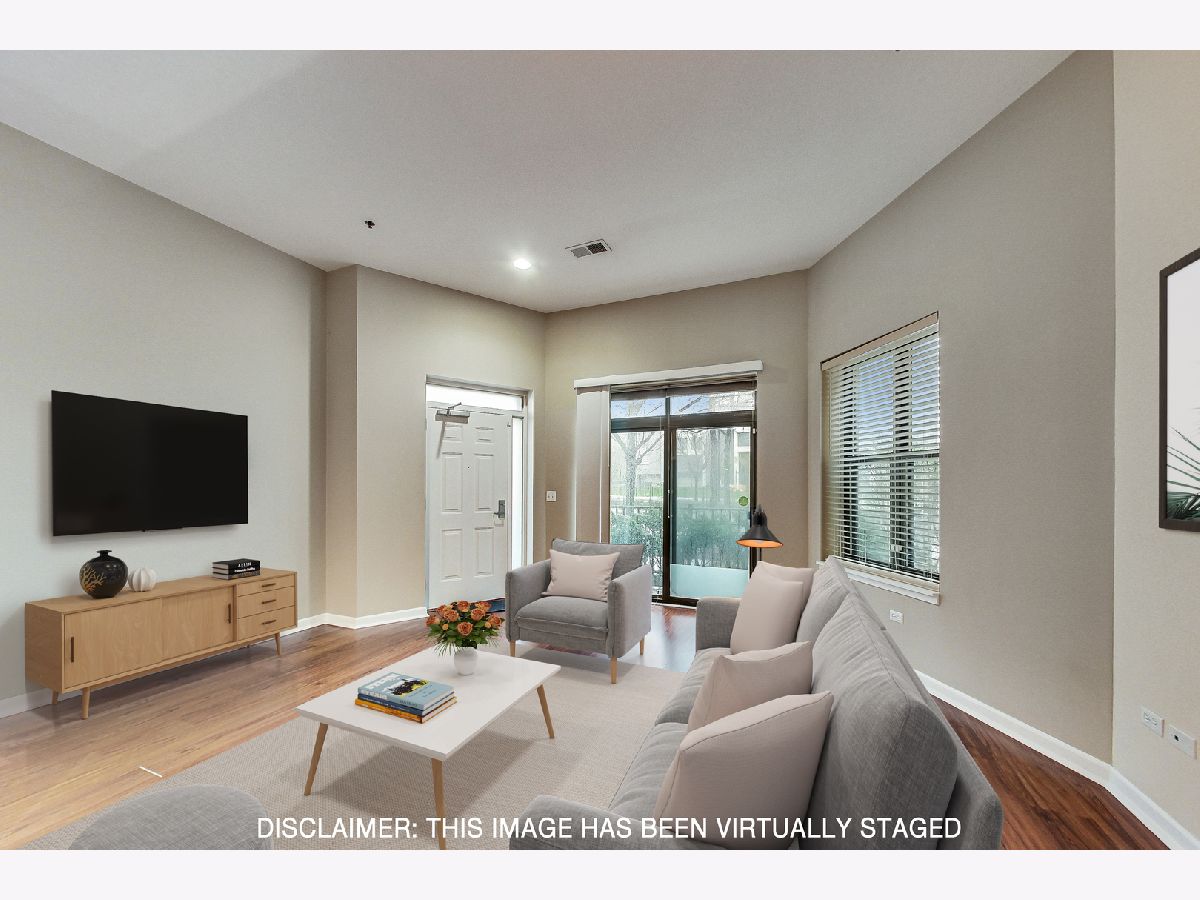 Welcome to this beautiful, sun-drenched first-floor 1 bedroom, 1.5 bath condo with private entrance and fenced-in brick patio located in the South Loop. Combined dining and kitchen area with high ceilings, hardwood floors, maple cabinets, stainless steel appliances, granite countertops, and a breakfast/cooking island. Huge primary bedroom with two closets, ensuite bathroom with double vanity, soaking tub, and separate walk-in shower. Large den with French doors that can be used as a nursery, office, walk-in closet or workout area. New in-unit washer and dryer and window treatments. This lovely home includes a private-deeded parking space with the price, additional extra storage, bike storage space, and communal fitness center and sundeck. Location is amazing: walking distance to public transportation, restaurants, grocery stores, Museum Campus, Grant Park, and Lake Michigan.