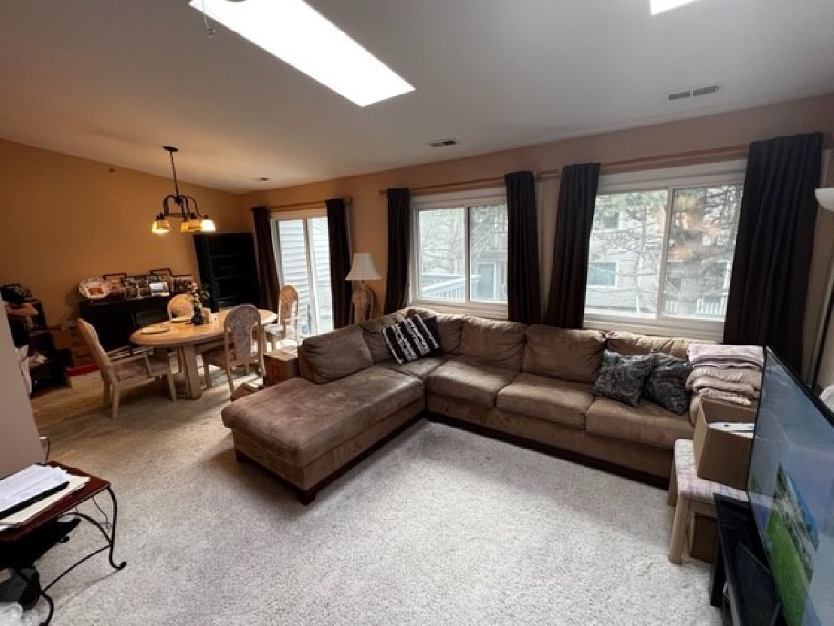 Available 8/1/23. **STEVENSON HIGH SCHOOL** Bright & spacious top floor condo for RENT in Buffalo Grove's popular Hidden Lake. Subdivision offers nice sidewalks & serene ponds. One car garage, plus parking for second car in driveway. Eat-in Kitchen recently remodeled with all stainless appliances & pantry. Full-size, in-unit washer/dryer. Large Living/Dining rooms offer skylights, direct access to private balcony, plus living room features gas-burning fireplace! New updates in-process and ready for tenant on 8/1 include hard surface flooring throughout (looks like hard wood), new vanities & light fixtures in both bathrooms, hall bath with new tile & all rooms freshly painted. Two large bedrooms, primary bedroom fits king and second bedroom easily fits queen. Owners are experienced landlords and live nearby. 1 dog ok w/25 Lb weigh limit & no smoking/vaping of any kind.