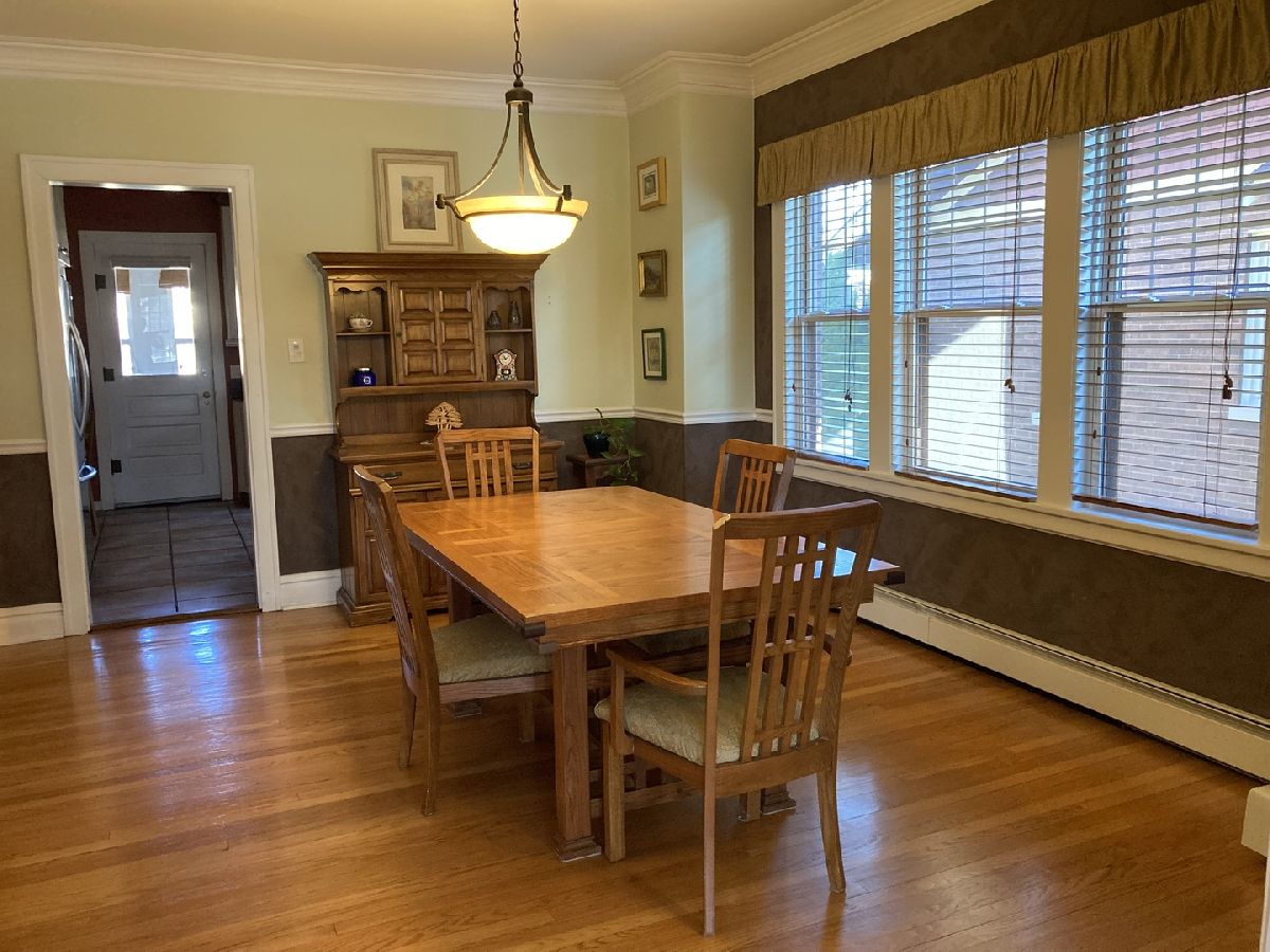 Rented fully furnished for convenience this Classic brick bungalow in Silk Stocking subdivision. Nicely updated, move in ready, 2 bedrooms, 2 full baths (all on main level), finished basement for entertaining; Zoned heat, C/A, Brick 2 car garage. Close to schools, downtown, restaurants, shopping and health clubs. Excellent library, community center and local theater. Easy walk to Metra and bus. Perfect combination of suburban living and city life.