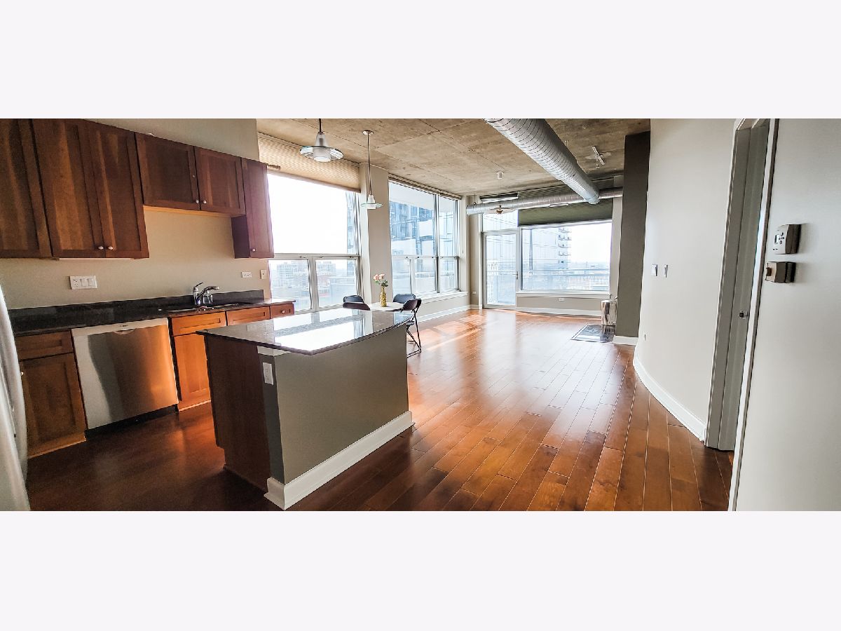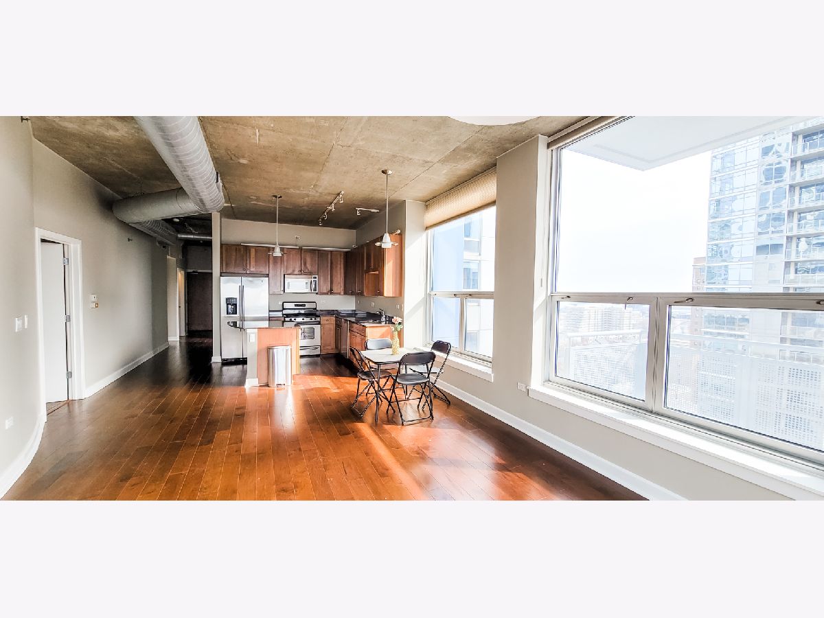 Beautiful 2BD + Den Southloop Loft in a highly sought out corner tier with wrap around private balcony, open concept kitchen and dining room, hardwood floors, new carpeting in bedrooms, lots of natural light throughout space. Kitchen has SS appliances, granite counter tops, living room has 10' floor to ceiling windows. Parking is available in heated garage space for an additional $250 a month. No pets allowed and no smoking in unit. 24hr security, doorstaff and property manager on site! Great location near CTA buses, Jewel, Trader Joe's, Starbucks and many restaurants. Walk to lake and parks!