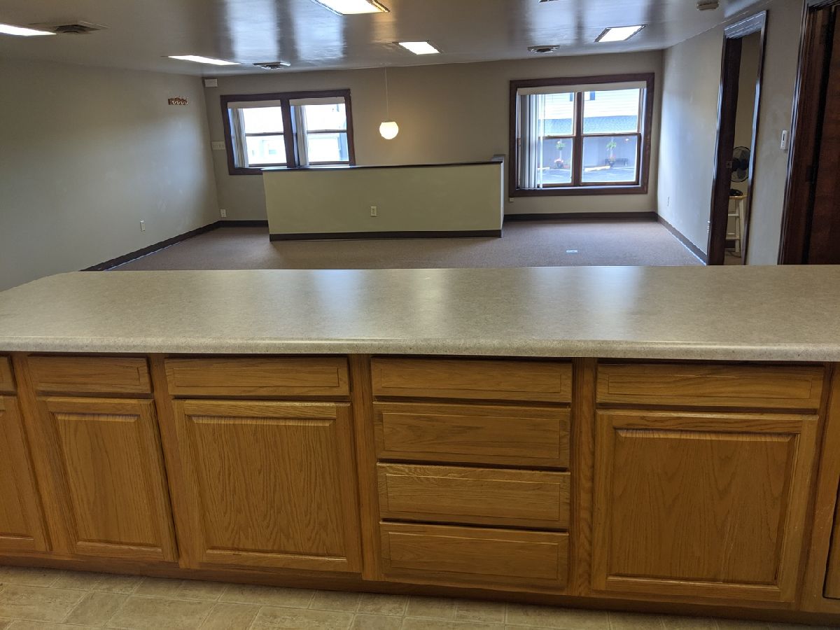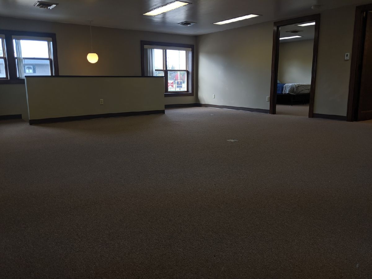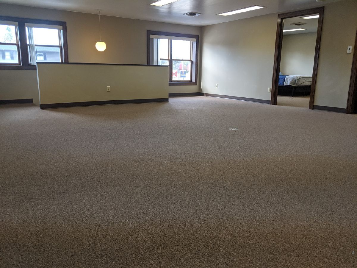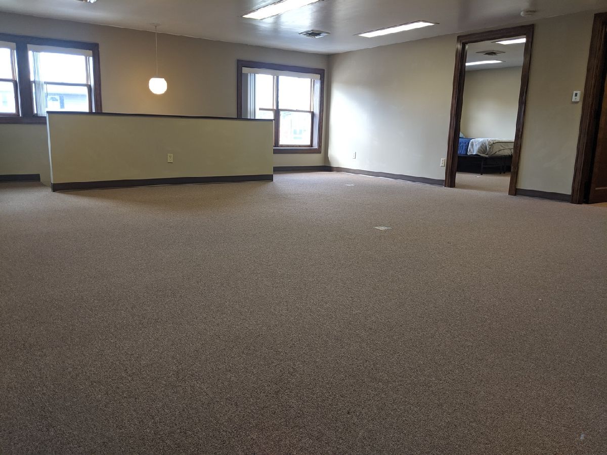 Upstairs very spacious 1,000 sqft apartment in convenient location with off street parking included. Living room is 24' x 20'. Kitchen with breakfast bar and dining area is 20' x 11' with vinyl flooring. Bedroom 1 is 15' x 12'. Bedroom 2 is 12' x 10'. Full bath and in-unit laundry.