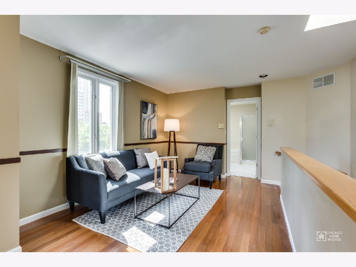Highly desirable 3 bed / 2 bath tri-level townhouse with hardwood flooring throughout in Dearborn Park II! Open concept first floor features a family room with corner fireplace, separate dining area & granite/SS kitchen great for entertaining. Beautifully landscaped outdoor living space includes a front patio shaded by mature Eastern Redbuds and a spacious gated back terrace off the kitchen perfect for grilling. The second floor features two bedrooms with ample closet space, a full bath with upgraded cabinets and granite vanity. The third floor is a wide open master suite with separate sitting area, large master bath featuring a separate tub and shower, and large walk-in closet. Multiple skylights bring in lots of natural light. One outdoor assigned parking space included in the price. Walking distance to train, shopping, museum, parks, and top-rated South Loop Elementary!