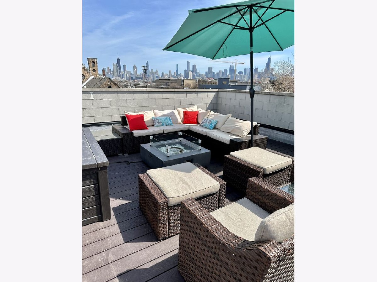 Top floor 2 bed, 2 bath unit featuring incredible private rooftop deck with sweeping skyline views. This 3rd-floor penthouse comes with 11-foot ceilings, large windows with neighborhood views and a flexible floorplan with dedicated workspace area. The extra bright living room with fireplace opens to a modern chef's kitchen with breakfast bar seating and full stainless steel appliance package. Primary bedroom has corner exposure and luxurious primary bath with jetted soaking tub & large shower. The 2nd bedroom includes room for queen bed and adjacent to full hallway bathroom. Enjoy premier outdoor space with a balcony off the primary bedroom and massive 1,500 sqft private rooftop and show-stopping skyline views. One garage space included in the rent! Located on the border of Wicker Park and West Town, just steps to multiple parks, transit, groceries, and all the shopping/dining/nightlife options on Division Street & Milwaukee avenue. No security deposit. $750 non refundable move-in fee to landlord. Pets under 50lbs ok. Must be approved by landlord. No aggressive breeds $25/mo additional pet rent per pet if approved. Available 4/1!