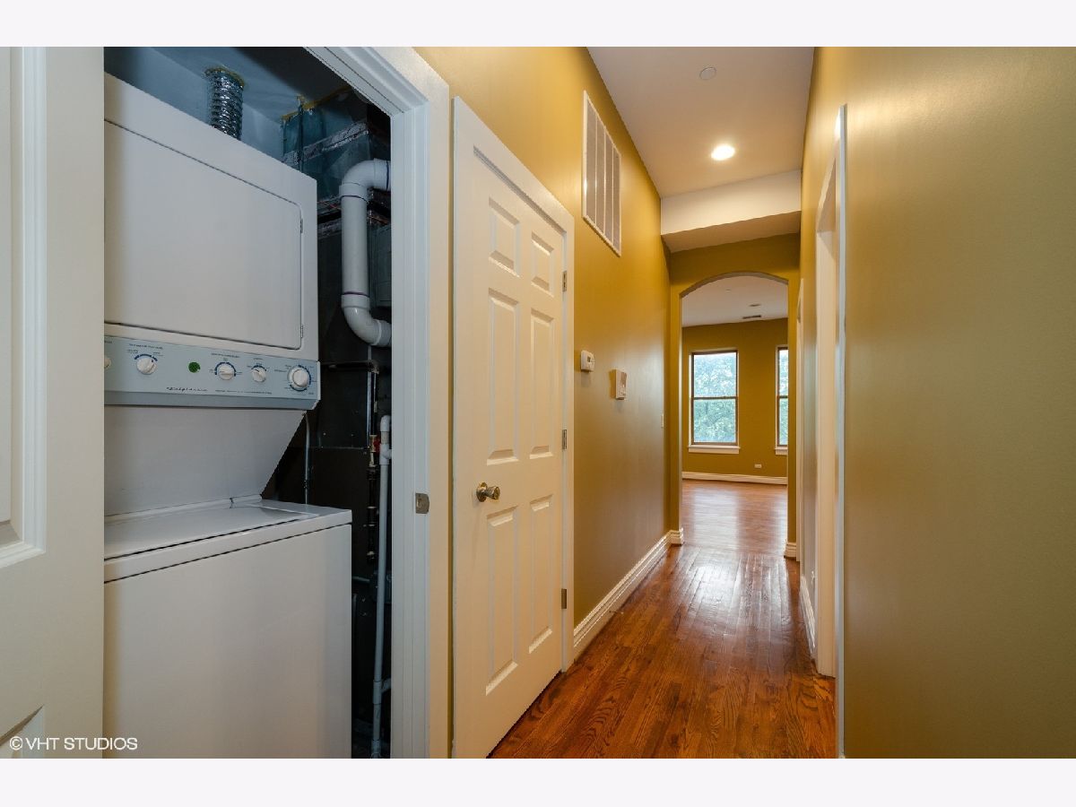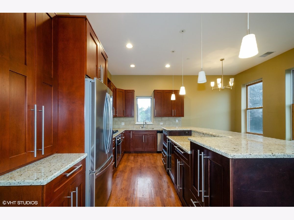 Stunning, spacious two bedroom, two bath condo with open floor plan, ten foot ceilings, walk-in closets, and 7 foot windows providing abundant natural light. A stylish unit boasting impressive finishes throughout, including hardwood flooring, furniture grade cabinetry, stone countertops and stainless steel appliances. This flexible living space includes a gas start fireplace, in-unit laundry, east facing deck, and detached one car garage, all within walking distance to the Metra and Howard Street El.