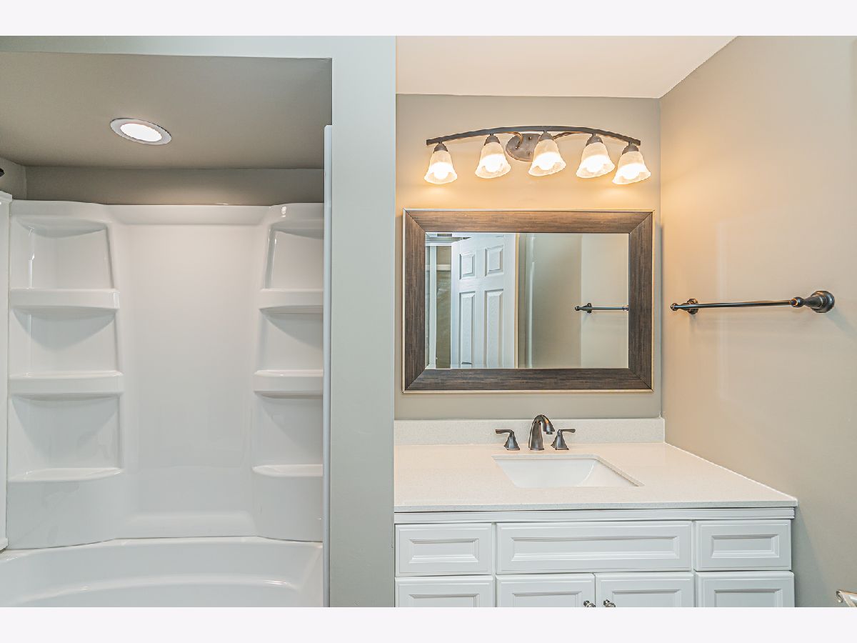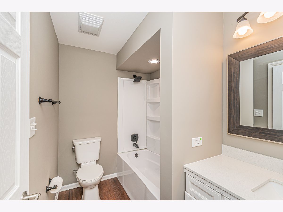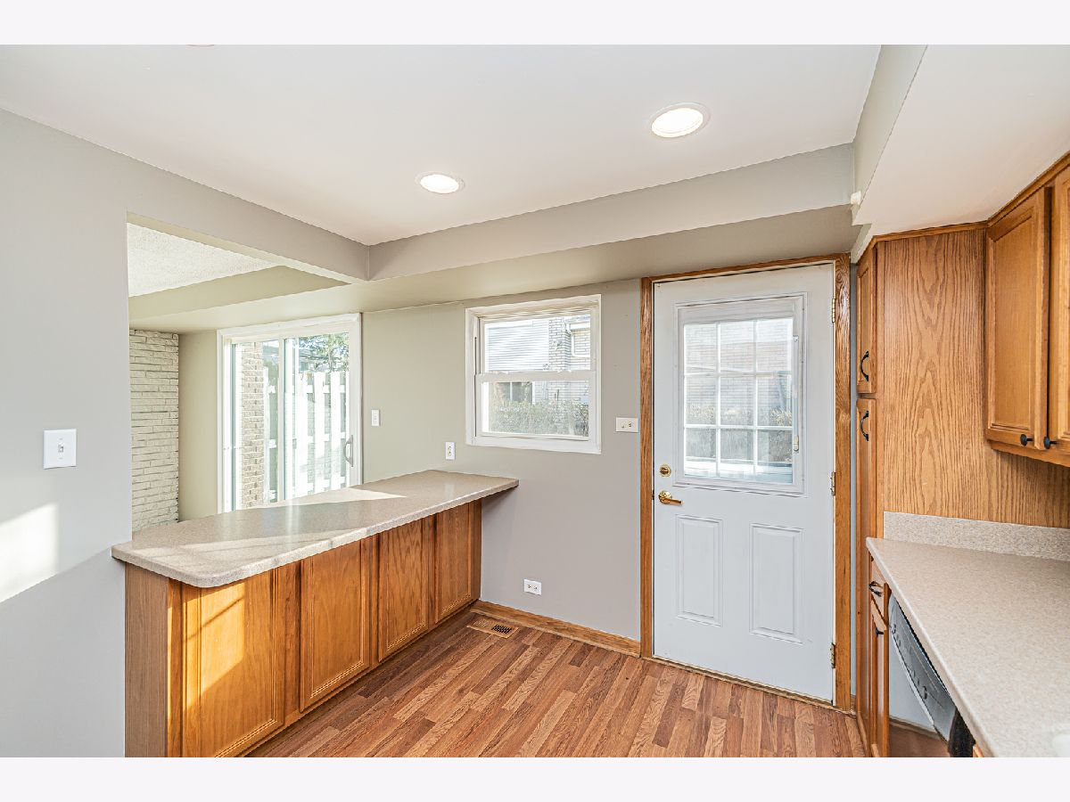 JUST LISTED!! This 3-bedroom, 1 1/2 Bath brick duplex end unit in the Sugarbrook subdivision has a single family house feeling. Many updates throughout in 2022. There is natural hardwood flooring throughout most of the house, Painted with neutral colors, and Cathedral ceiling in the sun-filled living room. Go up a few stairs to the second level where 3 spacious bedrooms are located. Renovated full bathroom offering new flooring, and vanity, with Moen and Pfister fixtures right off the three bedrooms. Newer windows exist throughout the home including new blinds and window shutters along with all-new 6-panel white doors and hardware. On the lower level is the dining room and an updated kitchen with Oak wood cabinets with Corian countertops. A renovated 1/2 bath with new vanity, flooring, and fixtures services the lower level. The spacious light-filled family room opens to the newer slider to the large concrete patio and yard. Plenty of storage exists in the unfinished basement where the laundry room and mechanicals are located with a Newer Washer & Newer Dryer. New Roof, New Water Heater. Driveway can hold 2 cars and there is street parking directly in front of the unit. Highly sought-after school districts including John Hersey High School. Available for a May 7th move-in date