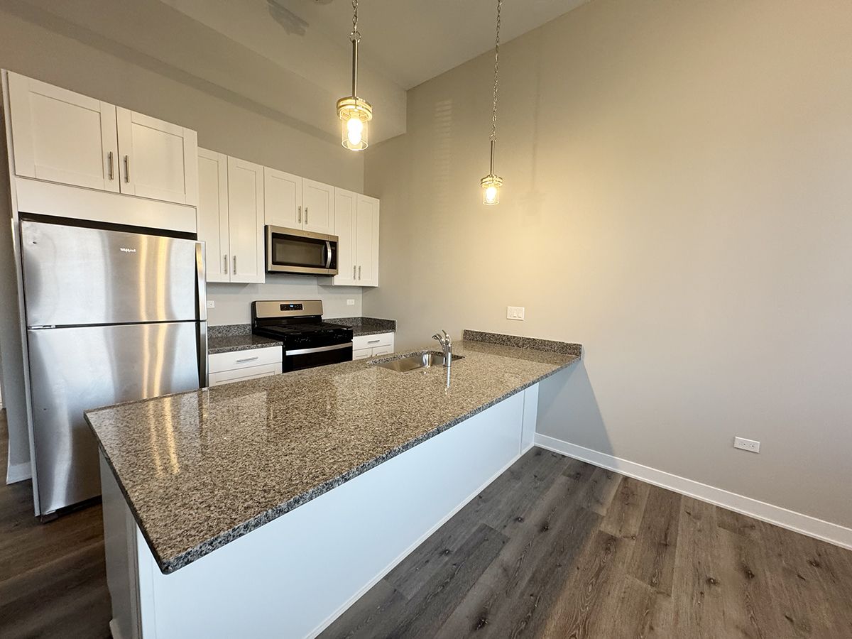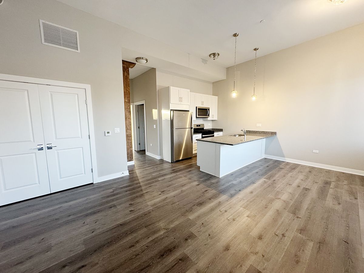 Make this charming apartment your new home! Step into your new home in this beautifully renovated historic building! This spacious 1-bedroom plus den unit boasts soaring ceilings that enhance the airy feel throughout. Enjoy cooking in your modern white kitchen featuring stunning granite counters, perfect for meal prep and entertaining. Convenience is key with a private laundry room right in your unit, plus ample parking for you and your guests. Located on the desirable east side of St. Charles, you'll have easy access to Route 64, Route 59, and all that the area has to offer. Don't miss your chance to live in this unique space applications are being accepted now!