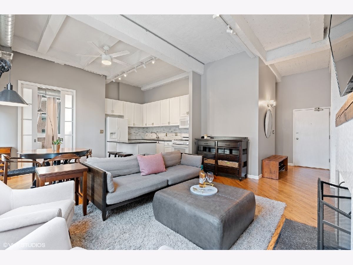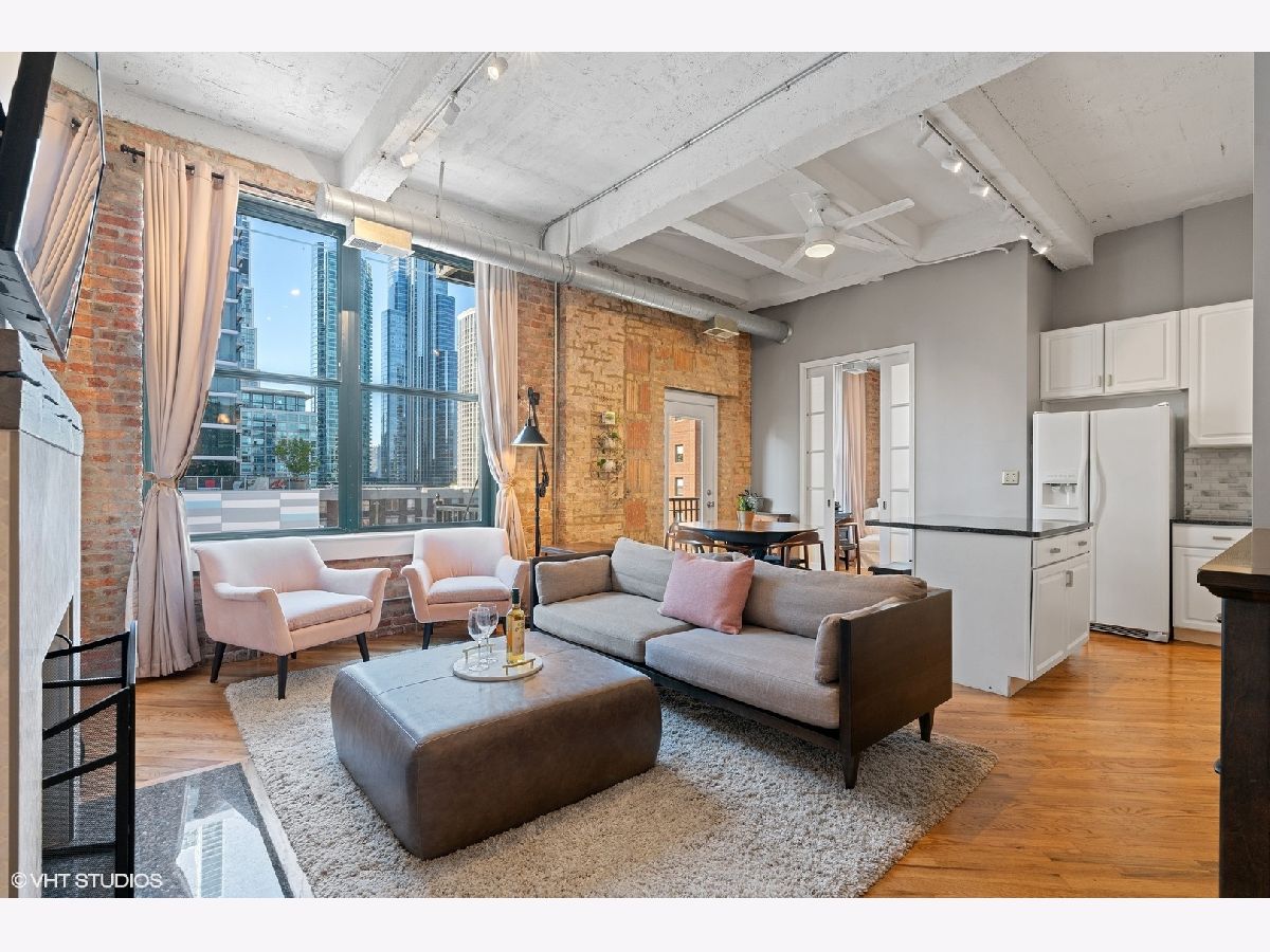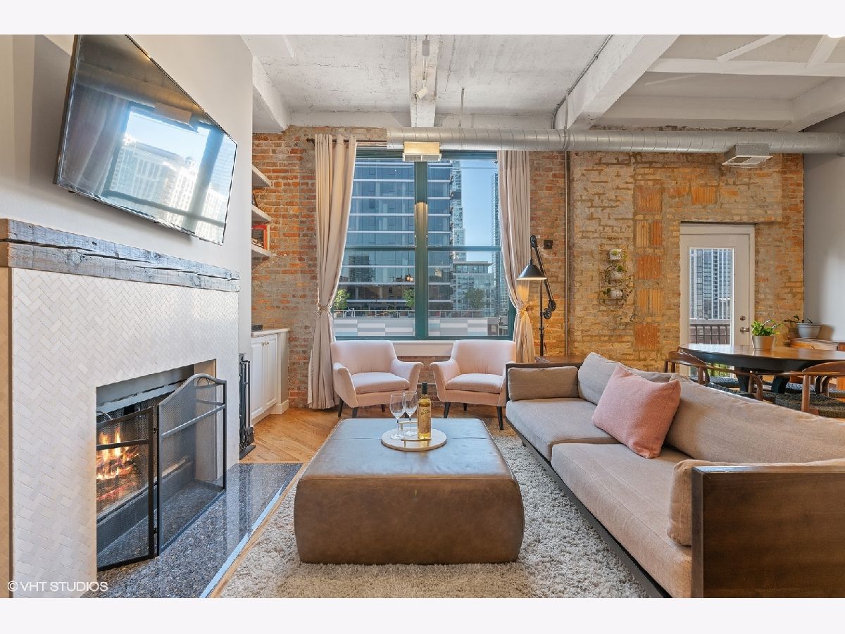 Welcome to the South Loop's HISTORIC Trevi Square Building! This beautiful 2 bed, 2 bath 1300sf loft is located in the NE corner of the building with a NEWLY renovated Kitchen including beautiful white cabinets, brass finishes and a granite island kitchen that opens up to the dining and living area. This expansive open concept living/dining is connected to an oversized private balcony with super views. A reclaimed wood mantle and wood burning fireplace with built-ins in the living room, creates a perfect spot for gatherings, romantic dinners and your cozy nights in. Beautiful hardwood floors throughout, 11.5ft concrete ceilings, STUNNING exposed brick, massive windows that allow so much natural light to shine through. The enclosed bedrooms are an ideal split floor plan. The MASSIVE primary bedroom has a great size WIC, massive windows and spa inspired ensuite with a stand-up shower. The loft-style secondary bedroom has large windows and an ensuite with a jacuzzi tub! In-unit laundry and storage, brand new water heater, HVAC is only 2 years old and an assigned parking spot in a gated area INCLUDED! PLUS Walking distance to restaurants, shops, Grocery stores, Target, Movie Theater, Lake/Lakefront, Grant and Millennium Parks! This home is sure to catch your eye, so act FAST, before it's too late!