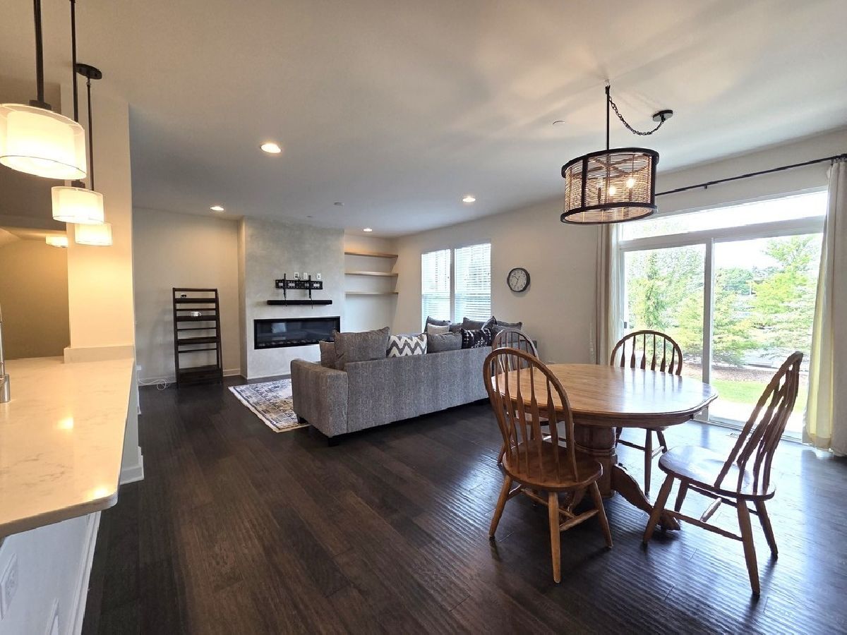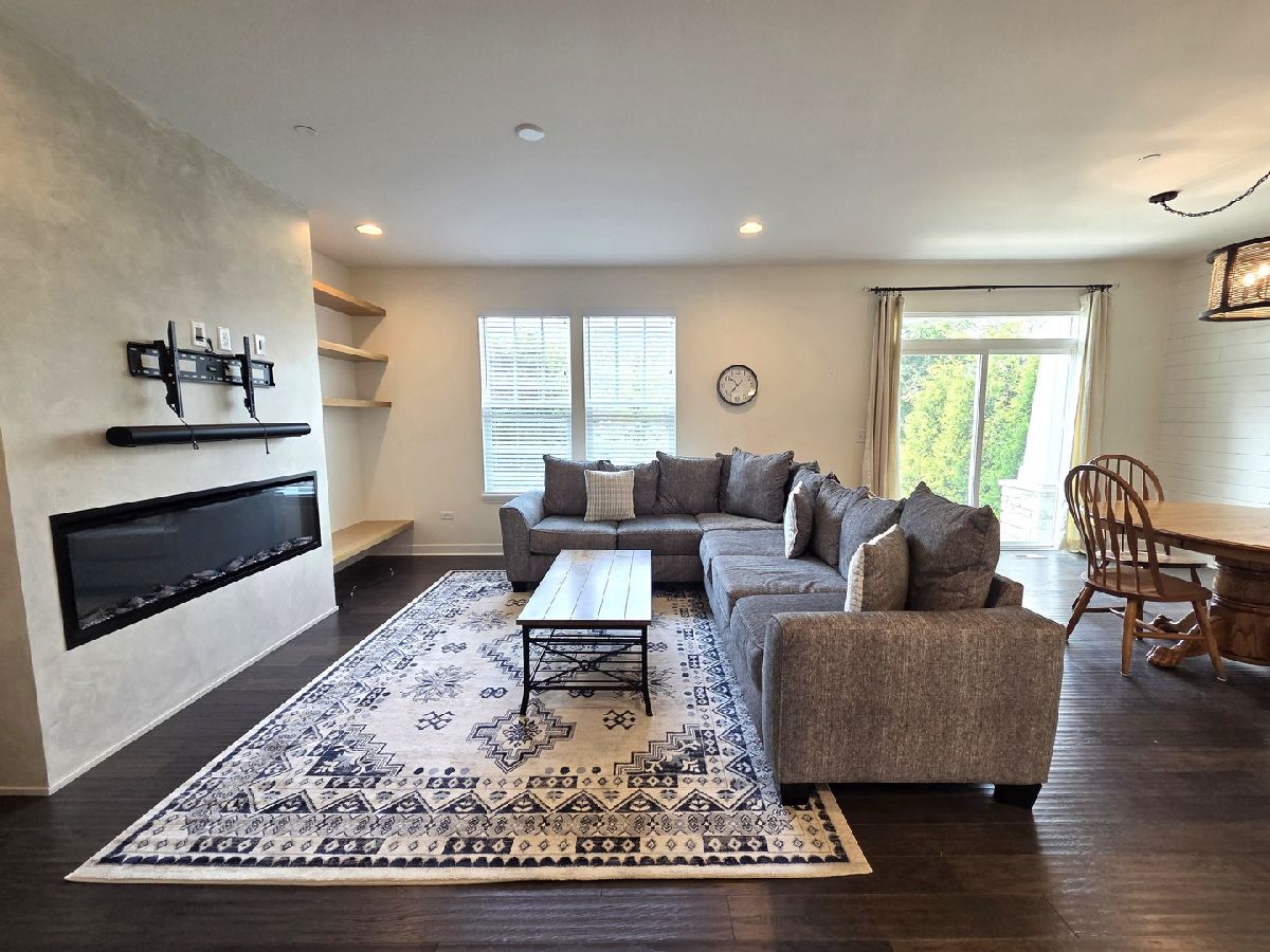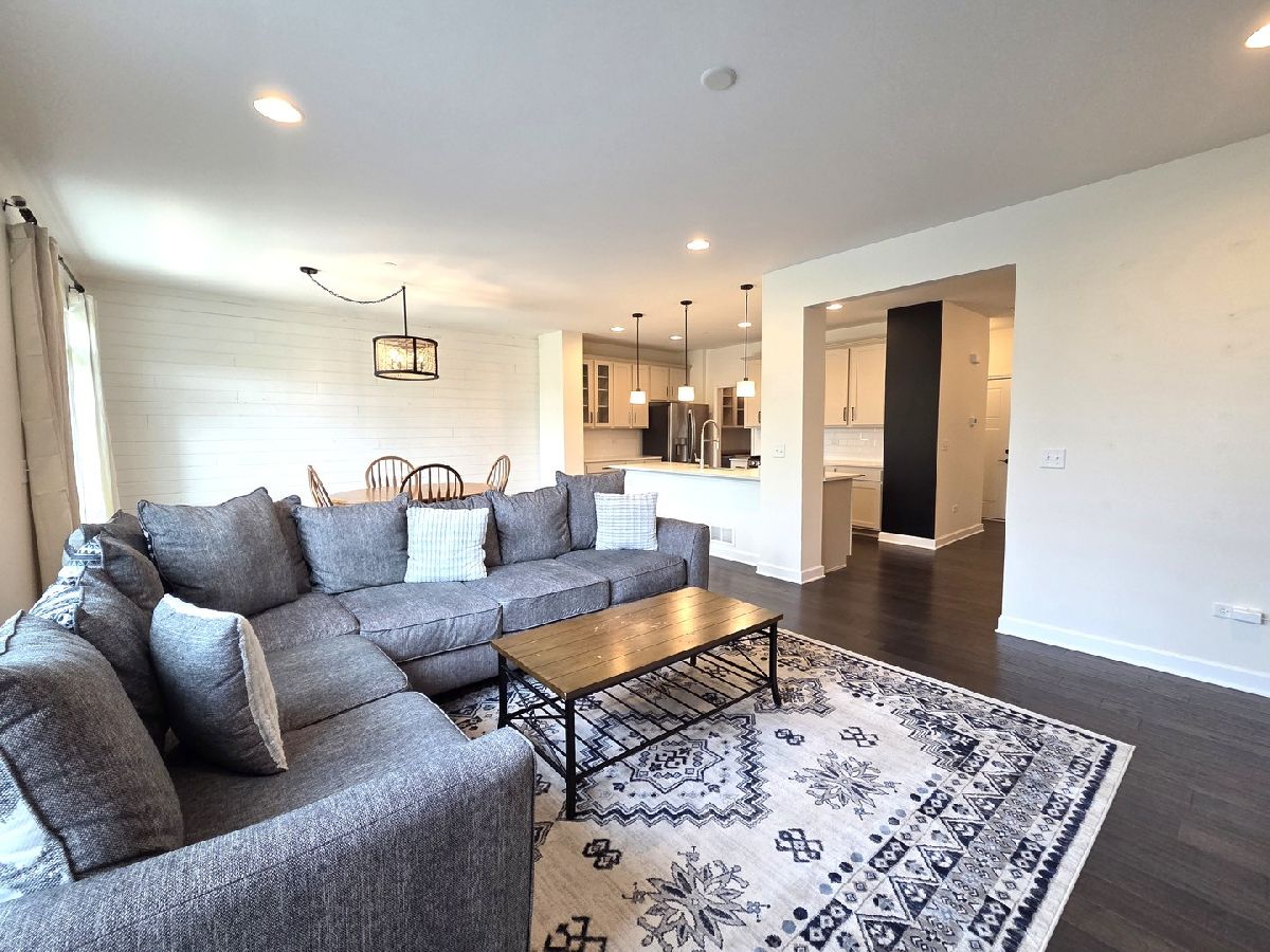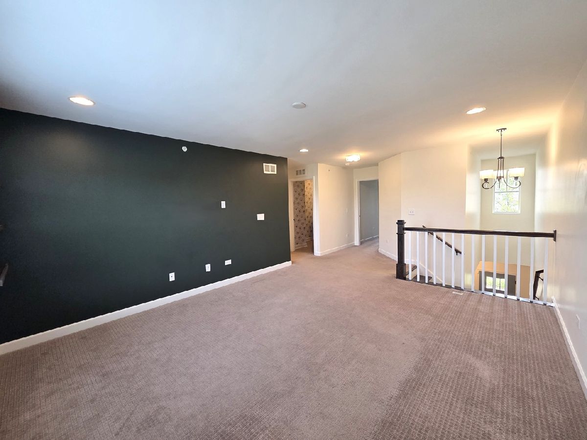 Welcome to this stunning 2-story townhome that perfectly blends thoughtful design with upscale finishes. From the moment you step inside, you'll be greeted by gleaming hardwood floors and a modern color palette that flows throughout the home. The kitchen is a true showstopper, featuring white cabinetry, quartz countertops, stainless steel appliances, soft-close drawers, and a newly upgraded custom pantry complete with a beverage fridge. The spacious island with breakfast bar seating opens seamlessly into the living and dining areas-perfect for everyday living and effortless entertaining. The living room is anchored by a custom-built electric fireplace with built-in shelving, adding warmth and style to the heart of the home. Just off the dining area, sliding glass doors lead to your private patio, creating the ideal space for outdoor enjoyment. A well-appointed powder room completes the main level. Upstairs, a large den offers flexible living-perfect as a second family room, home office, or playroom. The primary suite features a tray ceiling, chic board and batten accent wall, walk-in closet, and a luxurious en-suite bath. A second full bathroom and convenient second-floor laundry room round out the upper level. The deep pour basement provides abundant and clean storage. This rare opportunity in Brentwood combines prime location with refined comfort-don't miss your chance to call it home! No Pets. No Smoking. Immediate Occupancy.
