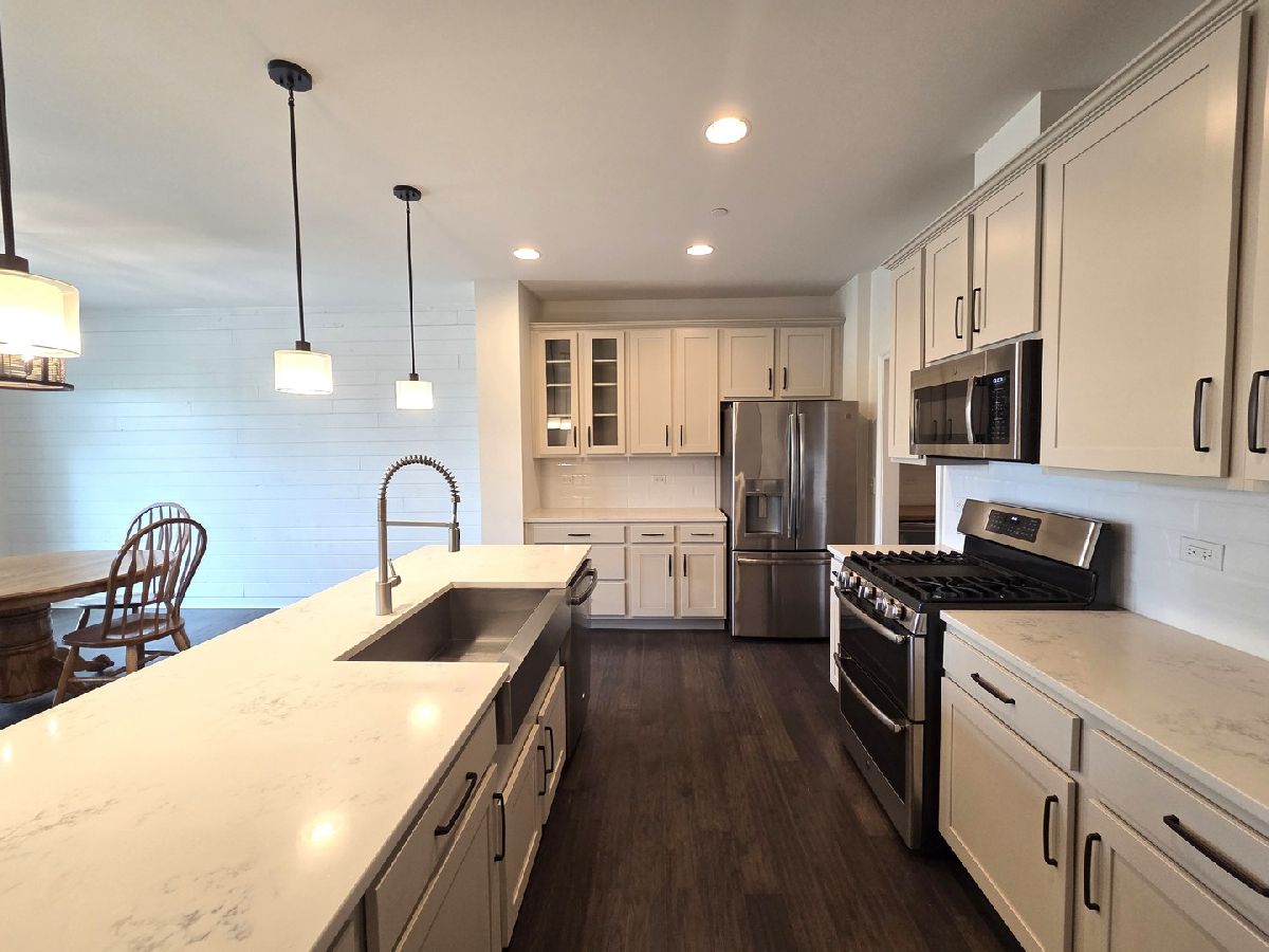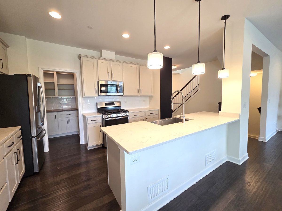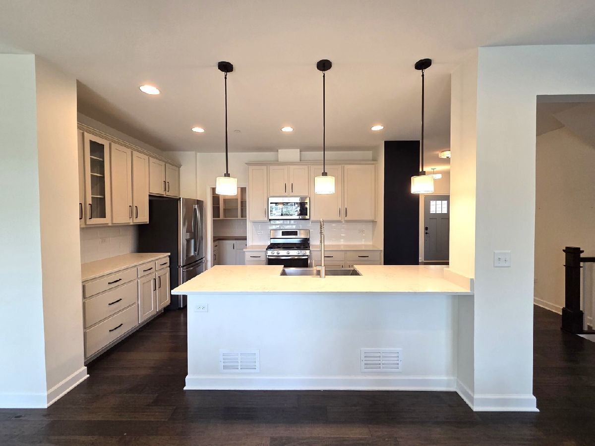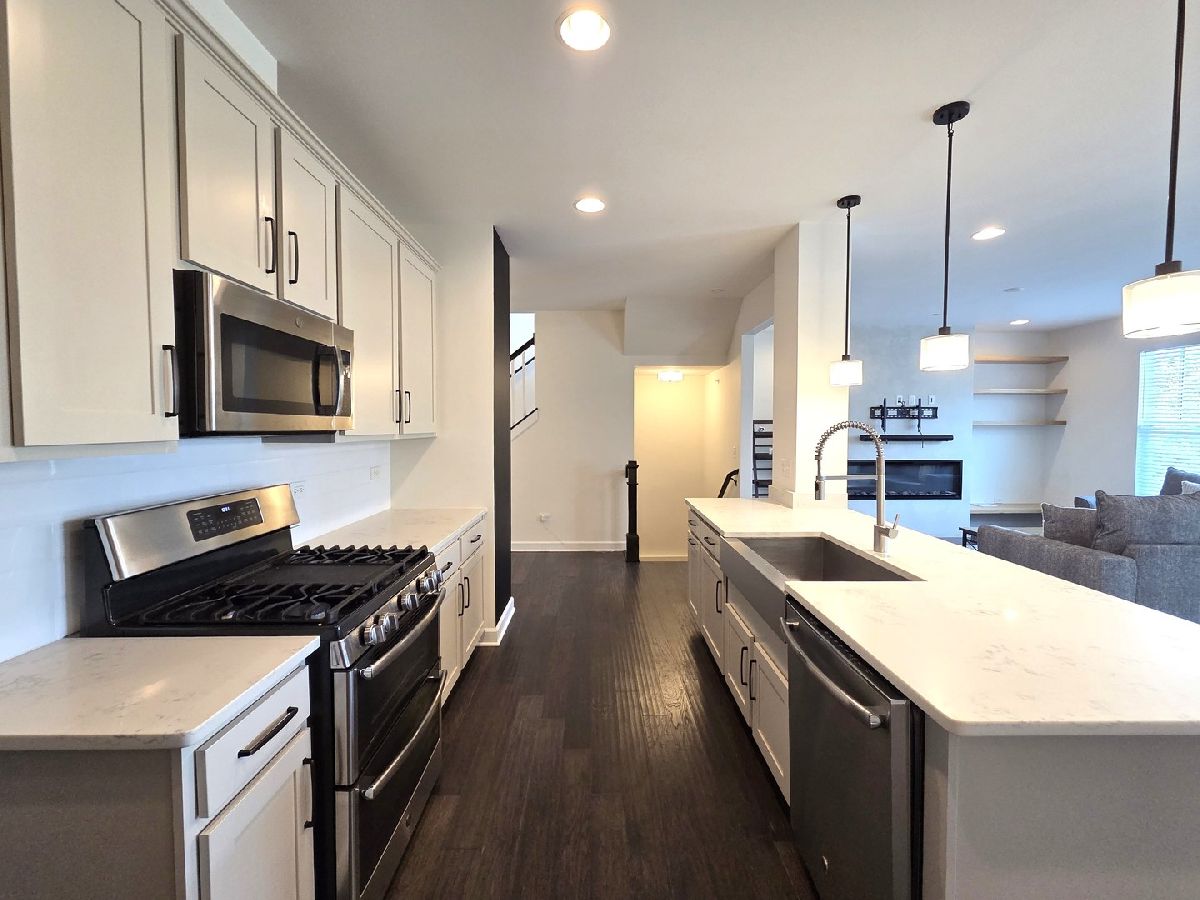 Welcome to this stunning 2-story townhome that perfectly blends thoughtful design with upscale finishes. From the moment you step inside, you'll be greeted by gleaming hardwood floors and a modern color palette that flows throughout the home. The kitchen is a true showstopper, featuring white cabinetry, quartz countertops, stainless steel appliances, soft-close drawers, and a newly upgraded custom pantry complete with a beverage fridge. The spacious island with breakfast bar seating opens seamlessly into the living and dining areas-perfect for everyday living and effortless entertaining. The living room is anchored by a custom-built electric fireplace with built-in shelving, adding warmth and style to the heart of the home. Just off the dining area, sliding glass doors lead to your private patio, creating the ideal space for outdoor enjoyment. A well-appointed powder room completes the main level. Upstairs, a large den offers flexible living-perfect as a second family room, home office, or playroom. The primary suite features a tray ceiling, chic board and batten accent wall, walk-in closet, and a luxurious en-suite bath. A second full bathroom and convenient second-floor laundry room round out the upper level. The deep pour basement provides abundant and clean storage. This rare opportunity in Brentwood combines prime location with refined comfort-don't miss your chance to call it home! No Pets. No Smoking. Immediate Occupancy.