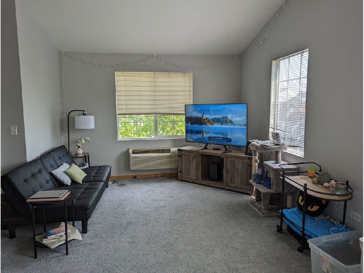 Welcome to this light and bright unit with all the charm to call home. Walk up to the upper floor from your private entrance to a lit up staircase. Newer Carpet.The Open Floor plan with Soaring ceilings lets you breathe. Combined Living dining with tons of windows and a Balcony. Cute kitchen with lots of storage and counter space. In Unit Washer Dryer. Huge Master with vaulted ceiling, massive Walk in Closet and full bathroom. Second bedroom of almost equal size and equally huge WIC and a second full bath. We are not done yet Vaulted roofline garage space with remote and additional parking space in front of the unit. Water Included in rent. All You pay is electricity. Close to I88. Outlet mall. Subdiv has walking trails.