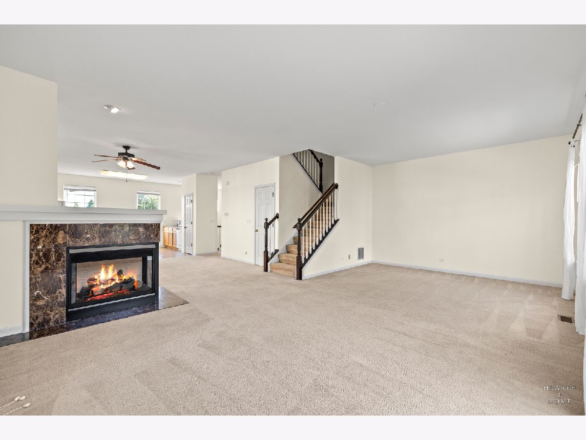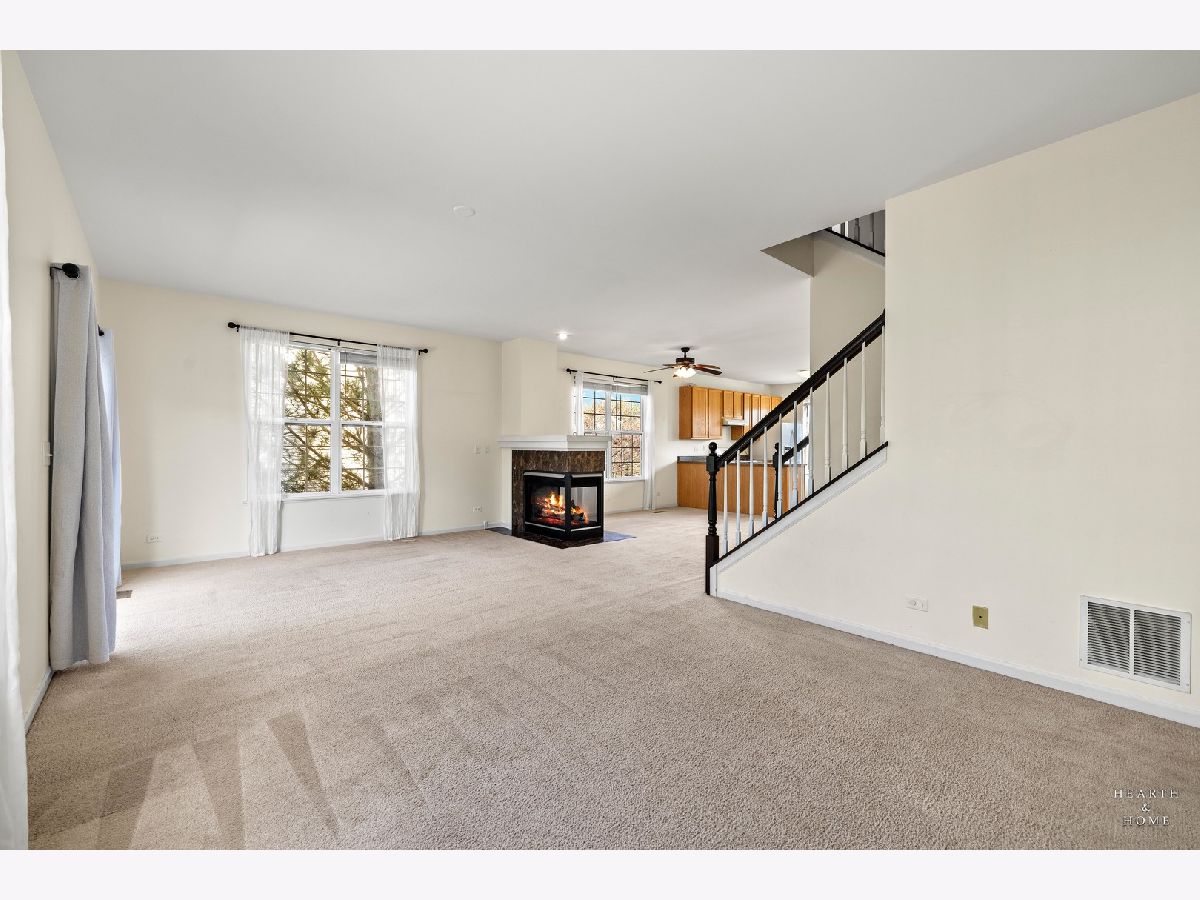 Don't miss the opportunity to live in this beautiful end-unit townhome located across from a gorgeous green belt and park in Gilberts Town Center! The main level features an open floor plan with 9-foot ceilings, a fireplace, and lots of natural light shining throughout, a perfect spot for entertaining friends and family. The kitchen has ample cabinets, countertop space, and room to add a portable island. A nice-sized deck is located off the living room. Three bedrooms and two full baths upstairs; the primary has a tray ceiling, walk-in closet, and en-suite with a separate bath and shower. English basement with a bonus room with a door, and the laundry has a washer, dryer, a slop sink, and a space for coats and shoes. A generous two-car garage will fit your vehicles and storage. Room on the driveway for two cars and ample parking across the street. Minutes away from shopping and restaurants on Randall, and convenient access to I-90. Short drive to the Metra and Pace. Credit & background will be run thru mysmartmove, 3x's monthly rent income preferred. Ready for immediate occupancy.