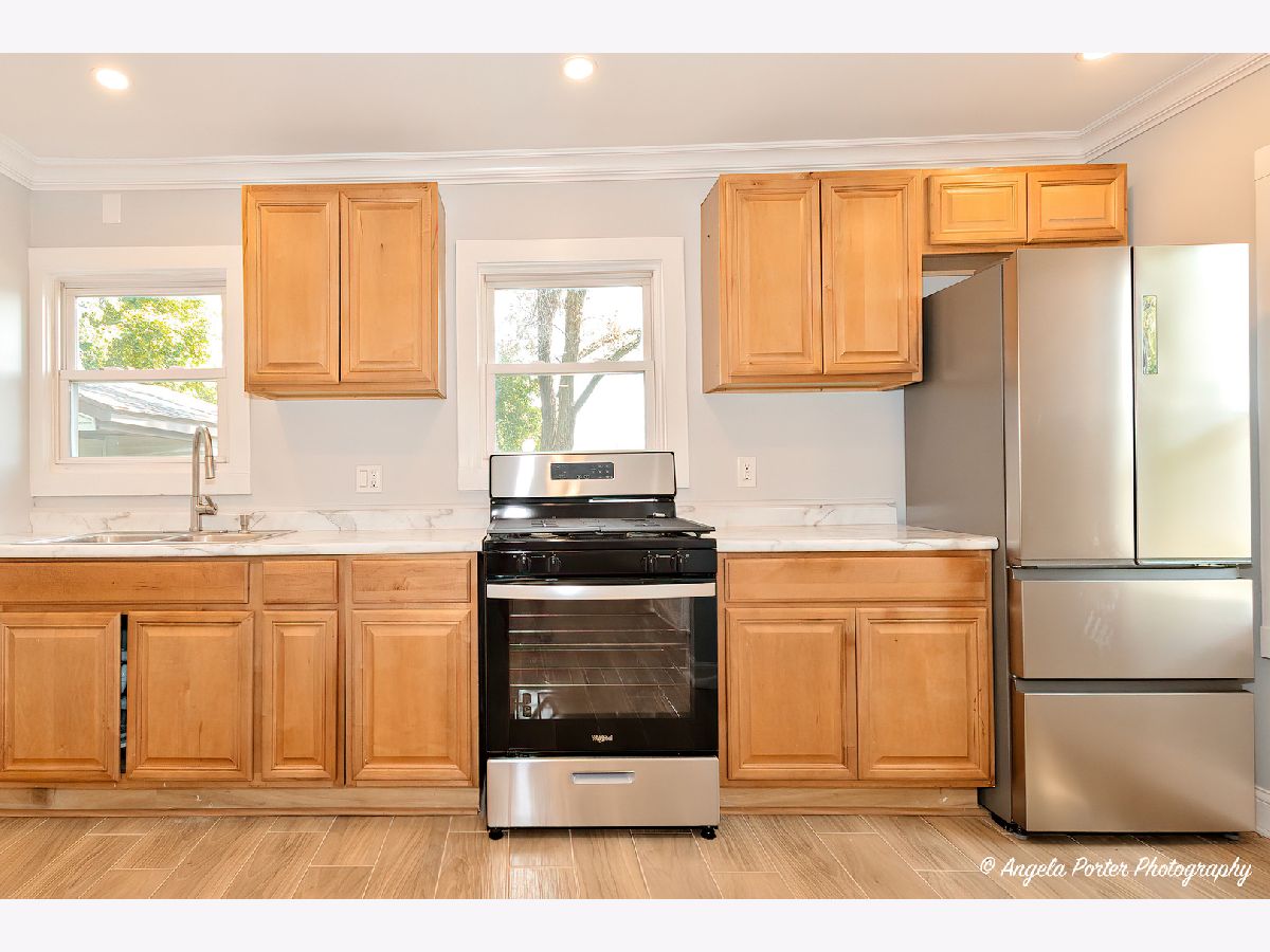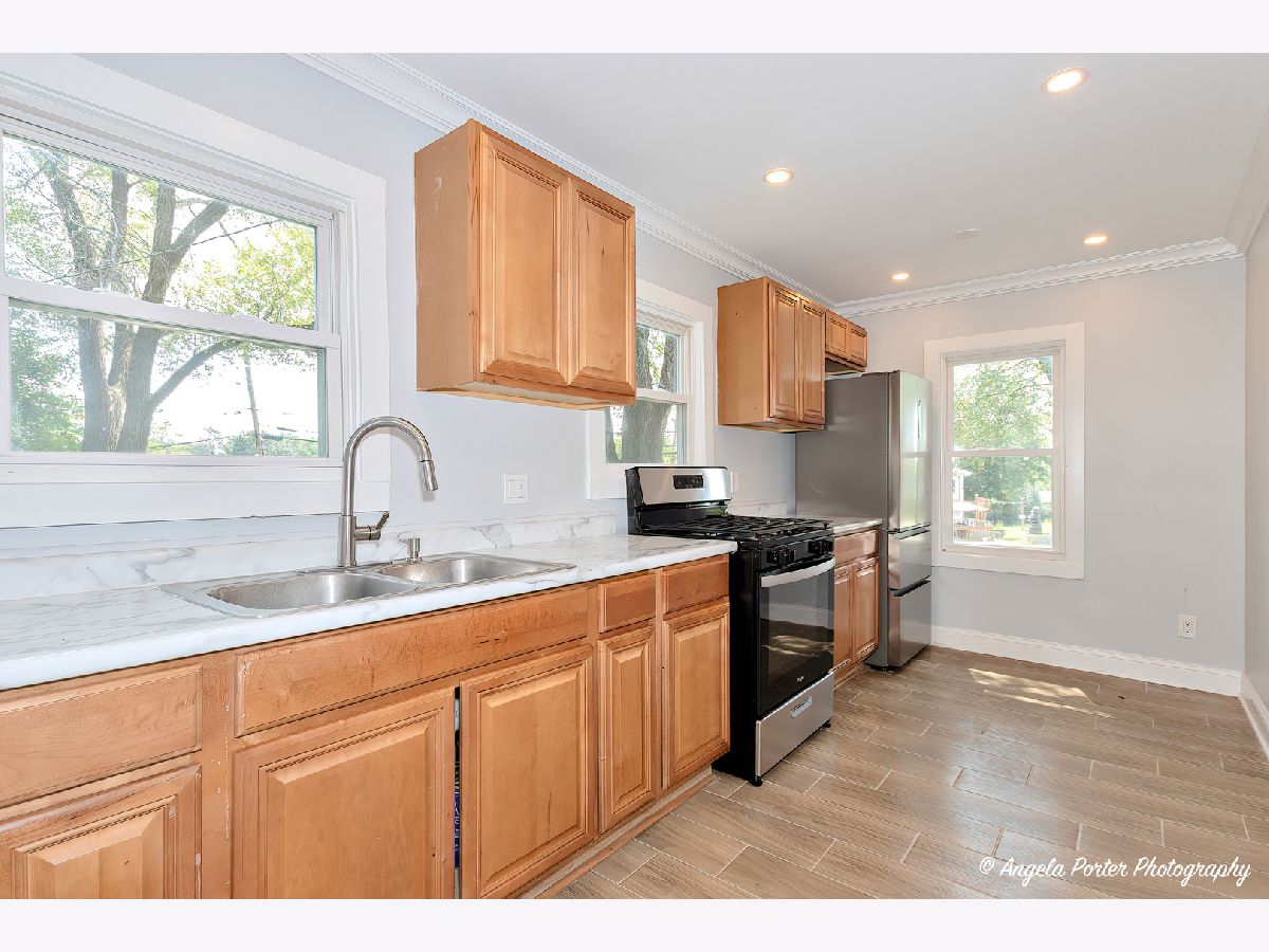 AVAILABLE JUNE 1. Welcome to this impeccably updated 3-bedroom home nestled on a desirable corner lot. Every inch of this house radiates quality and care, from the newer floors to the premium luxury moldings. Boasting fresh siding, contemporary doors, and an upgraded bathroom, this home seamlessly blends modern comforts with timeless character. Enjoy the comfort of a newer AC system, ensuring year-round coziness. Delight in the kitchen's updated features, setting the perfect backdrop for your culinary adventures. Detached oversized garage promises ample room for storage, projects, or parking. Prime Location: Located a leisurely stroll away from shopping, parks, and the Metra, everything you need is right at your fingertips. Indulge in the simplicity and elegance of ranch-style living with this adorable abode, where every update has been made with you in mind. Schedule your showing today-this one won't last long!