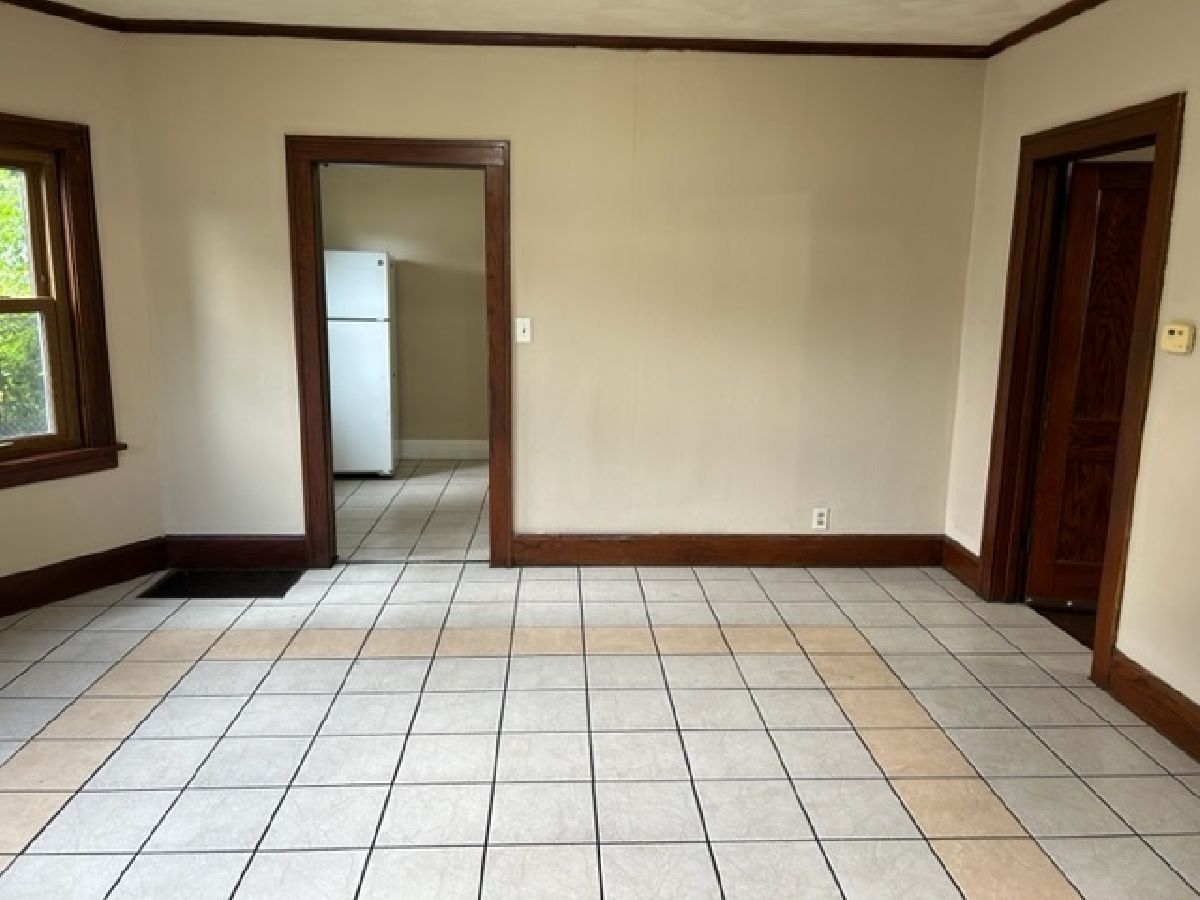 This is the first floor unit of an all brick two flat. This home has a large front porch, a nice front entryway, and is fully tiled in all the main living areas! It has Central Air Conditioning! 2 bedrooms and one bathroom. There is a spacious yard and a large deck in the back! Agent is related to owner.