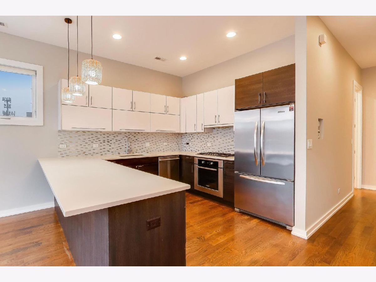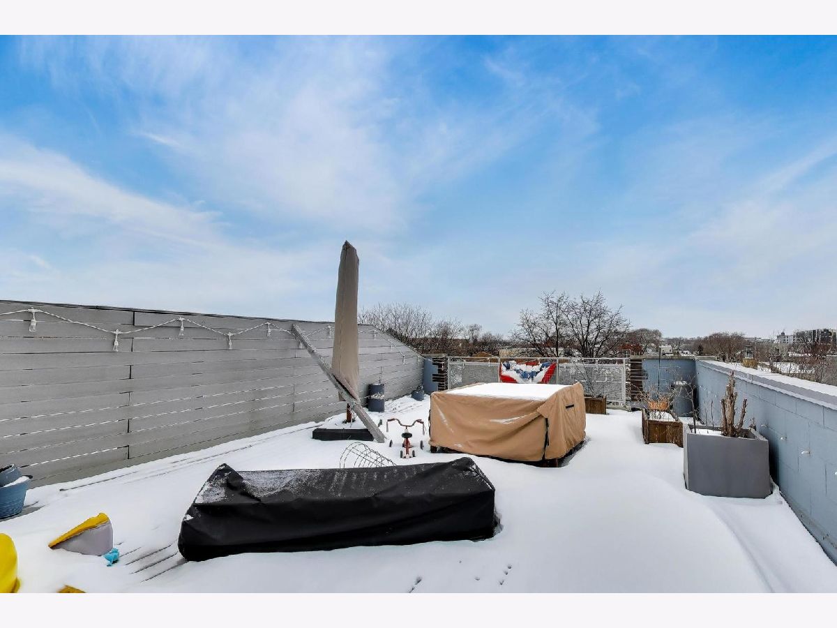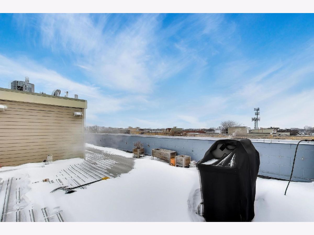 Welcome to this stunning 1,250 square foot penthouse sanctuary in one of Chicago's most walkable neighborhoods, just steps from the 606. This exceptional residence combines luxury living with thoughtful design. The sun-drenched interior features hardwood floors throughout. The gourmet kitchen boasts high-end stainless steel appliances with a vented hood, perfect for the culinary enthusiast. Unwind in your spa-like bathroom featuring both a rejuvenating steam shower and indulgent Jacuzzi tub. Three distinct outdoor spaces set this unit apart, including a private roof deck complete with a gas line for grilling. Thoughtful storage solutions include custom built-ins throughout. Smart home technology elevates everyday living with app-controlled washer/dryer, dimmable intelligent lighting, an indoor/outdoor sound system. Comes with a convenient parking spot (included). This penthouse offers an unparalleled Chicago living experience.