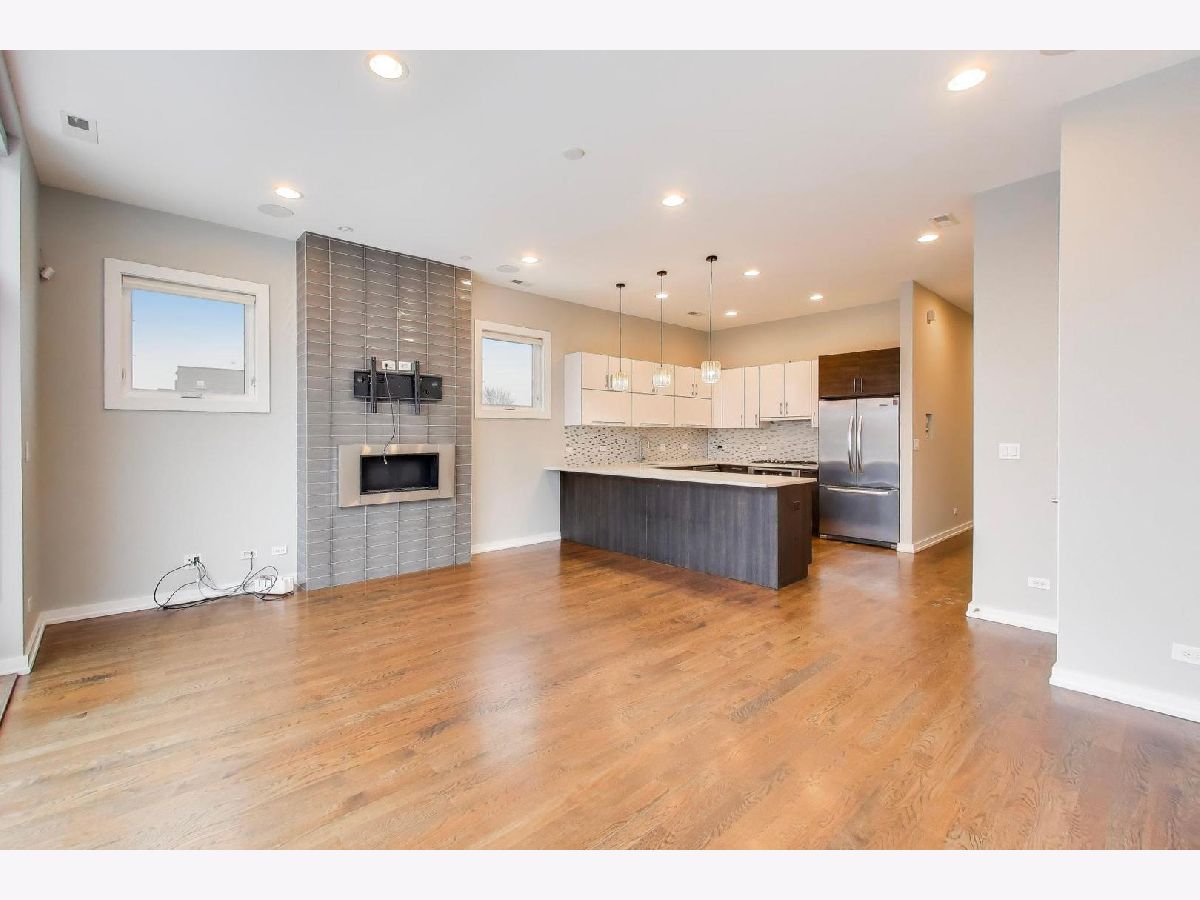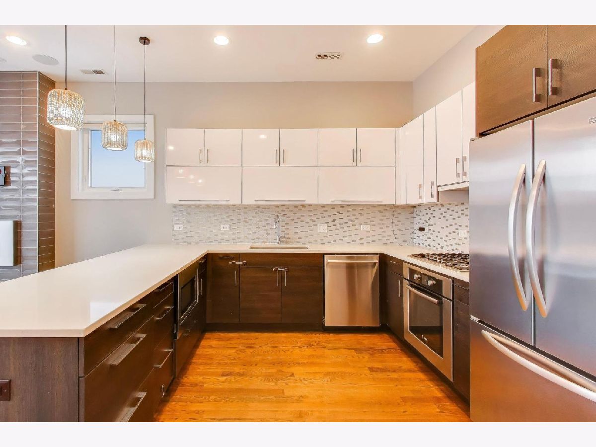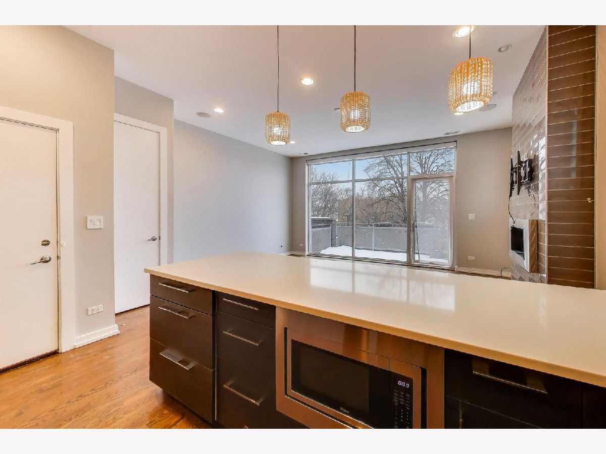 Welcome to this stunning 1,250 square foot penthouse sanctuary in one of Chicago's most walkable neighborhoods, just steps from the 606. This exceptional residence combines luxury living with thoughtful design. The sun-drenched interior features hardwood floors throughout. The gourmet kitchen boasts high-end stainless steel appliances with a vented hood, perfect for the culinary enthusiast. Unwind in your spa-like bathroom featuring both a rejuvenating steam shower and indulgent Jacuzzi tub. Three distinct outdoor spaces set this unit apart, including a private roof deck complete with a gas line for grilling. Thoughtful storage solutions include custom built-ins throughout. Smart home technology elevates everyday living with app-controlled washer/dryer, dimmable intelligent lighting, an indoor/outdoor sound system. Comes with a convenient parking spot (included). This penthouse offers an unparalleled Chicago living experience.